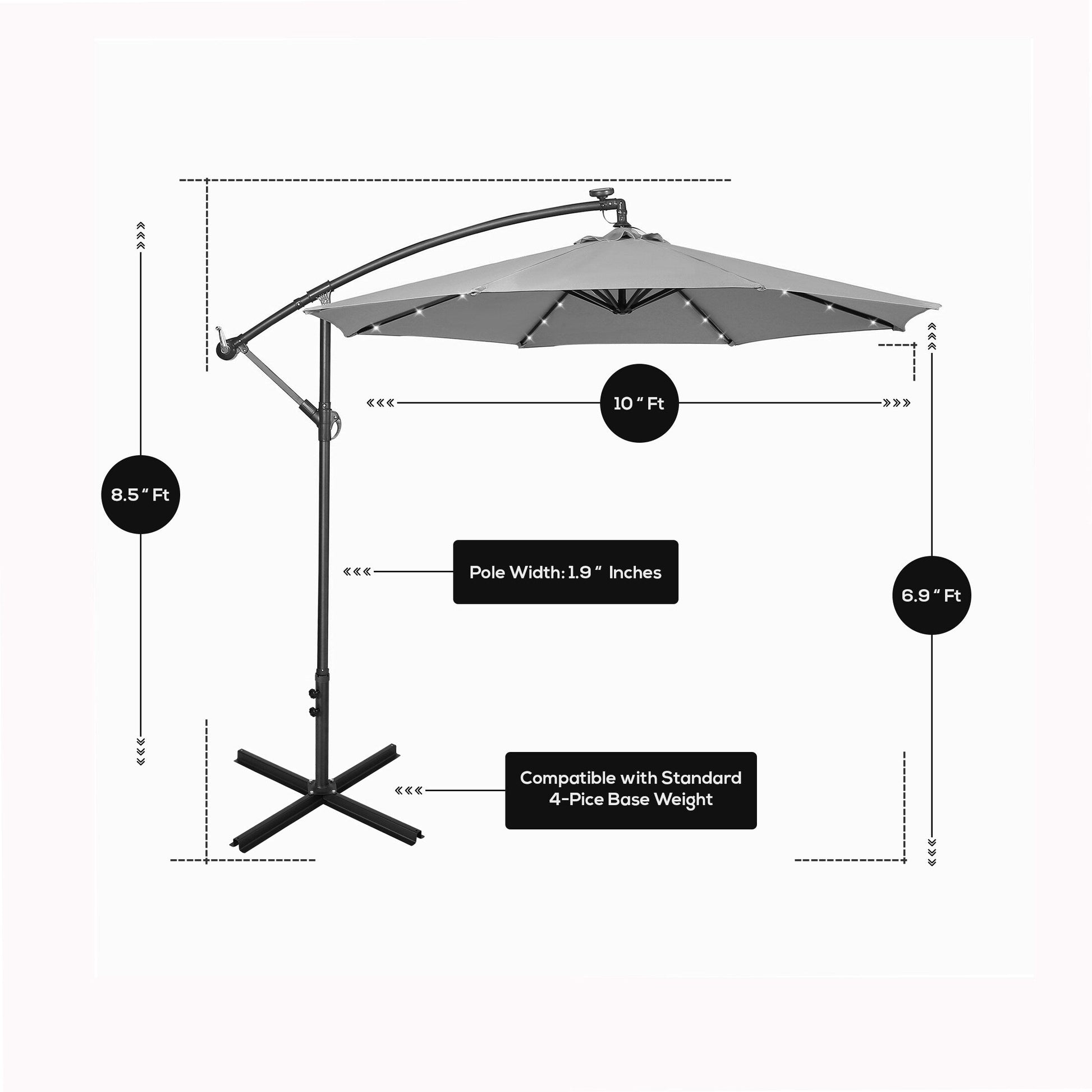 Créez une atmosphère chaleureuse dans votre espace extérieur avec notre parasol de patio solaire éclairé de 3 m (10 pi) avec support de base. Ce parasol extérieur cantilever résiste aux rayons UV nocifs, garantissant une qualité et un confort durables. La structure robuste en acier résiste aux intempéries et est conçue pour durer, ce qui permet d'ouvrir et de fermer facilement le parasol grâce à son pratique mécanisme à manivelle. Le kit comprend tout ce dont vous avez besoin pour créer votre oasis parfaite.