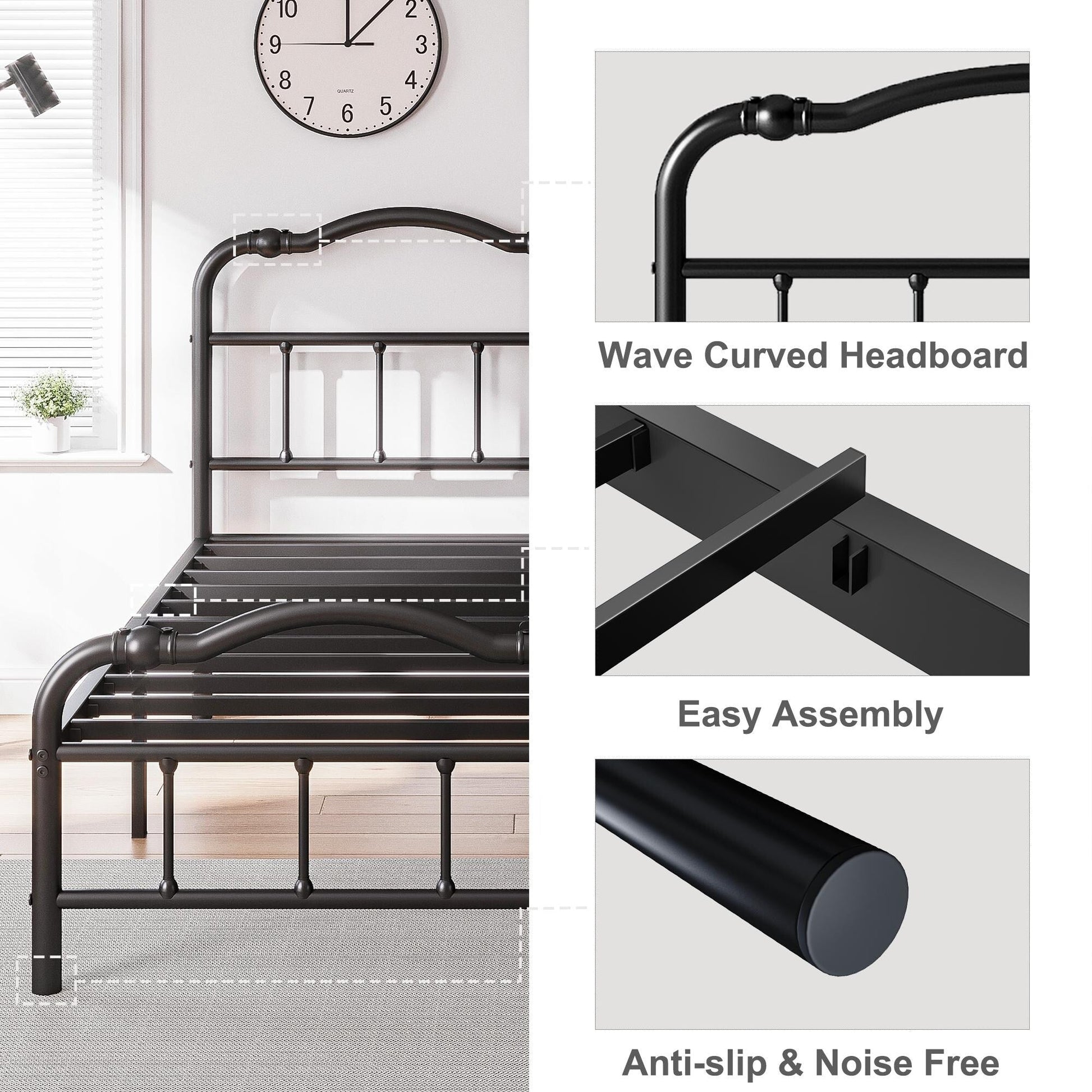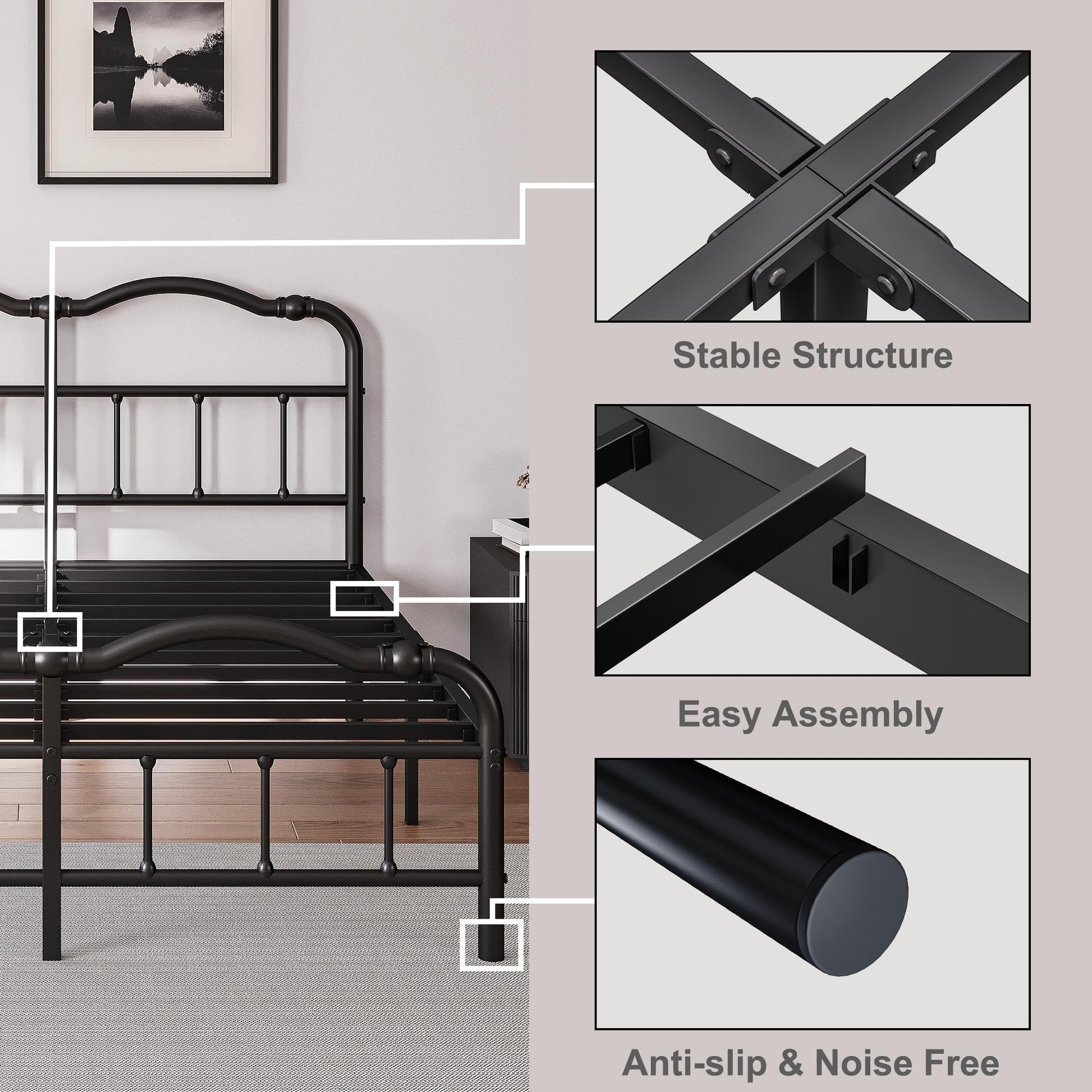 Cadre de lit en métal robuste de 35,5 cm de hauteur, style vintage, supportant jusqu'à 1134 kg, assemblage facile et sans grincement.