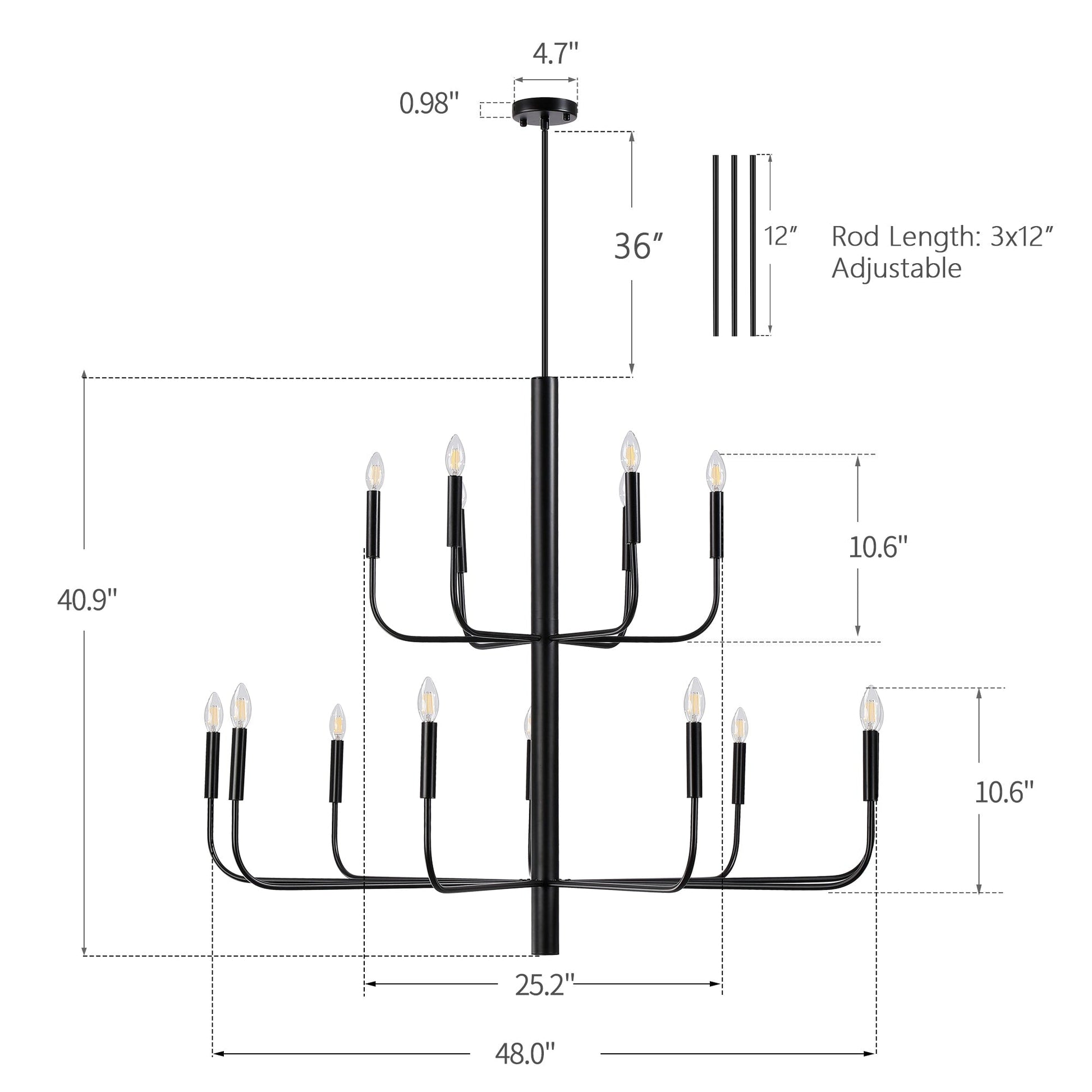 - Éclairage : 15 ampoules requises, douille E12, 60 W 120 V, plusieurs choix disponibles (ampoules non incluses)