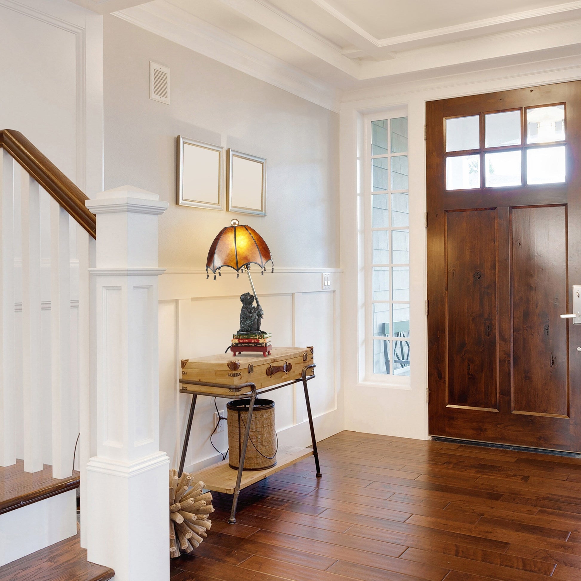 Ce lampadaire de table traditionnel présente un magnifique mélange de mica ambré et de polyrésine dans une finition multicolore, pour un design chaleureux et accueillant. Le socle original en forme de bloc en polyrésine représente un singe intelligent perché sur une pile de livres, tandis que l'abat-jour en mica en forme de dôme crée une ambiance apaisante. Conçu avec un interrupteur rotatif et un cordon de 157 cm (62 pouces) pour une utilisation et un placement faciles. Idéal pour ajouter une touche de nouveauté et d'élégance à n'importe quelle pièce.