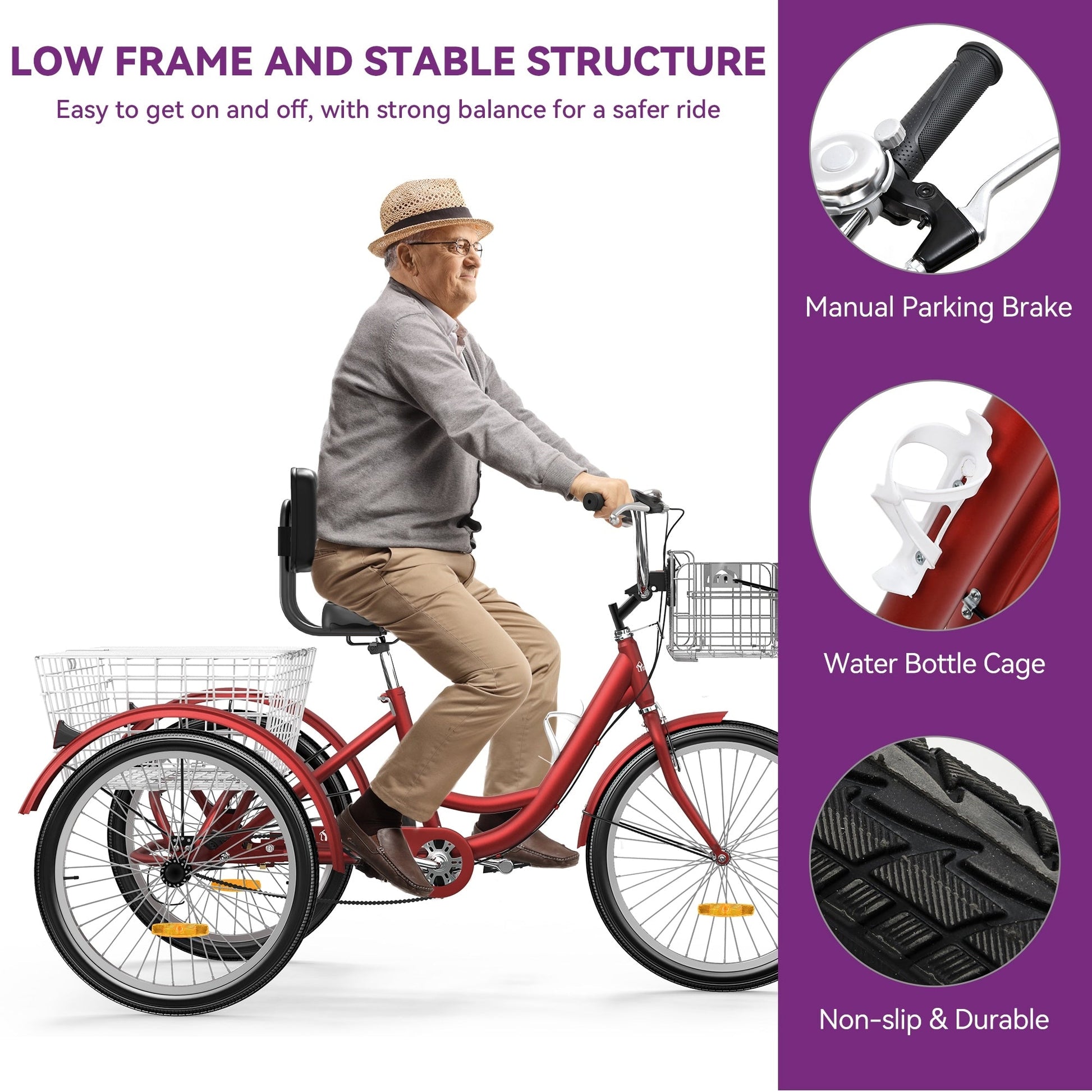 Ce vélo à 3 roues est parfait pour les balades tranquilles, le sport, les courses à domicile, les pique-niques en plein air, et bien plus encore. Avec ce tricycle, vous pouvez explorer librement, profiter de la balade et savourer le soleil et l'air frais.