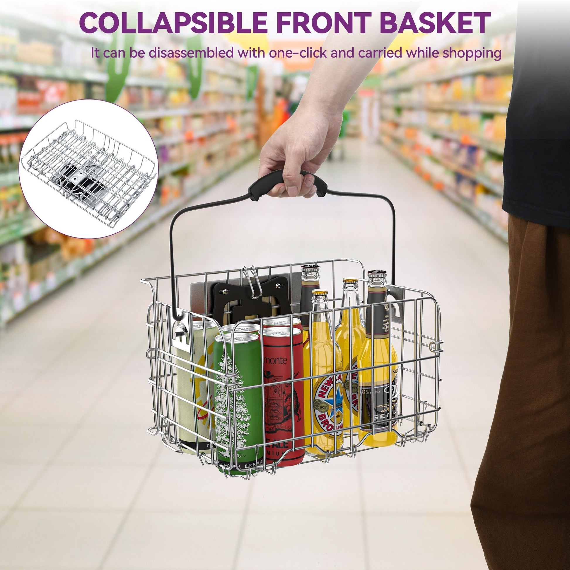 - Panier arrière robuste d'une capacité de 25 kg (55 lbs), parfait pour ranger les courses et même les animaux de compagnie.
