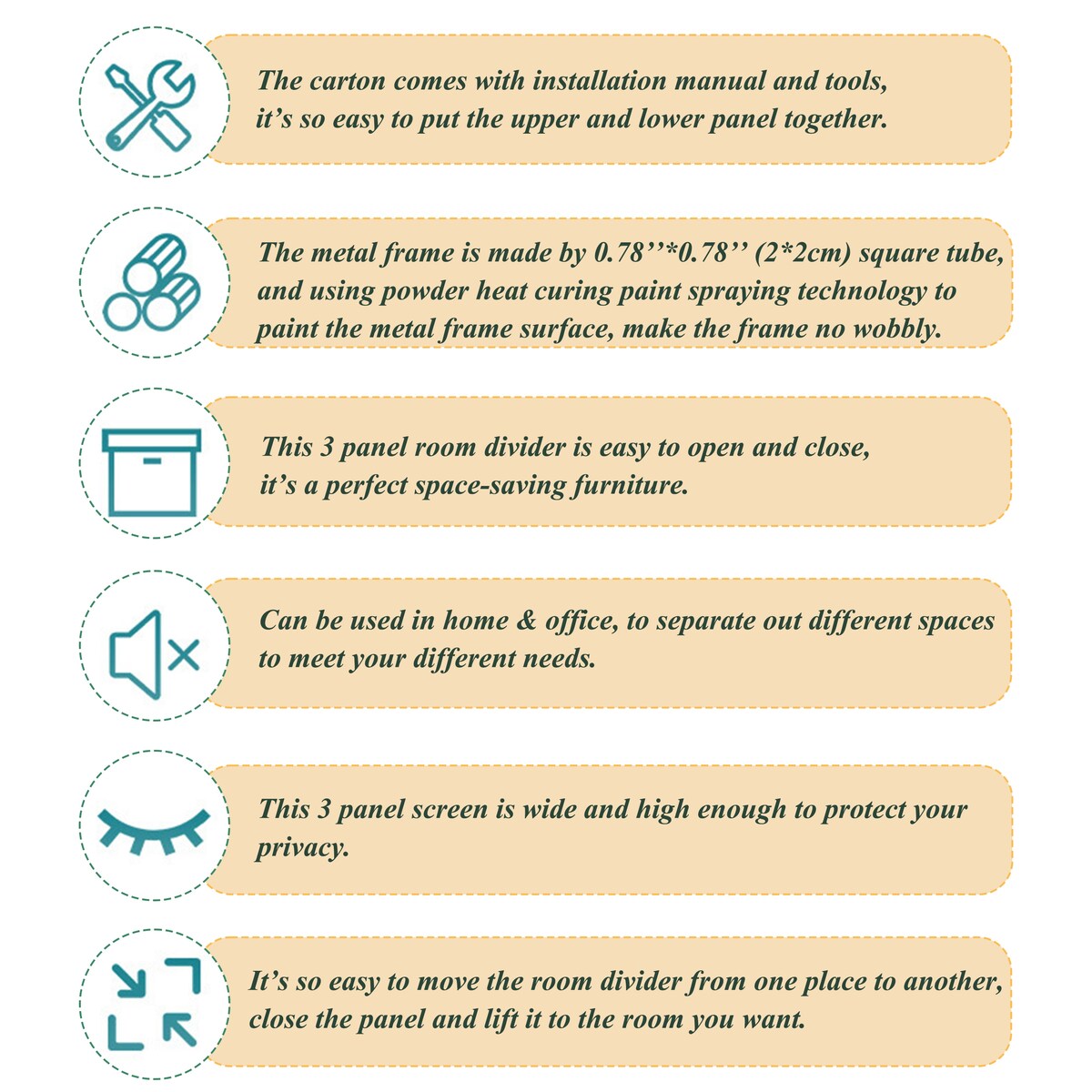 - Dimensions parfaites : suffisamment hautes pour préserver l'intimité et diviser n'importe quel espace.