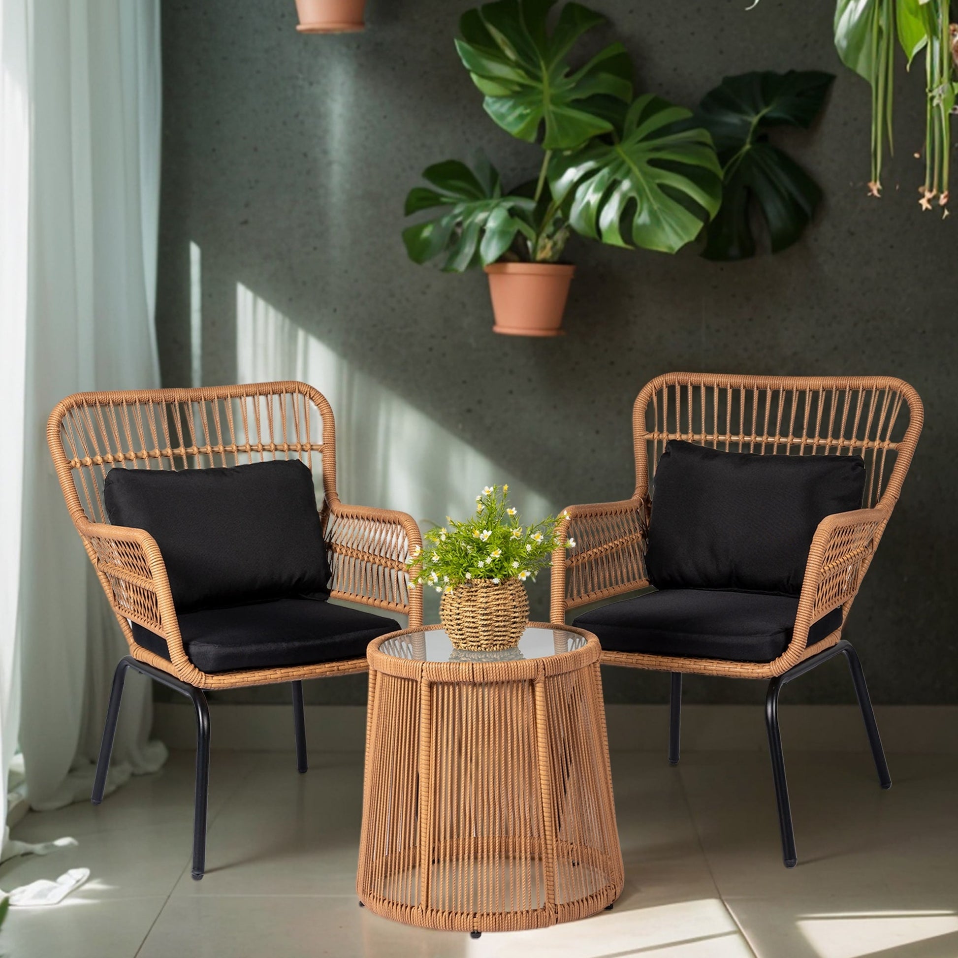 - Ensemble de bistro en osier tressé pour extérieur, 3 pièces, ensemble de meubles en rotin pour patio, résistant aux intempéries, avec table pour balcon, jardin, véranda, cour arrière.