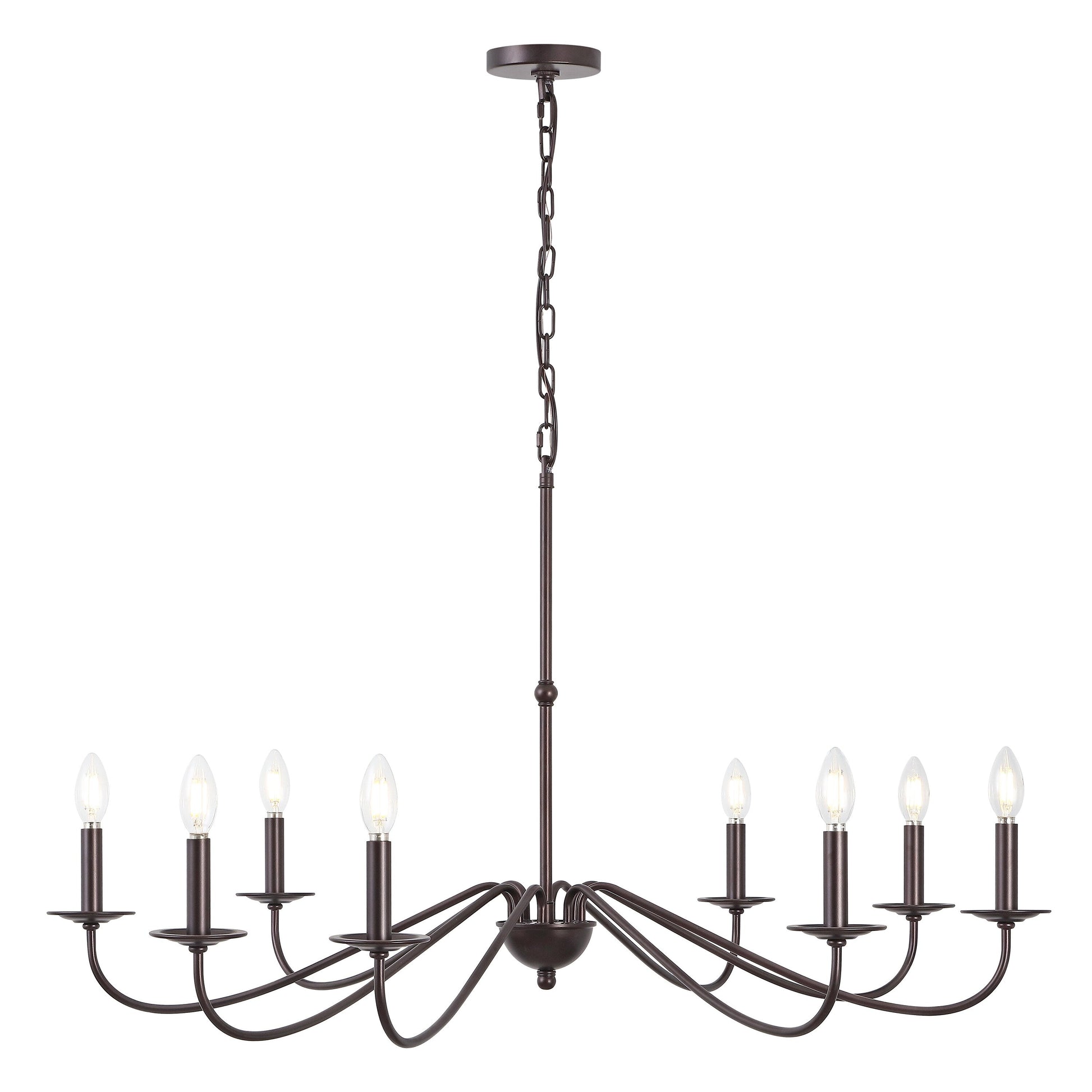 Inspiré des lustres historiques en fer forgé, notre design rustique à 6 lumières présente une finition de qualité. Parfaitement dimensionné pour une salle à manger de style ferme, un hall d'entrée haut ou une grande pièce avec des plafonds hauts, notre lustre mesure un peu moins de 35 pieds de large et est doté de grandes bougies avec des ampoules LED. Utilisez ce lustre polyvalent dans une maison de style ferme moderne, de style français ou toscan, ou pour ajouter du caractère à un espace rustique ou industriel.
