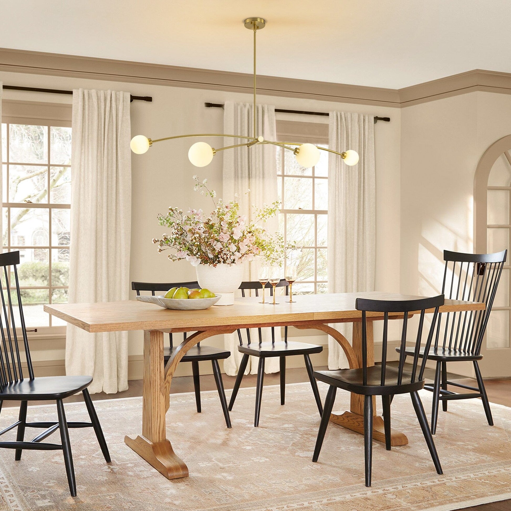 Inspiré par le minimalisme moderne et le design Sputnik, ce lustre linéaire à 4 lumières combine des arcs dorés élégants avec des globes en verre dépoli doux pour un look contemporain et élégant. Les tiges métalliques légèrement incurvées s'étendent vers l'extérieur dans une formation équilibrée, créant une silhouette stylée qui rehausse l'esthétique de n'importe quel espace. Parfait pour les îlots de cuisine, les salles à manger ou les bureaux à domicile, ce luminaire offre non seulement un éclairage ample, mais sert également d'élément de design saisissant dans votre maison. Caractéristiques :