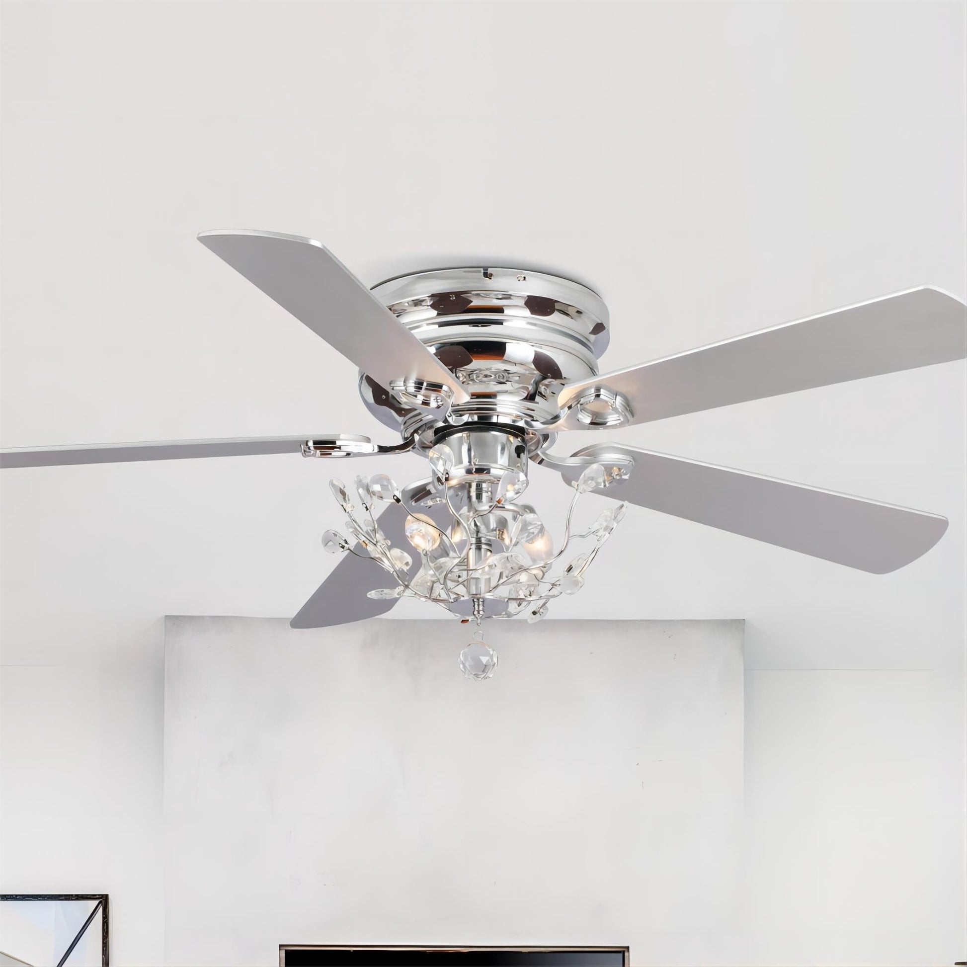 Ventilateur de plafond moderne à 5 pales réversibles, à montage encastré, avec télécommande, 48 pouces, avec cristaux.