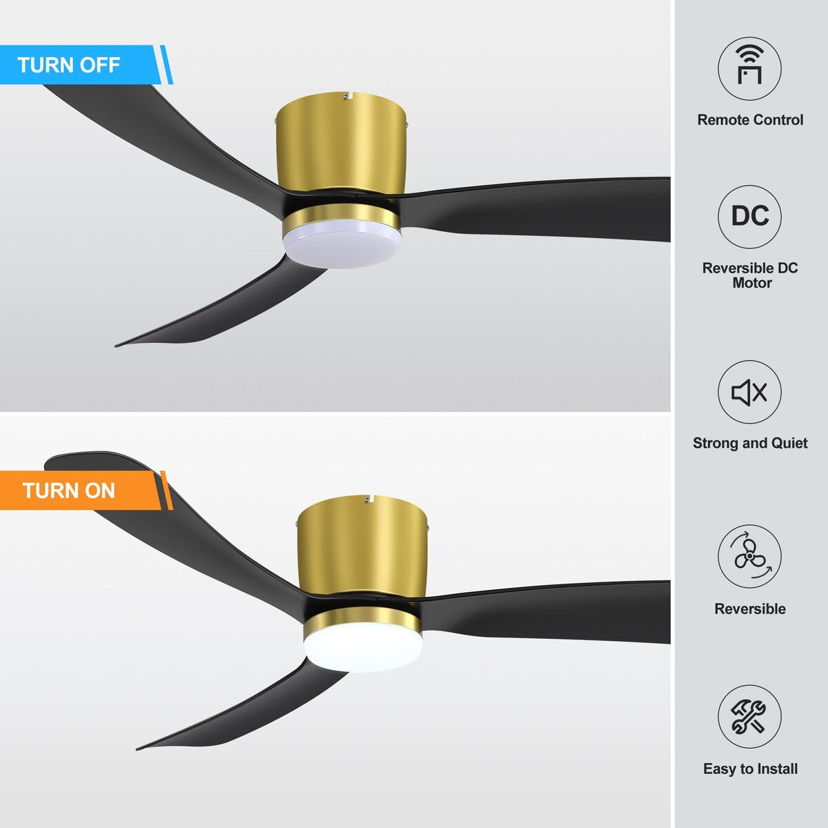 Ventilateur de plafond LED à montage encastré de 52 pouces noir/blanc avec éclairage et télécommande (3 pales)