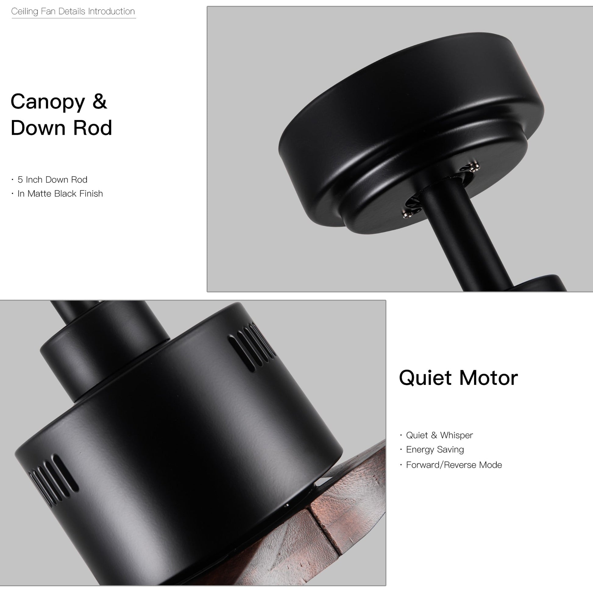 Ventilateur de plafond moderne de 52 pouces en bois massif/ABS avec télécommande (sans éclairage), 6 vitesses de ventilation, flux d'air réversible.