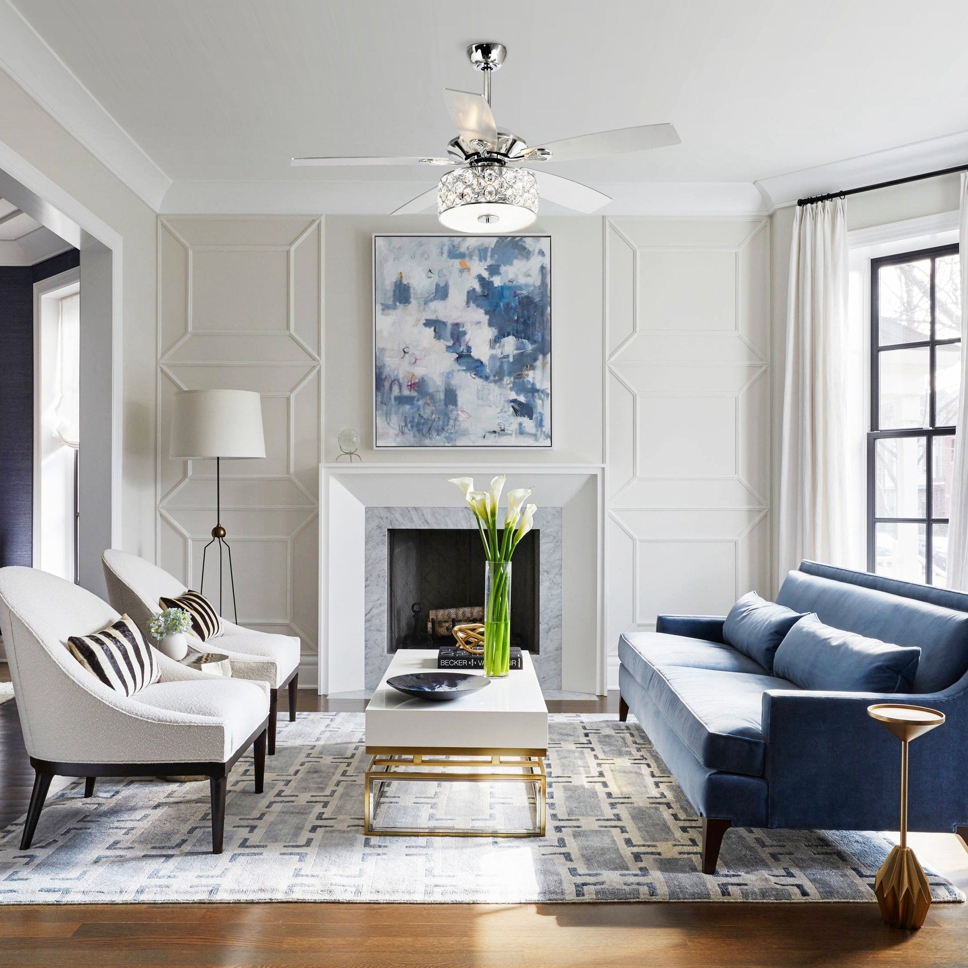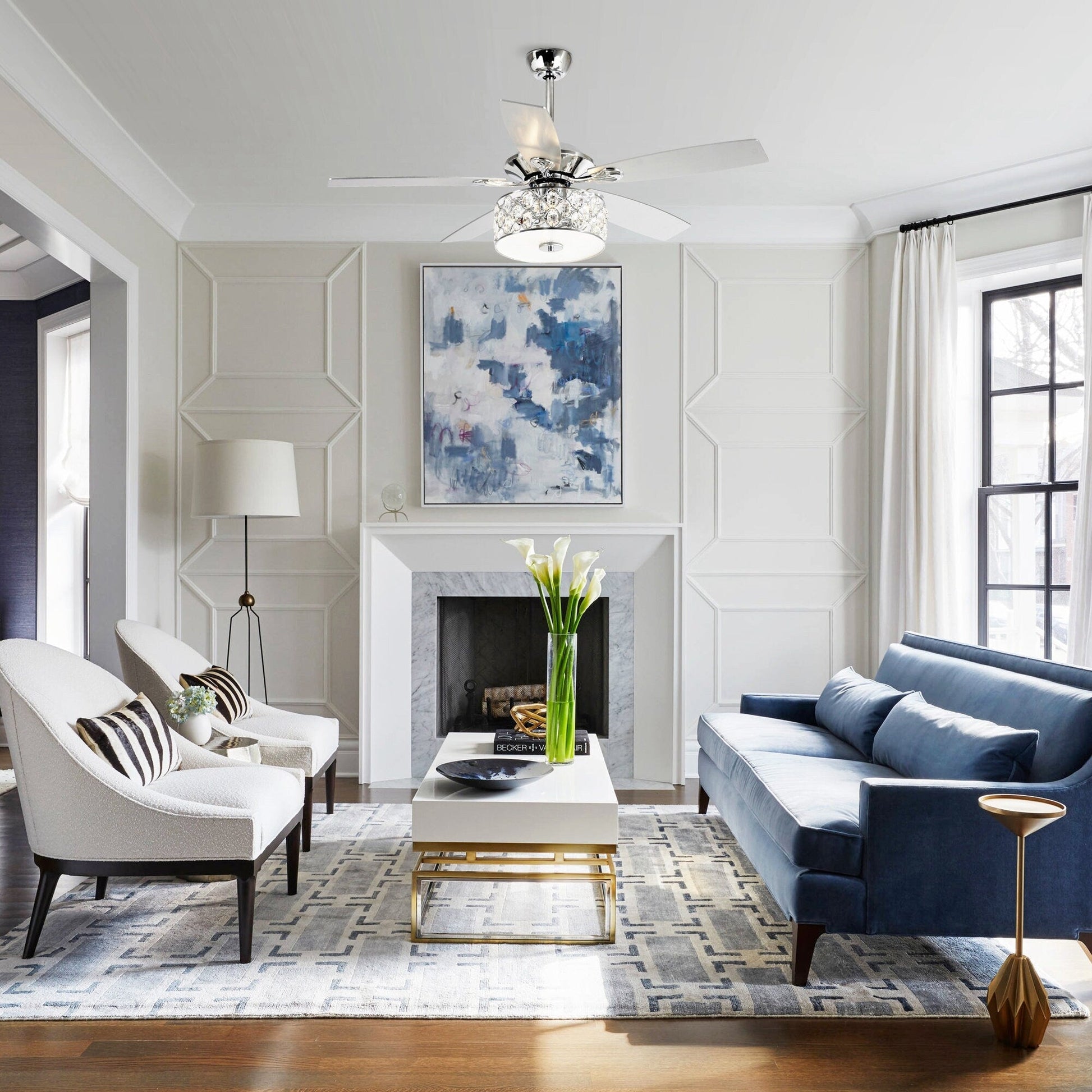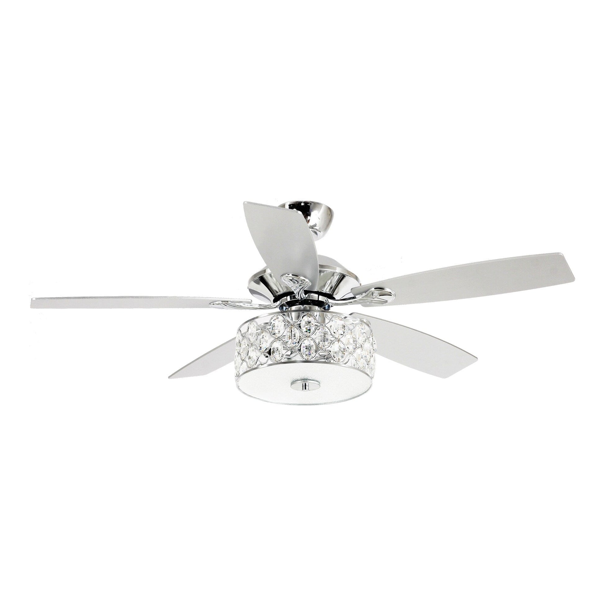 Apportez une touche de sophistication moderne à votre espace de vie avec ce ventilateur de plafond à 4 lumières, style moderne, de 52 pouces, avec télécommande et abat-jour en cristal. La structure métallique chromée et les pales en bois teinté argenté offrent un look élégant et moderne, parfait pour n'importe quelle pièce de votre maison. Profitez des avantages d'un moteur réversible à trois vitesses, utilisable en hiver pour économiser l'énergie. Une télécommande permet d'allumer et d'éteindre facilement la lumière et d'ajuster la vitesse du ventilateur à votre convenance.