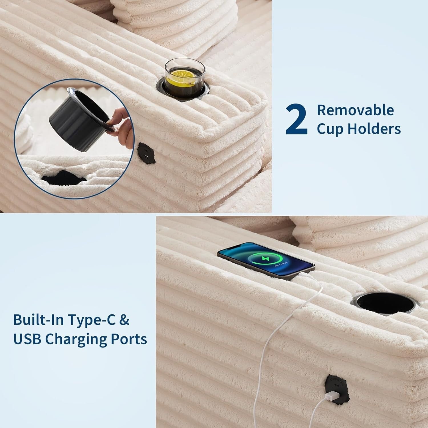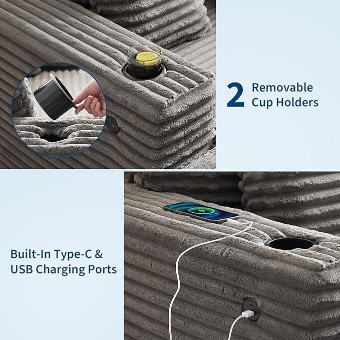 [Confort spacieux pour se détendre] Profitez d'une relaxation exceptionnelle avec ce grand fauteuil de repos, offrant une largeur généreuse de 137 cm et une assise profonde de 119 cm. Parfait pour lire, faire une sieste ou pour les soirées cinéma, il offre amplement d'espace pour vous et vos proches pour vous détendre confortablement. Son design ample assure une expérience d'assise haut de gamme, ce qui en fait un ajout idéal aux salons, chambres à coucher ou espaces de divertissement. [Tissu en velours côtelé haut de gamme et durable] Fabriqué avec un tissu en velours côtelé respirant et de haute qualité, ce canapé-lit allie luxe et durabilité. La texture douce ajoute une sensation de confort, tandis que la mousse haute densité et les ressorts ensachés à l'intérieur maintiennent la forme du fauteuil et offrent un soutien moelleux. Que vous jouiez à des jeux, que vous vous détendiez ou que vous vous reposiez, le revêtement haut de gamme offre un confort et un style durables. [Soutien ergonomique pour tout le corps] Conçu pour votre confort, le grand fauteuil de repos possède une assise profonde ergonomique qui soutient tout votre corps. Cela favorise la relaxation pour lire, méditer ou se détendre après une journée bien remplie. La structure du fauteuil encourage une posture saine et réduit la fatigue, vous aidant à vous sentir rafraîchi et confortable lors d'une utilisation prolongée. [Pratique et intégré] Restez connecté sans effort grâce aux ports de charge intégrés au fauteuil, vous permettant de recharger vos appareils tout en vous relaxant. Des porte-gobelets amovibles ajoutent du confort, vous permettant de savourer vos boissons préférées sans avoir besoin de meubles supplémentaires. Ces fonctionnalités bien pensées améliorent votre expérience de loisirs, parfaites pour faire plusieurs choses à la fois pendant que vous lisez ou regardez la télévision. [Montage simple et design moderne et élégant] Ce fauteuil de repos moderne offre un montage facile grâce à un processus d'assemblage simple, afin que vous puissiez commencer à vous détendre rapidement. Son design élégant et contemporain s'intègre à divers styles d'intérieur, ajoutant sophistication et confort à n'importe quel espace. Qu'il soit utilisé dans un salon, un bureau à domicile ou une chambre à coucher, c'est une solution d'assise élégante et pratique.