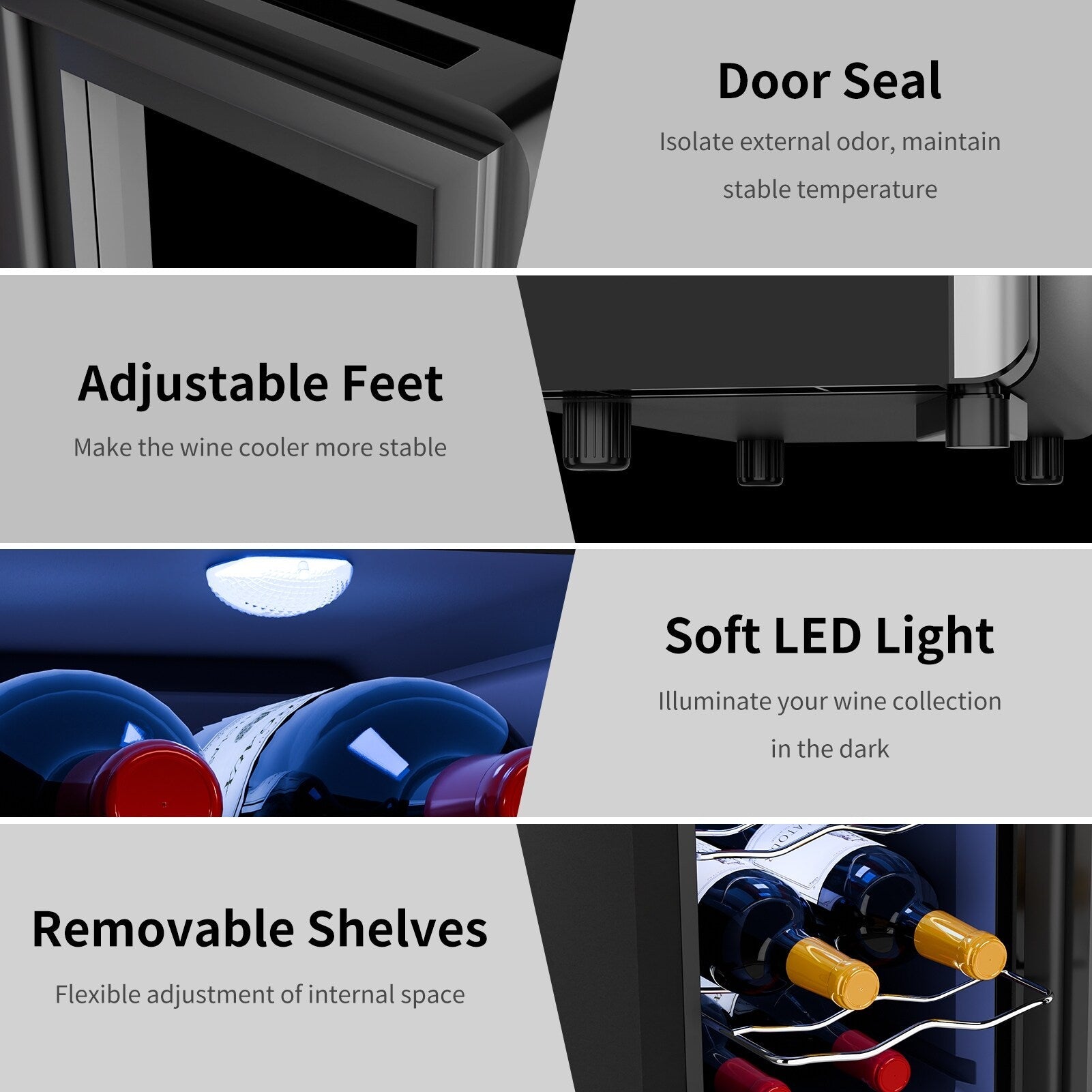 Étagères amovibles : Le refroidisseur à vin est équipé d’étagères amovibles, ce qui permet d’adapter l’espace intérieur à la taille et à la forme de vos bouteilles de vin.