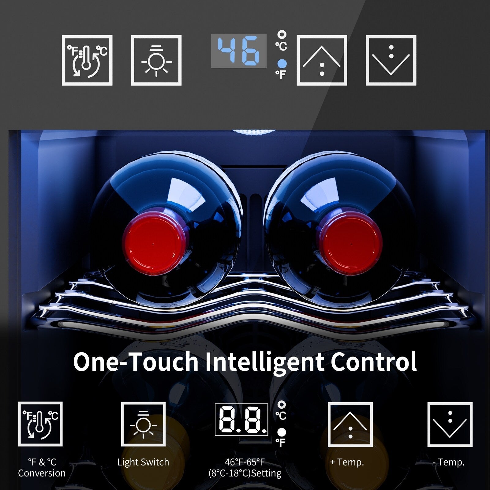 Commande intelligente à une touche : L’écran tactile intuitif permet une utilisation facile. Vous pouvez régler la température entre 8 et 18 °C (46 et 65 °F), allumer ou éteindre le témoin lumineux LED, et même convertir les températures Fahrenheit en Celsius (et vice-versa) en quelques clics.