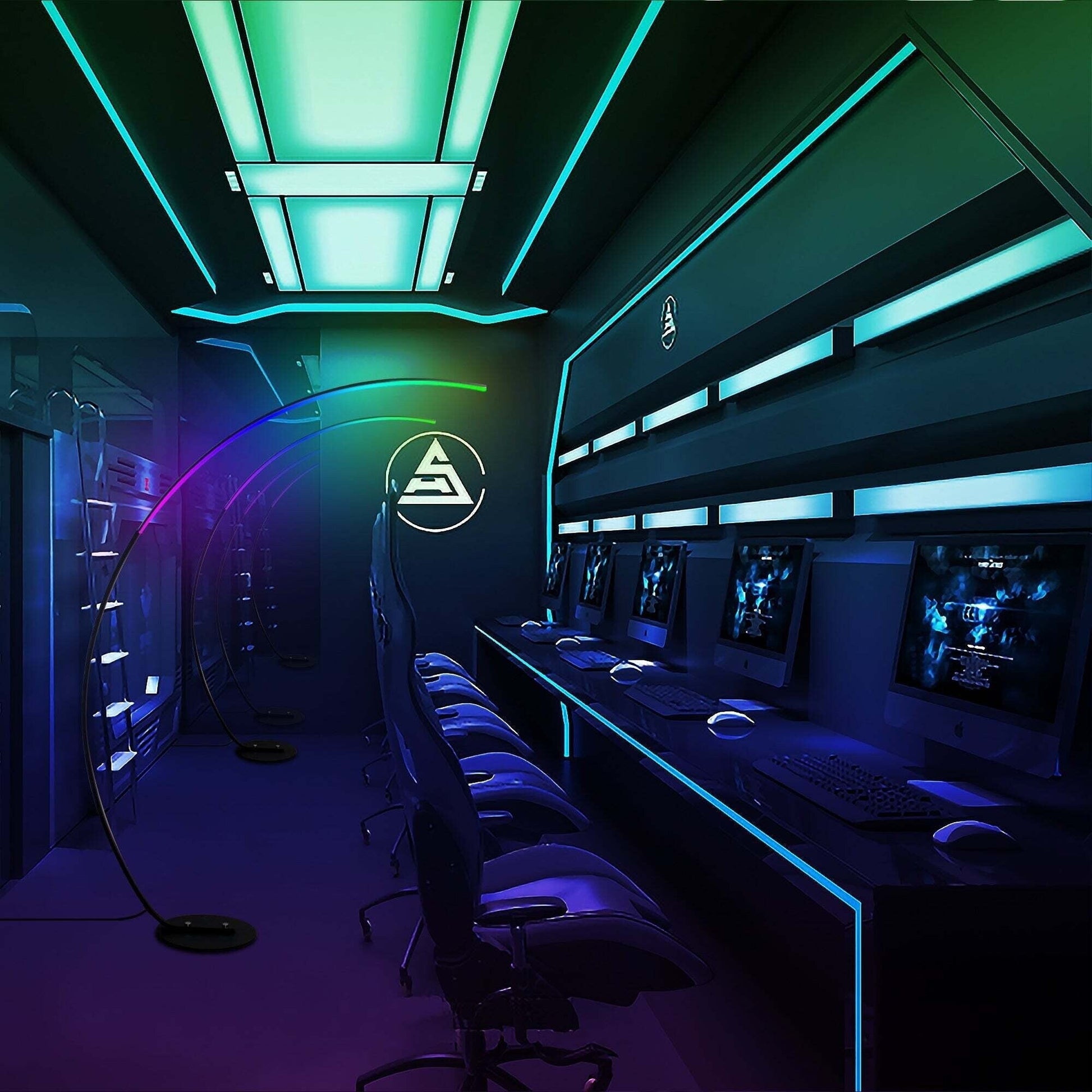 69 Lampe de sol LED à arc/courbe, à intensité variable - RGBW - N/A