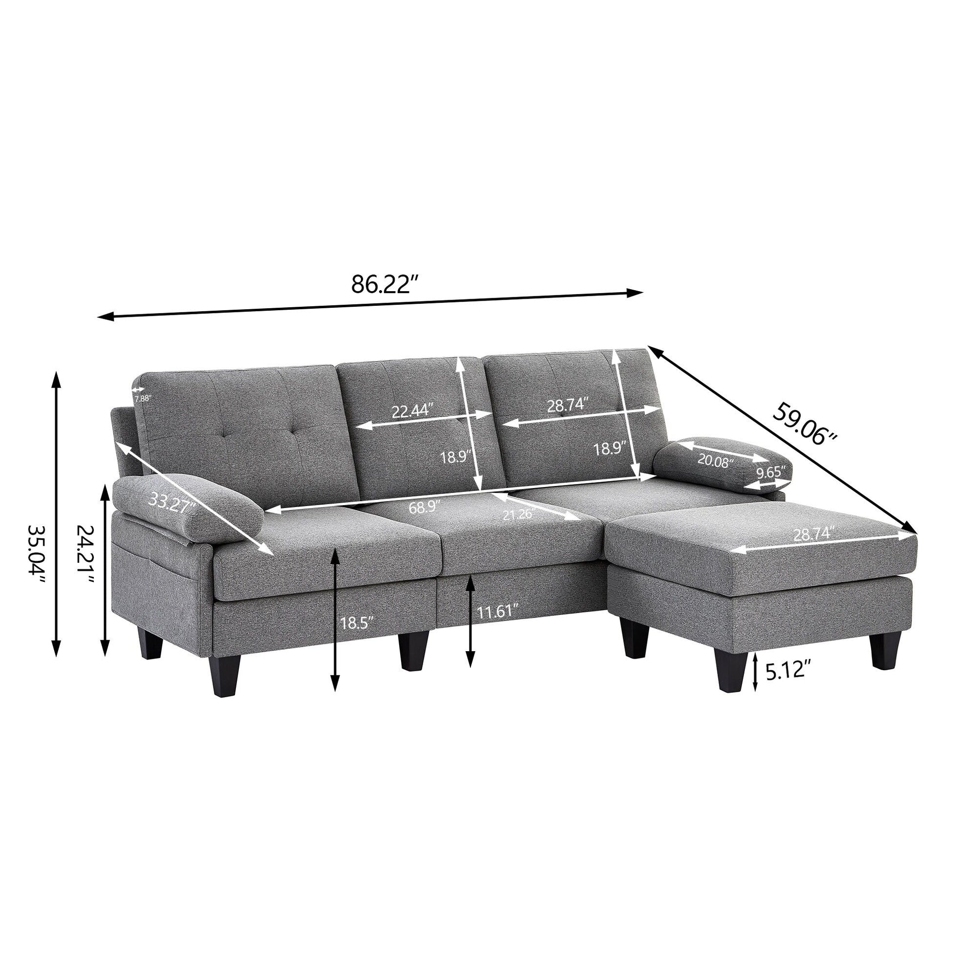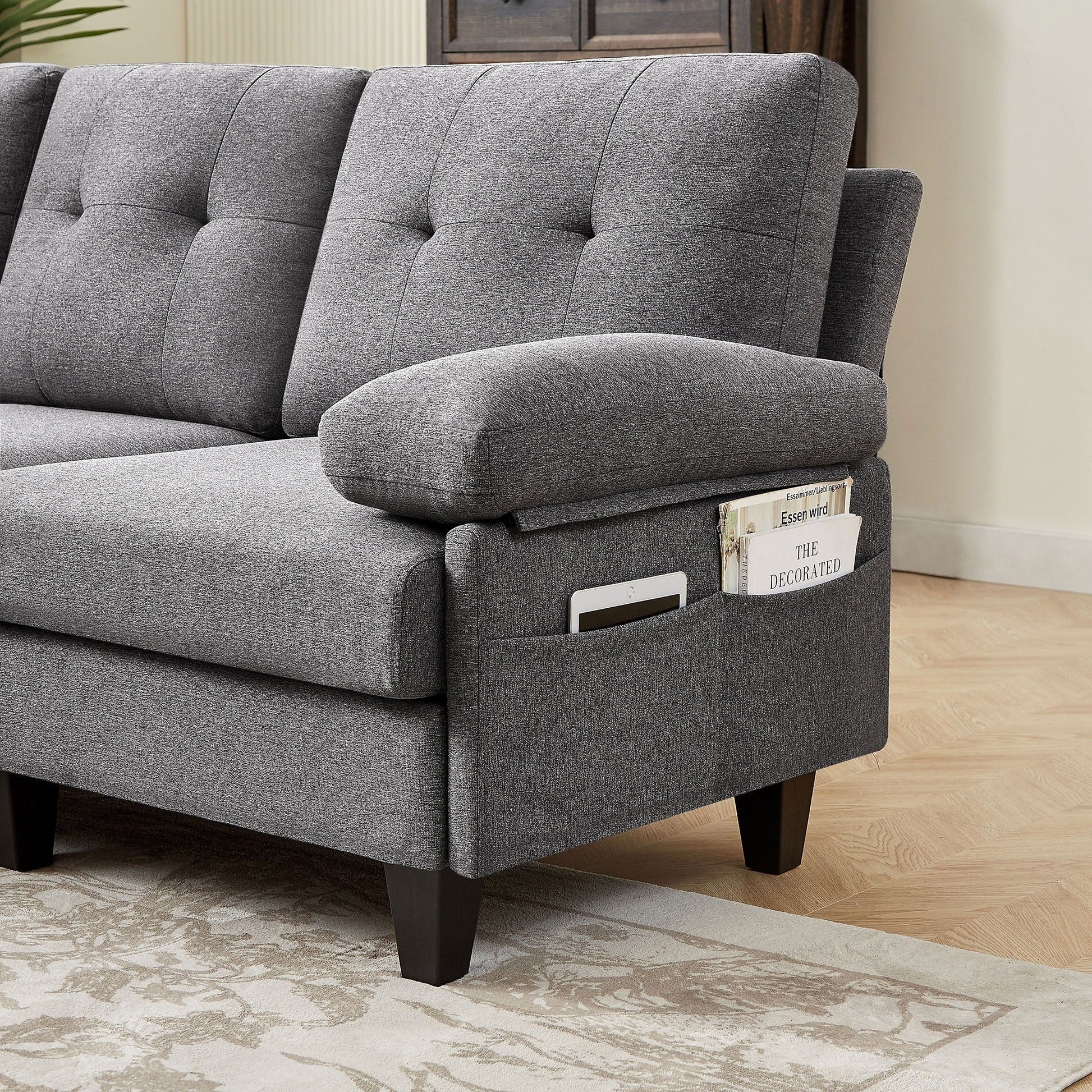 Canapé d'angle en forme de L de 86,22 pouces avec poches de rangement latérales