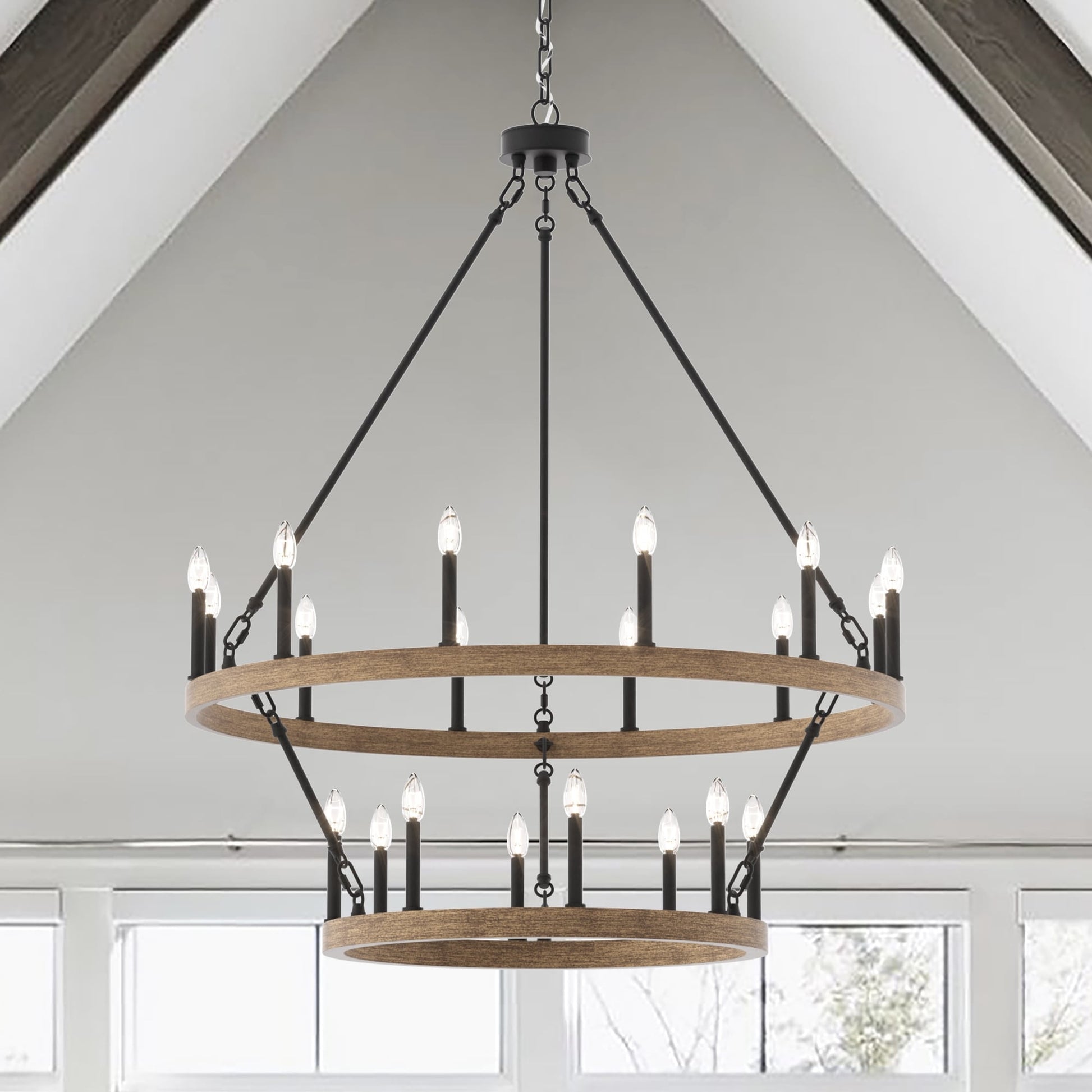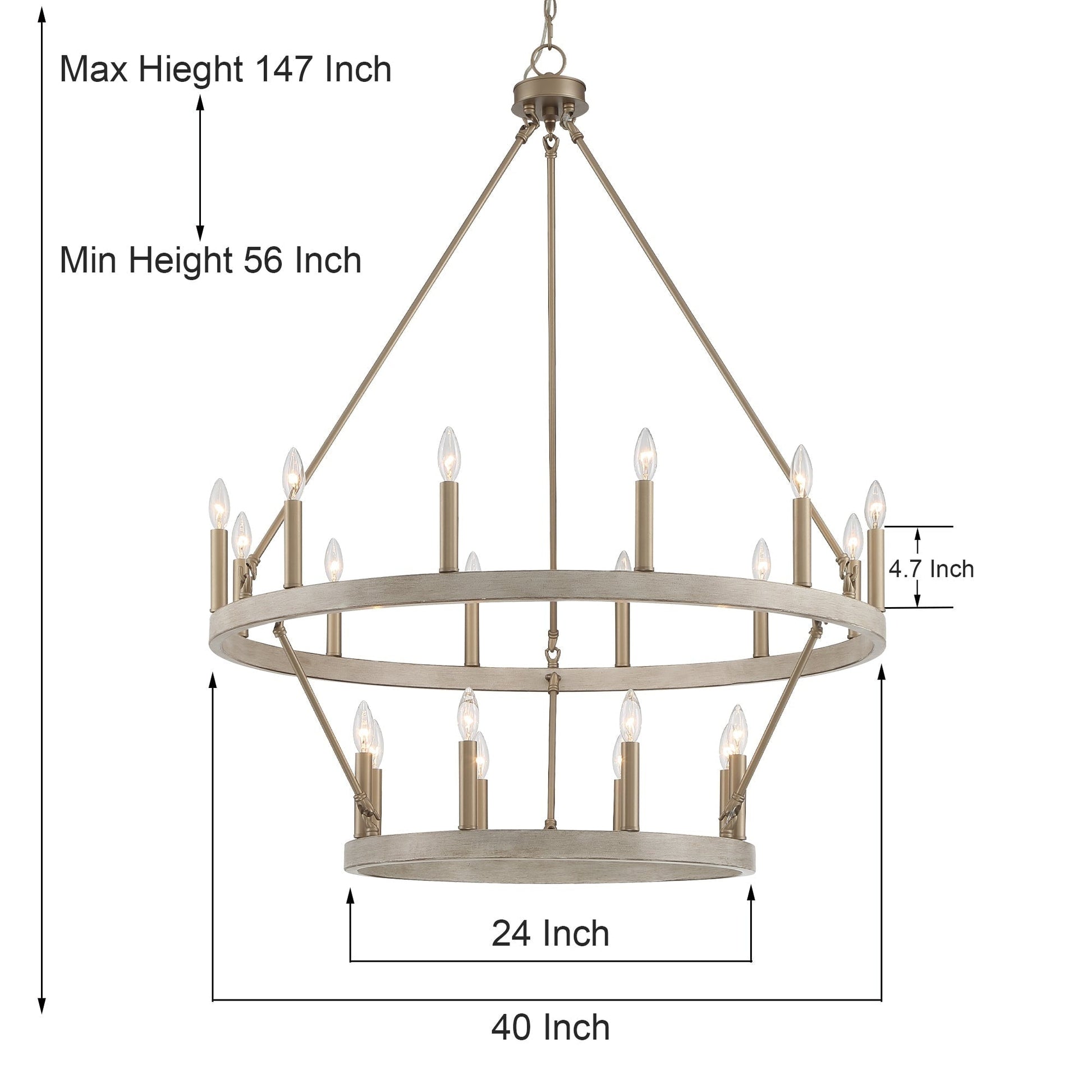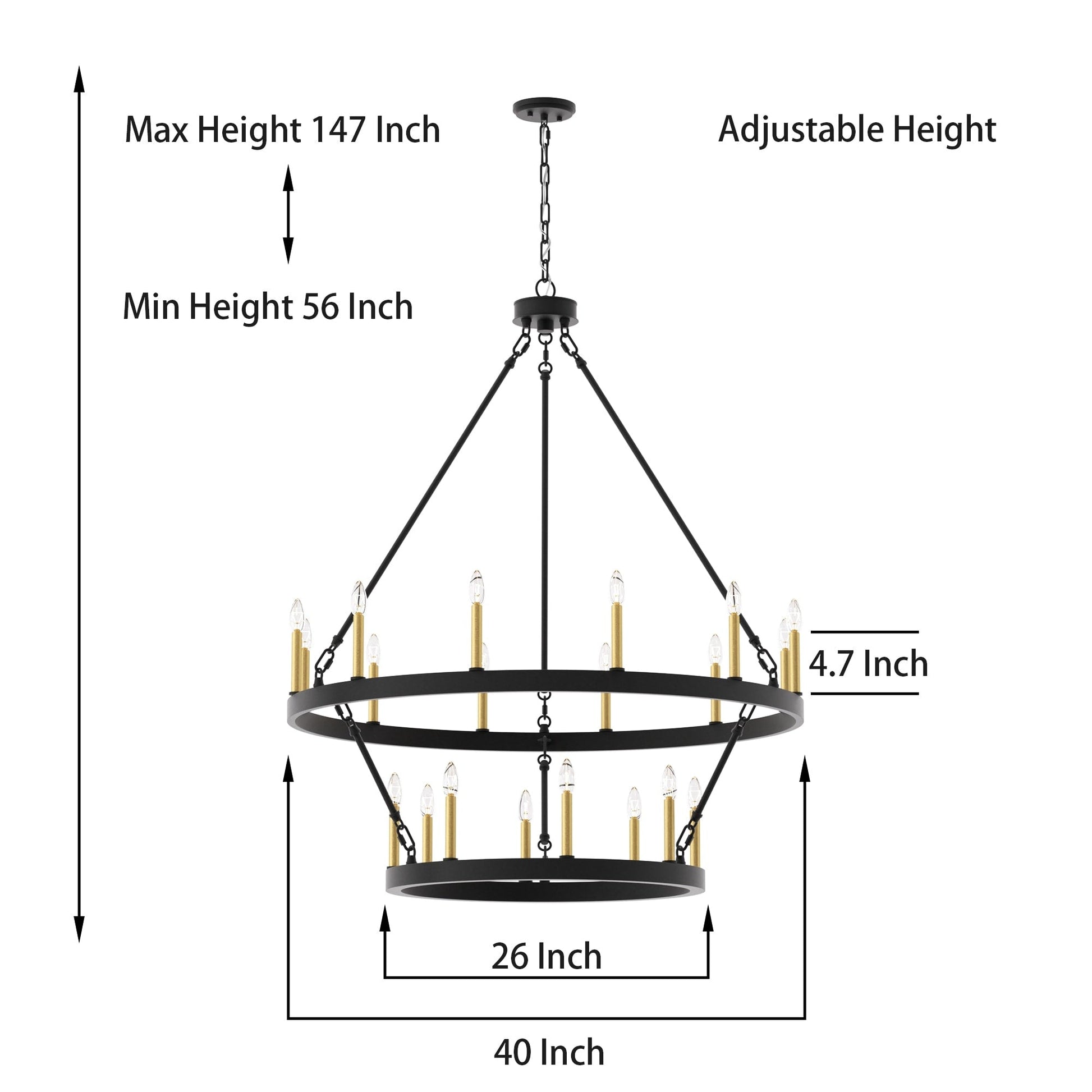 Illuminez votre espace de vie avec le grand lustre à penderies rustique en forme de roue de charrette, fabriqué en acier et disponible dans une variété de couleurs. Ce lustre est durable et ajoute du charme à divers styles. Avec ses deux niveaux de roue de charrette et ses vingt bougeoirs, il est parfait pour éclairer entièrement un grand espace comme un salon, une salle à manger et un grand hall d'entrée à deux étages. Personnalisez votre espace avec des ampoules à culot bougie pour un look vintage français ou des ampoules à culot standard pour une touche moderne.
