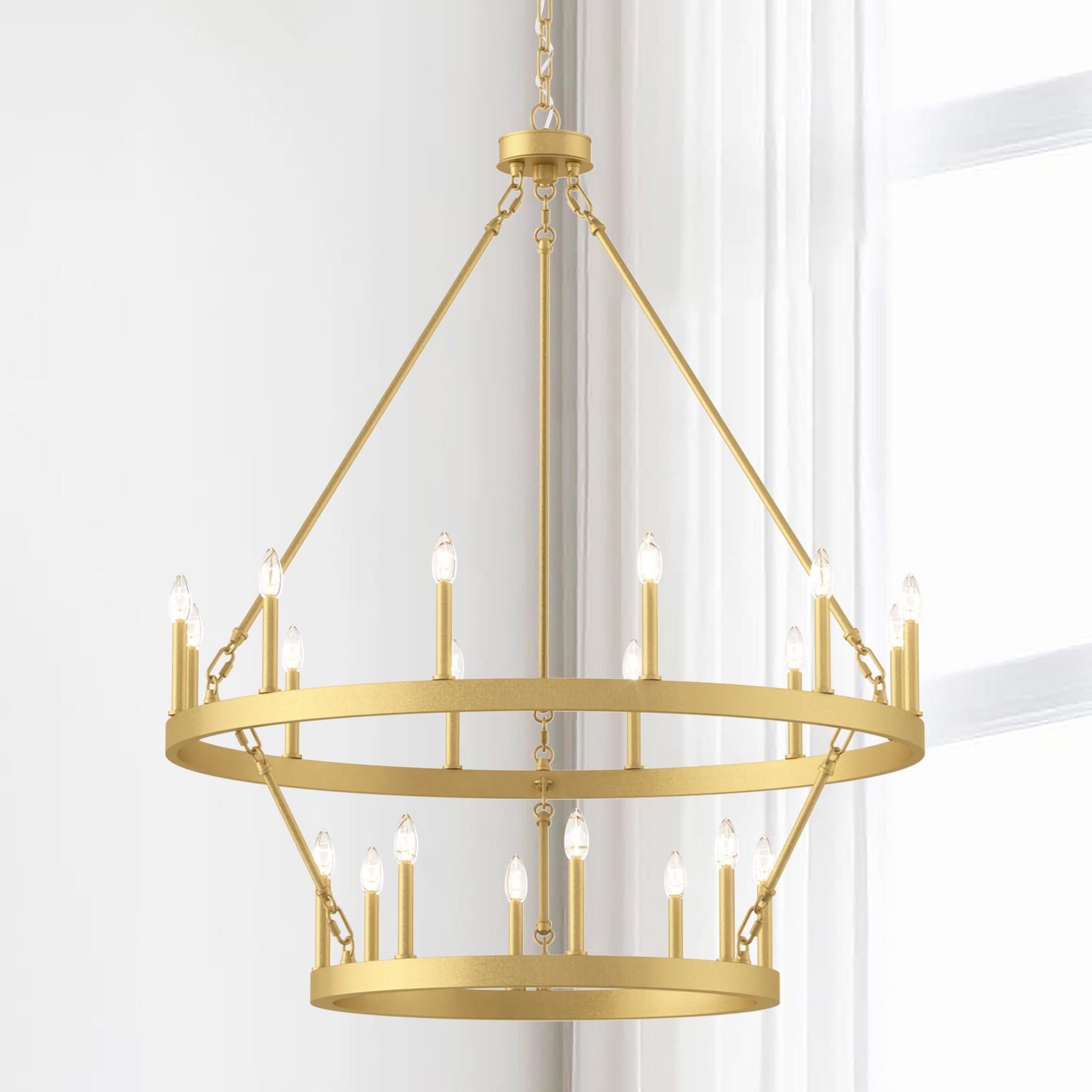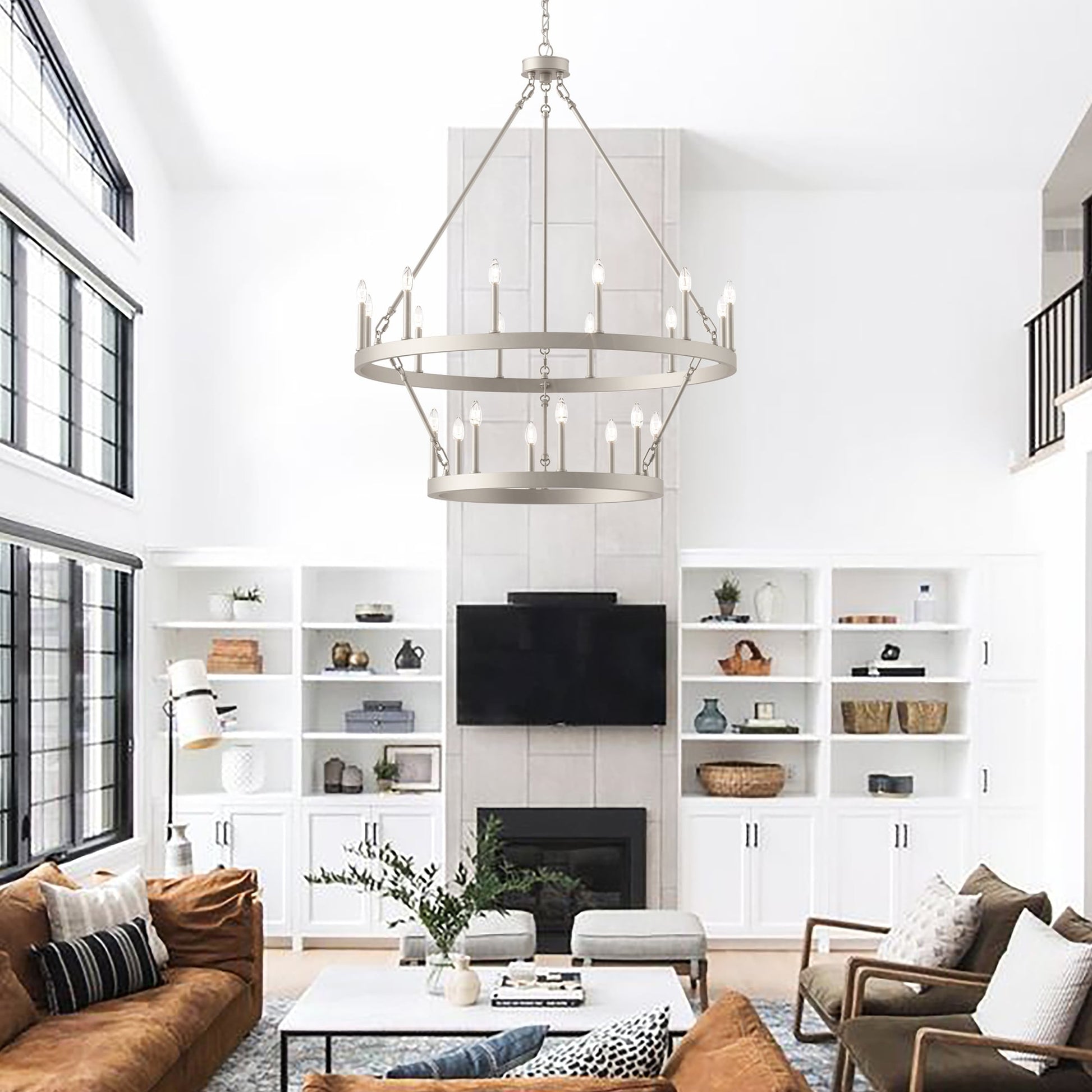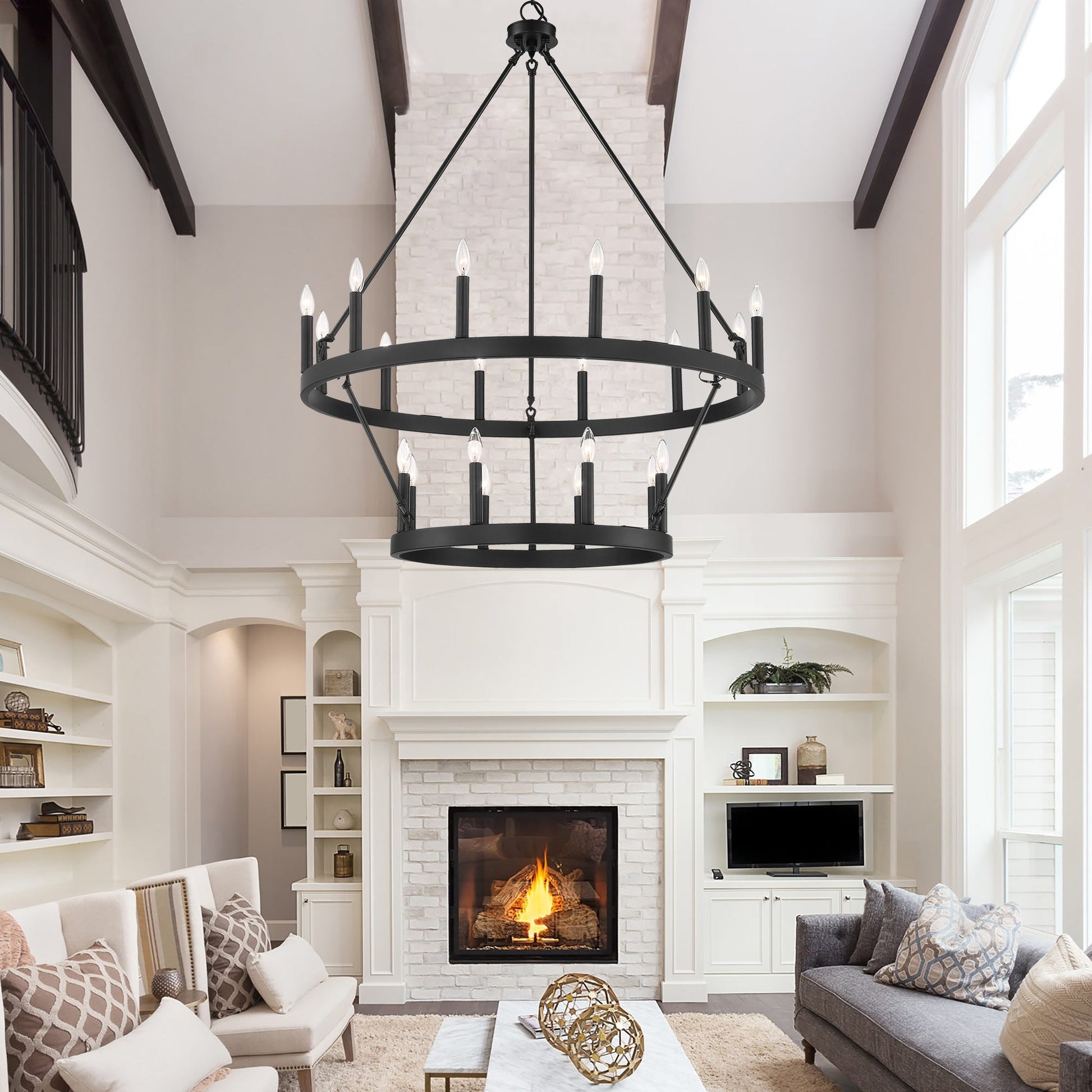 Illuminez votre espace de vie avec le grand lustre à penderies rustique en forme de roue de charrette, fabriqué en acier et disponible dans une variété de couleurs. Ce lustre est durable et ajoute du charme à divers styles. Avec ses deux niveaux de roue de charrette et ses vingt bougeoirs, il est parfait pour éclairer entièrement un grand espace comme un salon, une salle à manger et un grand hall d'entrée à deux étages. Personnalisez votre espace avec des ampoules à culot bougie pour un look vintage français ou des ampoules à culot standard pour une touche moderne.