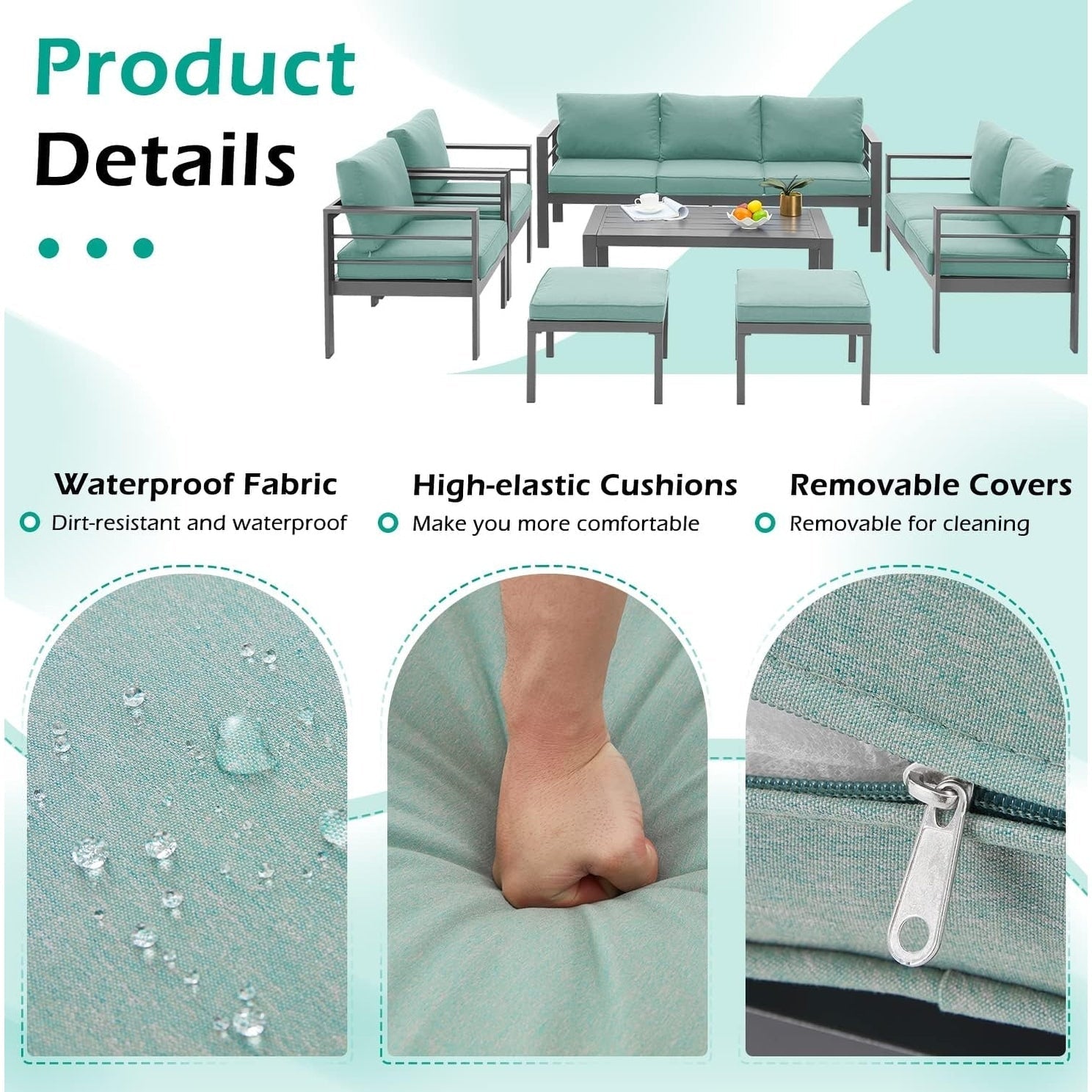 AECOJOY Ensemble de meubles de patio en aluminium 7 pièces, ensemble de conversation d'extérieur