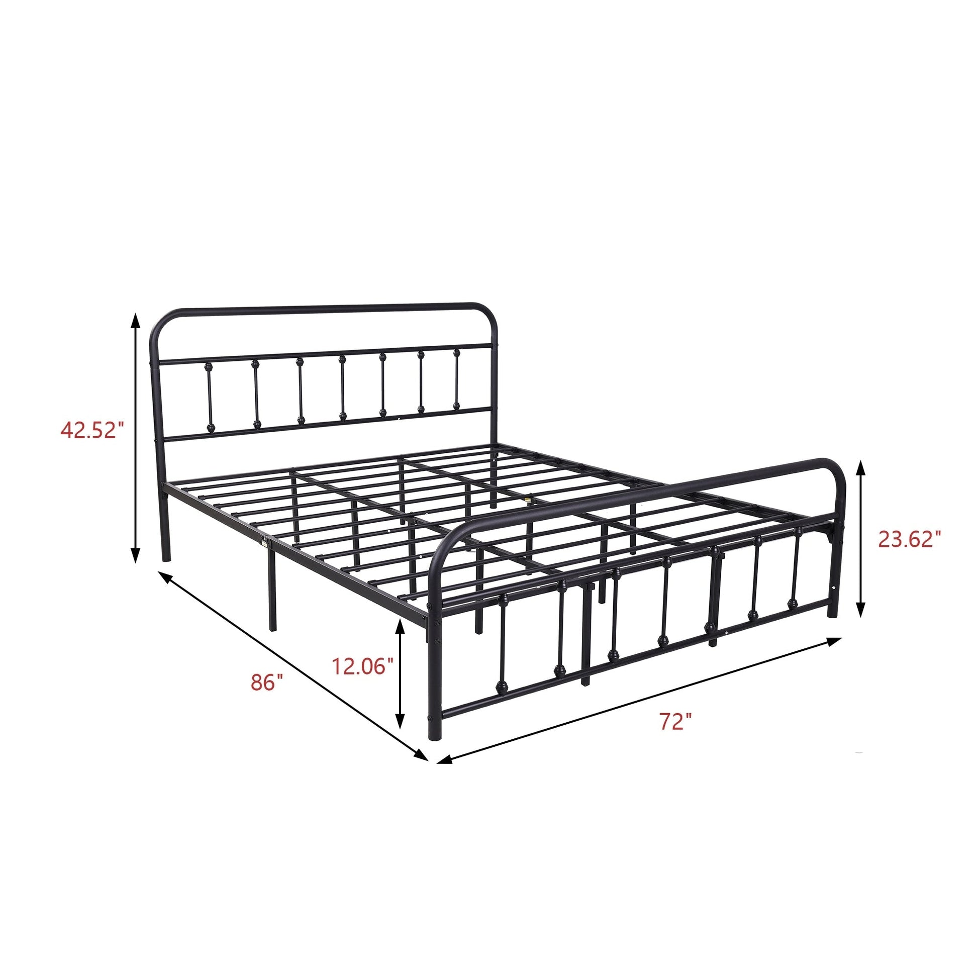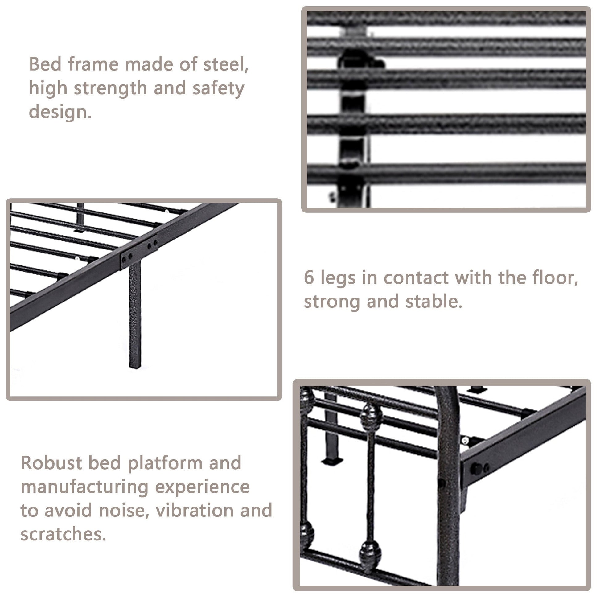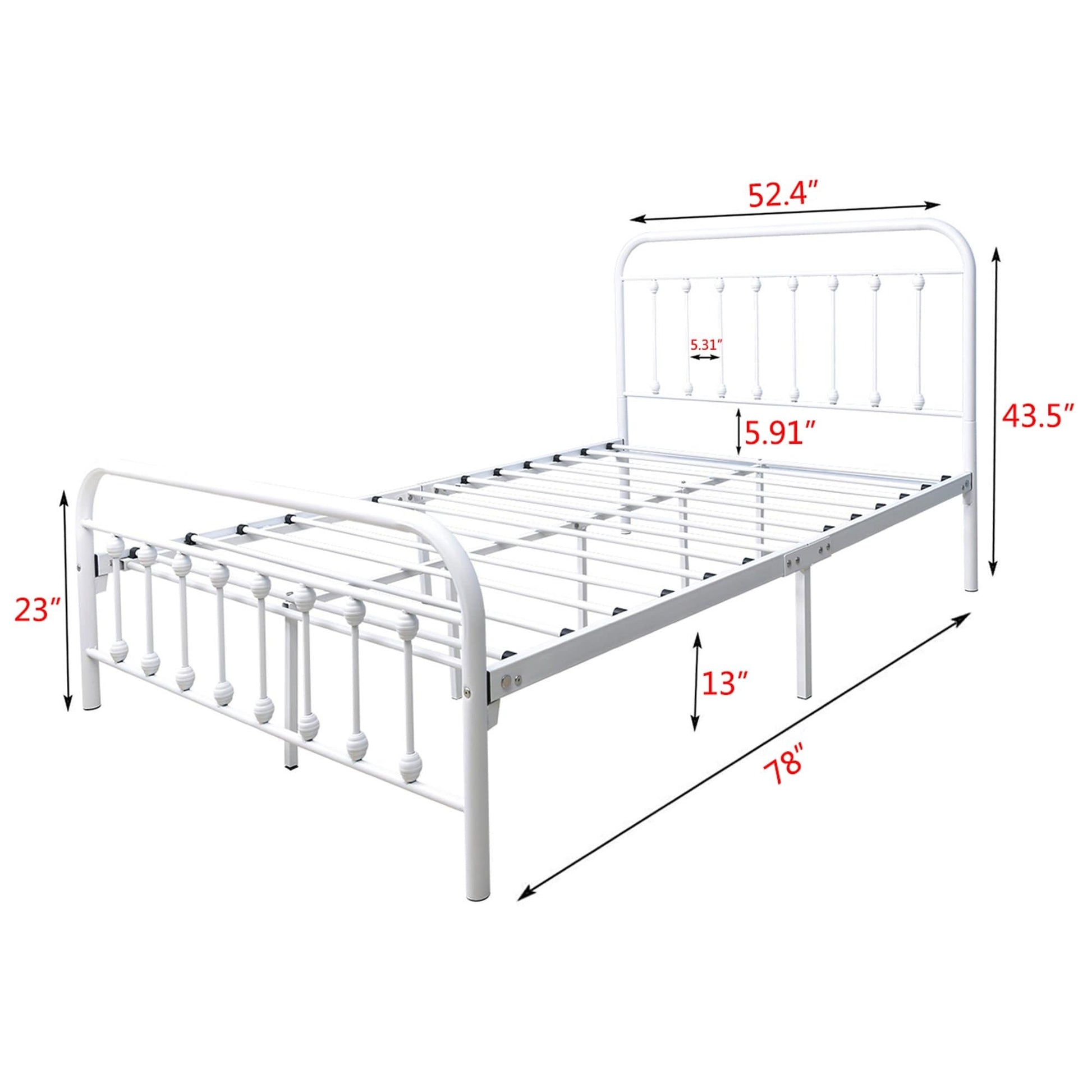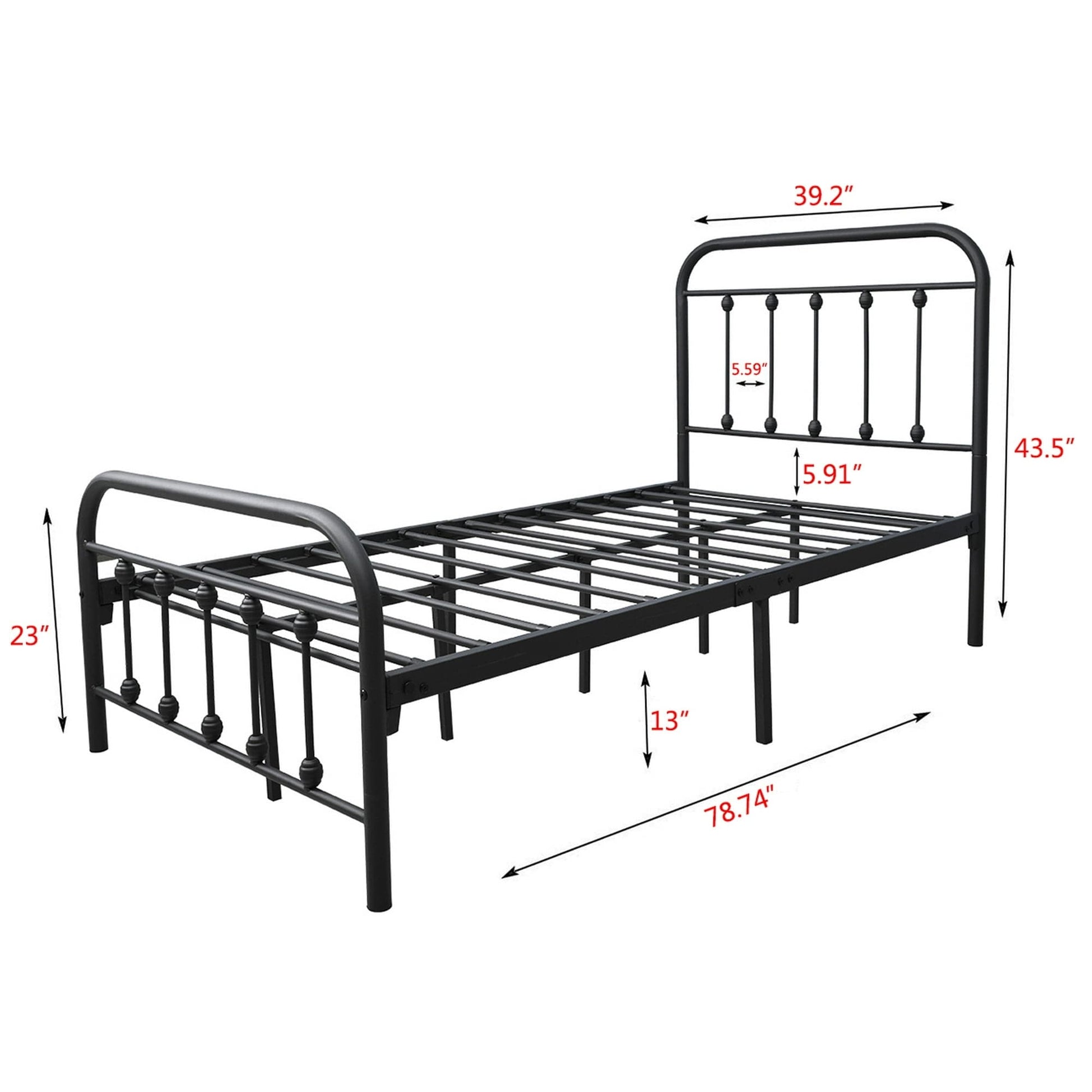 Rehaussez le style de votre chambre avec le cadre de lit plateforme en métal vintage simple Alazyhome. Ce cadre de lit au style vintage et aux couleurs sobres s'intègre facilement à des couleurs et des accessoires plus audacieuses pour donner à votre chambre un aspect rafraîchi. Adapté à tous les âges, ce cadre de lit élimine le besoin d'un sommier à ressorts et est conçu avec des lattes métalliques durables qui prolongent la durée de vie de votre matelas, tandis que la patte centrale supplémentaire offre un soutien ample pour une nuit de sommeil confortable. Tous les éléments et outils nécessaires sont inclus dans un seul colis, permettant un montage et un démontage faciles. Avec 30 cm d'espace de rangement sous le cadre du lit, il aide à garder votre chambre propre et rangée.