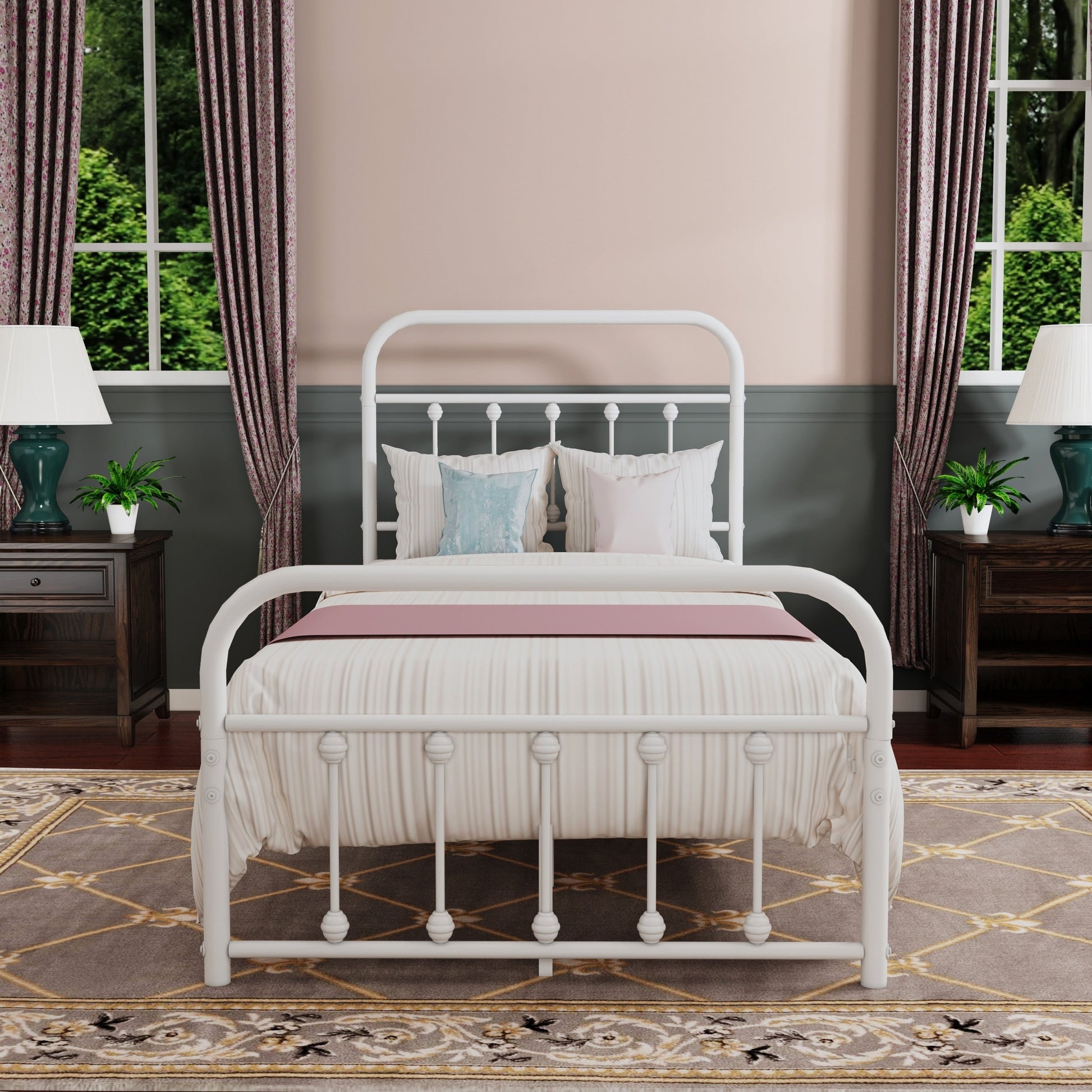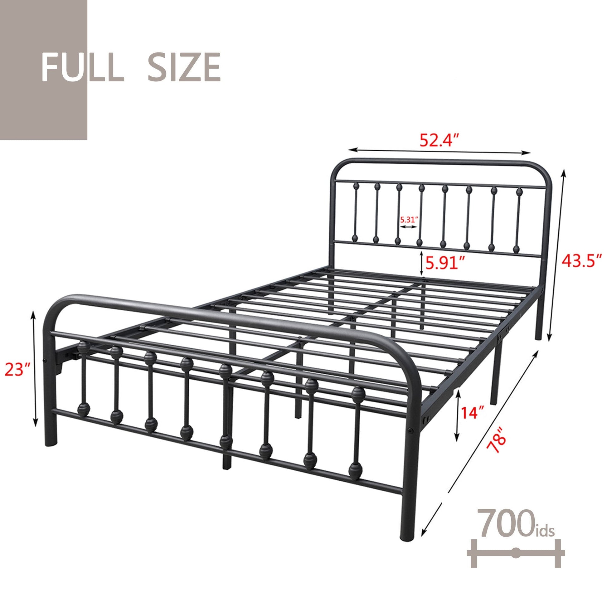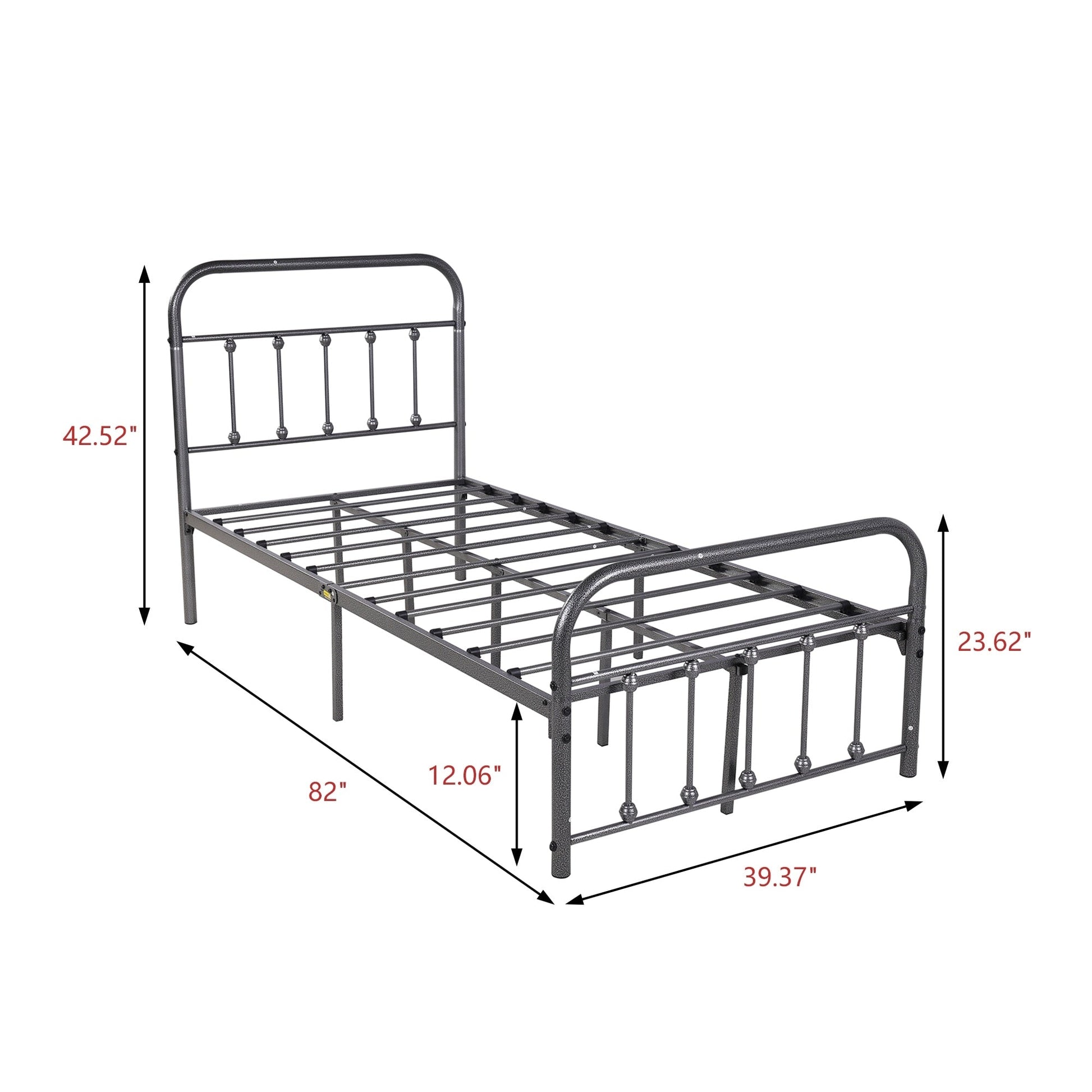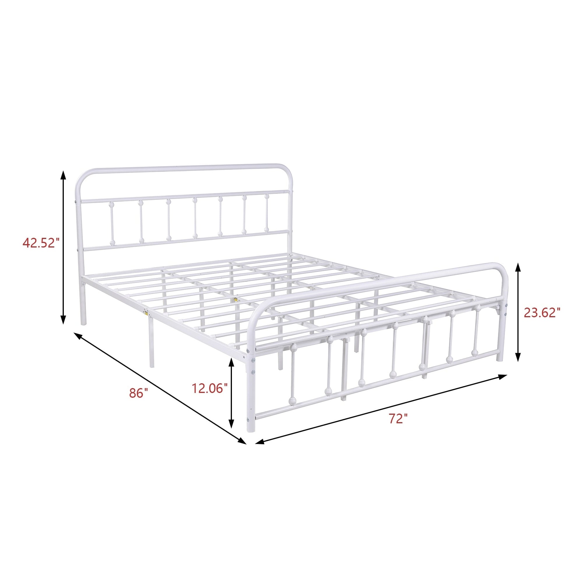 Rehaussez le style de votre chambre avec le cadre de lit plateforme en métal vintage simple Alazyhome. Ce cadre de lit au style vintage et aux couleurs sobres s'intègre facilement à des couleurs et des accessoires plus audacieuses pour donner à votre chambre un aspect rafraîchi. Adapté à tous les âges, ce cadre de lit élimine le besoin d'un sommier à ressorts et est conçu avec des lattes métalliques durables qui prolongent la durée de vie de votre matelas, tandis que la patte centrale supplémentaire offre un soutien ample pour une nuit de sommeil confortable. Tous les éléments et outils nécessaires sont inclus dans un seul colis, permettant un montage et un démontage faciles. Avec 30 cm d'espace de rangement sous le cadre du lit, il aide à garder votre chambre propre et rangée.