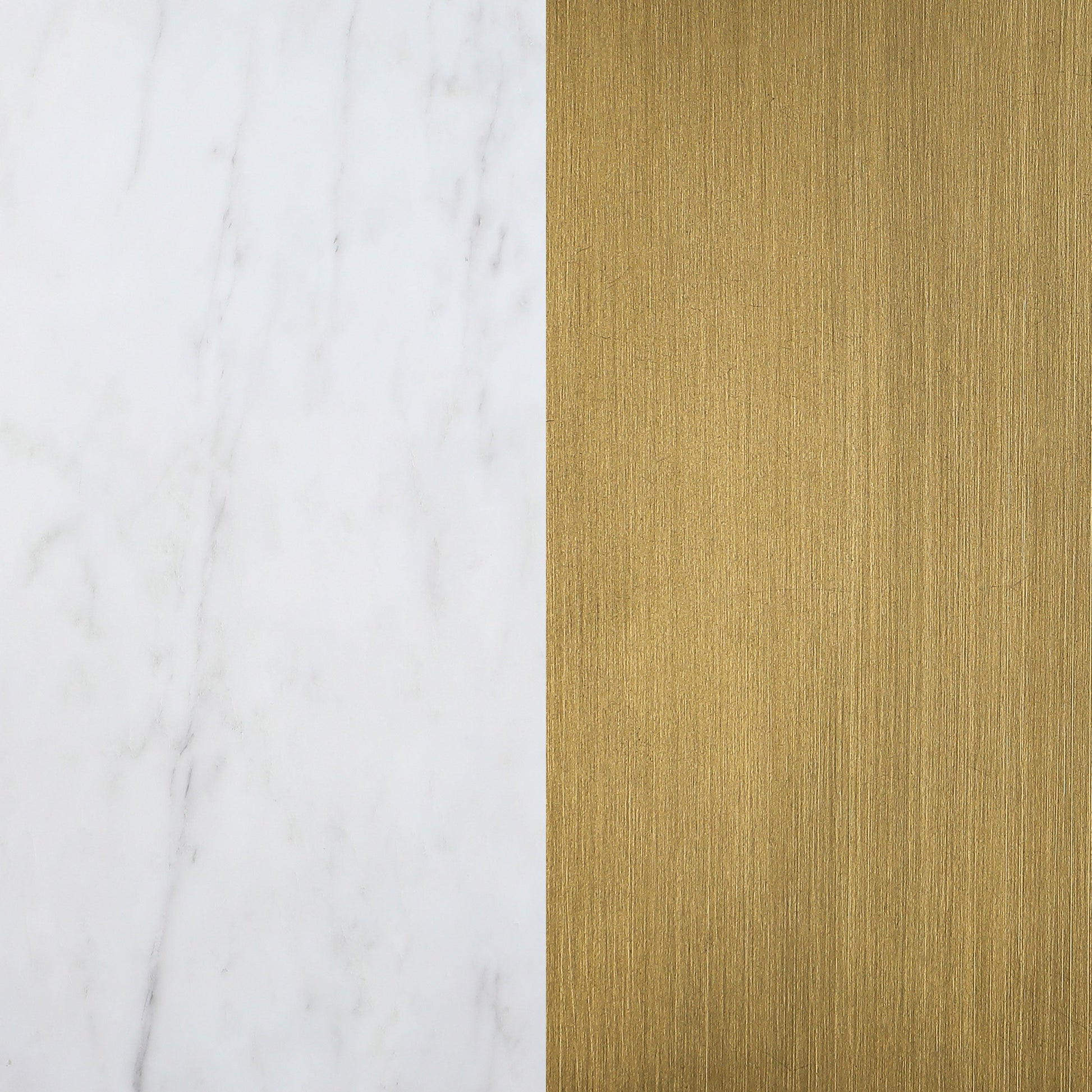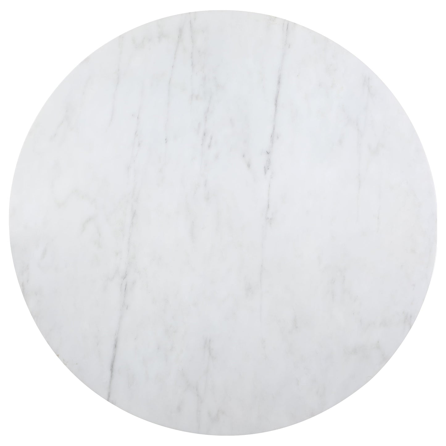 Rafraîchissez votre salle à manger élégante avec l'aspect et le toucher luxueux du marbre véritable. Cette table de salle à manger moderne associe une silhouette ronde à un magnifique marbre blanc avec des veinages gris clair, offrant une élégance et une profondeur organiques. Cette table remarquable repose sur une base de piédestal conique qui reçoit une finition dorée brillante, rayonnant de chaleur et de sophistication. Cette table est un ajout magnifique dans un espace salle à manger formel, offrant un caractère raffiné à votre famille et à vos amis. L'association du marbre frais et de l'or brossé chaud crée un équilibre parfait.