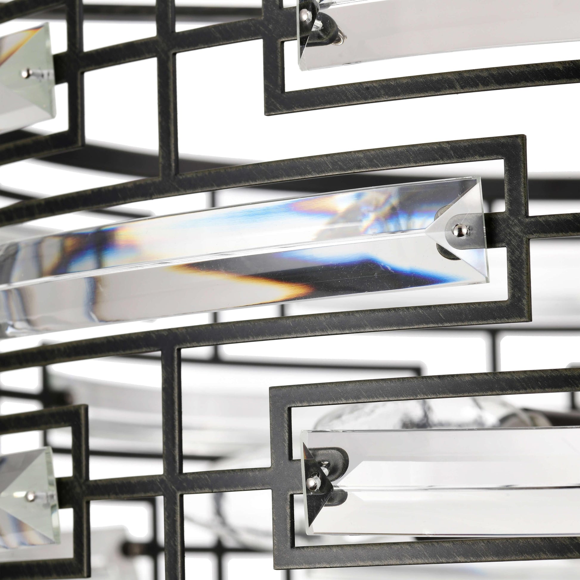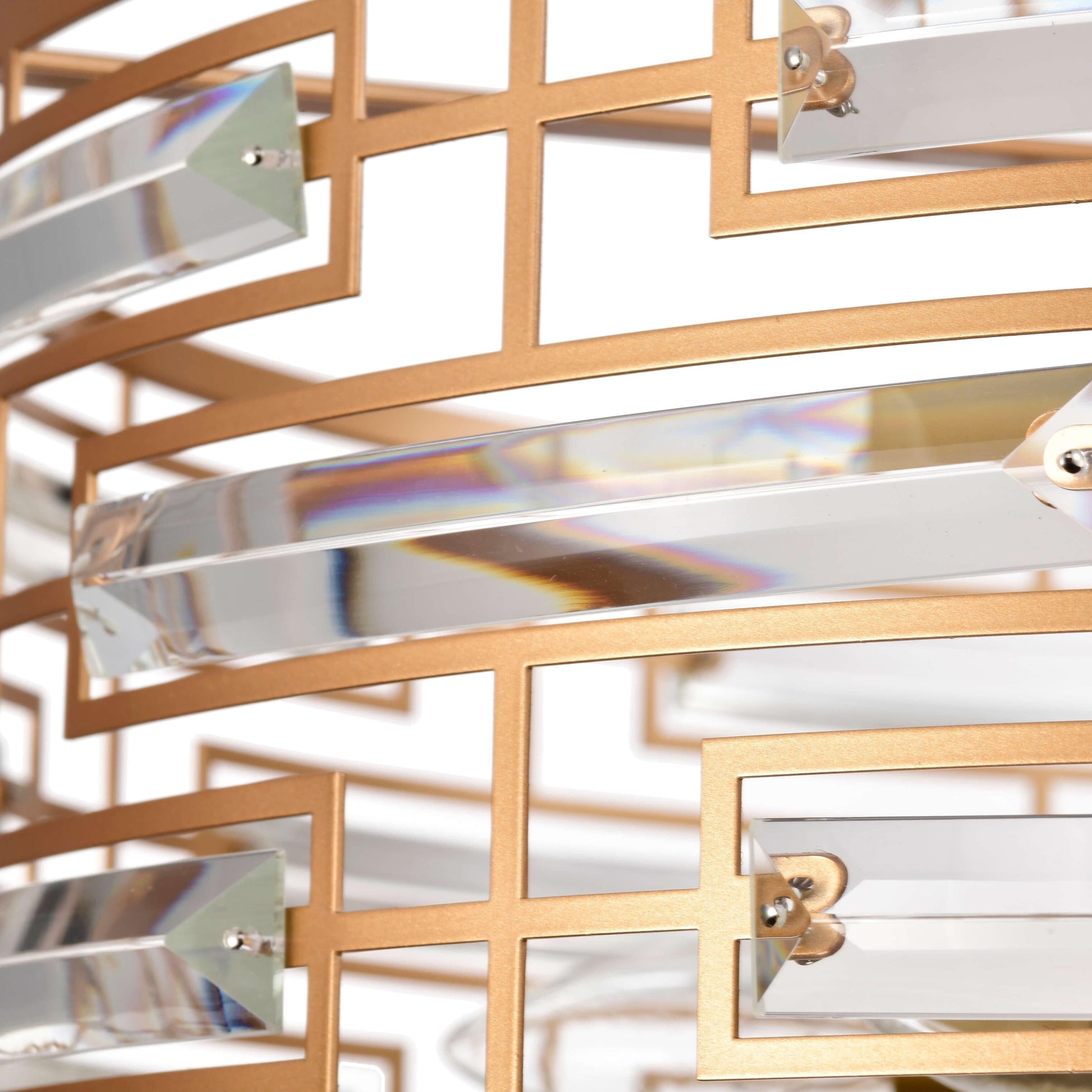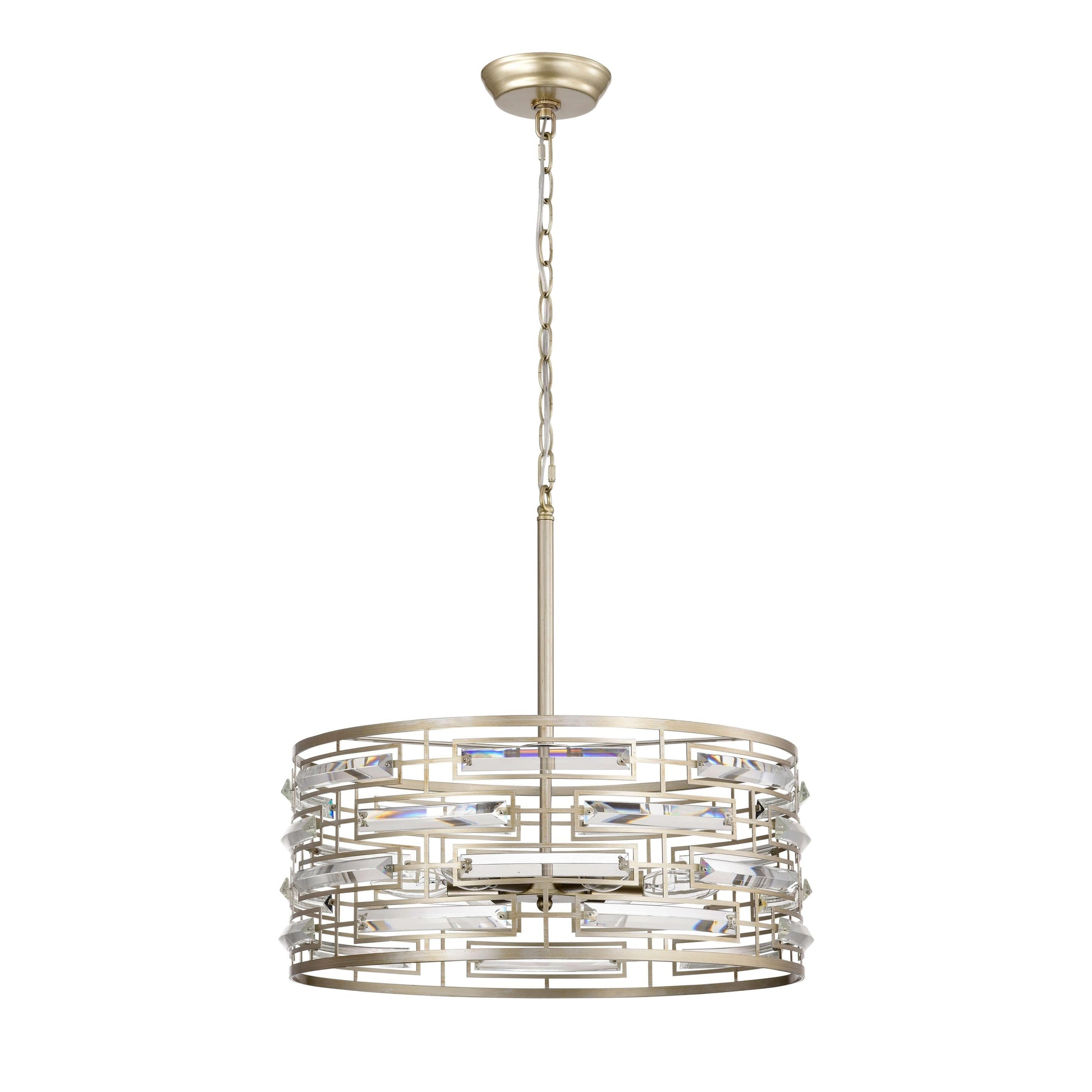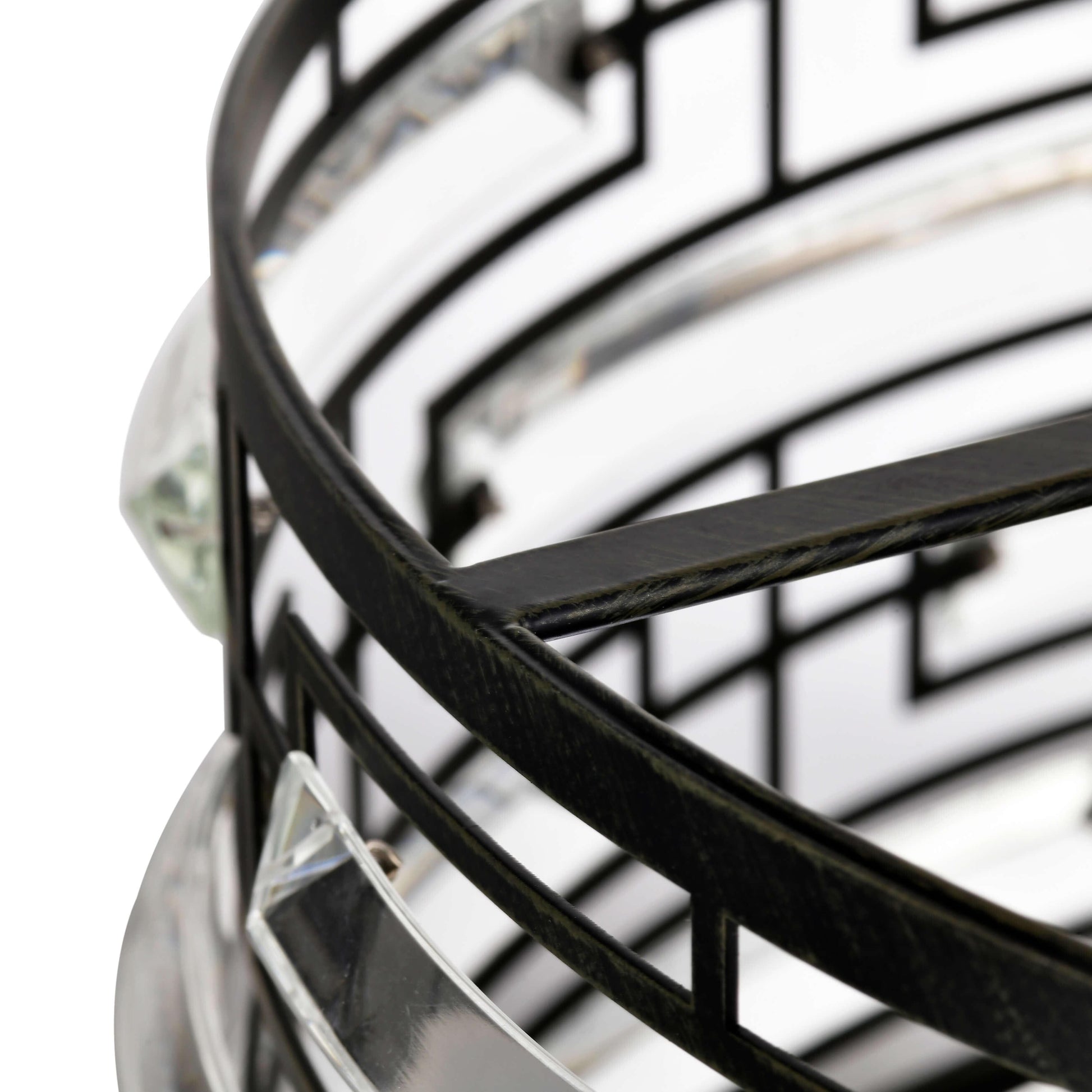 Titre : Lustre Anita à abat-jour tambour avec prismes en verre transparent