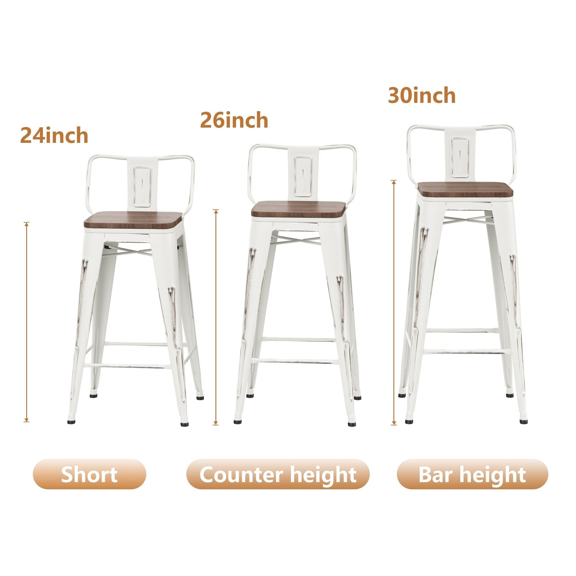 Tabourets de bar avec dossier, lot de 4, tabourets de bar industriels en métal avec assises en bois