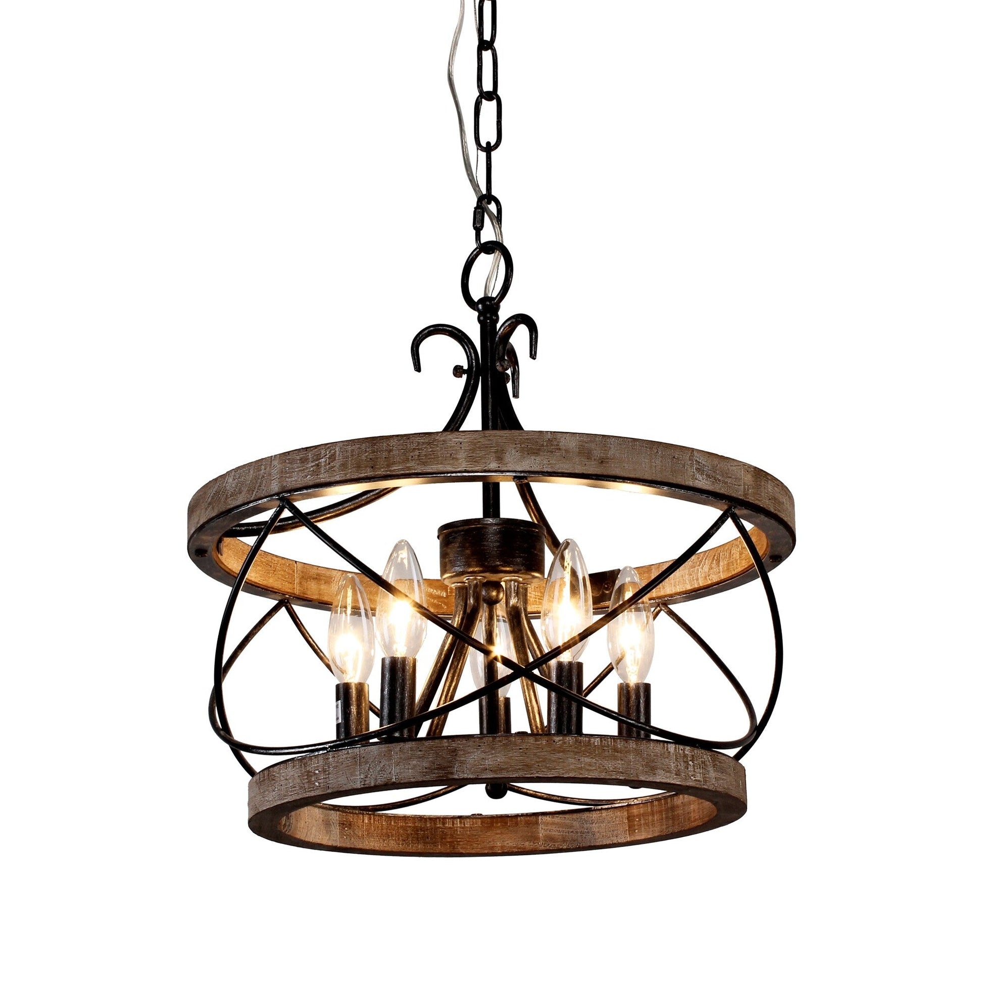 Bella Depot Lustre en bois rustique à 5 lumières, éclairage à intensité variable, luminaire suspendu de style farmhouse réglable de 15,7 pouces pour îlot de cuisine