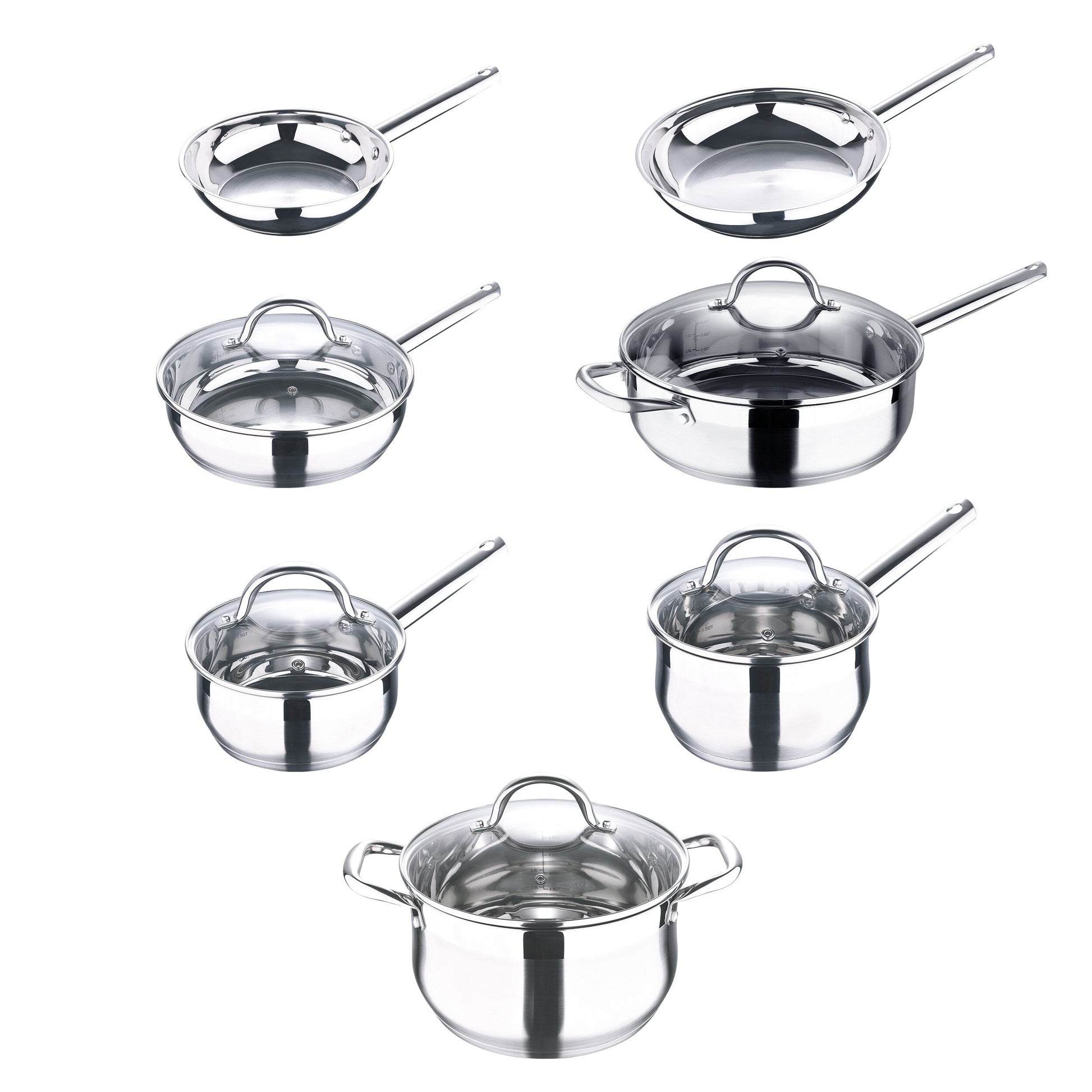 Rehaussez votre collection de cuisine avec l'ensemble de casseroles et poêles Gourmet en acier inoxydable 12 pièces. Cet ensemble de 12 pièces comprend tous les ustensiles de cuisine essentiels pour répondre aux exigences des cuisiniers amateurs passionnés. La chaleur et l'humidité circulent parfaitement dans les récipients grâce à la forme bombée, assurant des résultats de cuisson optimaux pour toutes les recettes. L'ensemble de casseroles et poêles Gourmet 12 pièces comprend une poêle de 8 pouces, une poêle de 10 pouces, une poêle de 12 pouces avec couvercle, une sauteuse de 2,5 quarts avec couvercle, une casserole de 1,3 quart avec couvercle, une casserole de 2 quarts avec couvercle et une cocotte de 5 quarts avec couvercle.