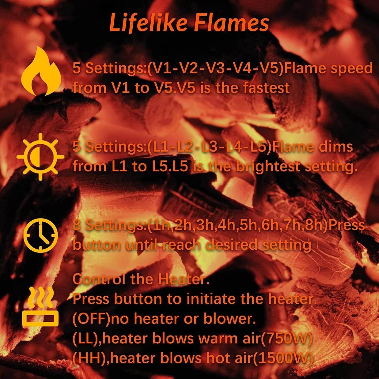- ✅【Effet de flamme réaliste】: Ce foyer peut être utilisé avec ou sans chaleur et présente des effets de flamme réalistes en 3D, ce qui en fait un complément parfait à votre salon ou à votre salle à manger. 12 couleurs de flammes incluent les 3 couleurs de flammes classiques améliorées (rouge, orange et bleu), 5 vitesses de flamme et 5 luminosités de flamme ainsi que 4 options de couleurs de feu de charbon. L'effet magnifique peut être utilisé avec ou sans chaleur, donnant à votre pièce une ambiance onirique.