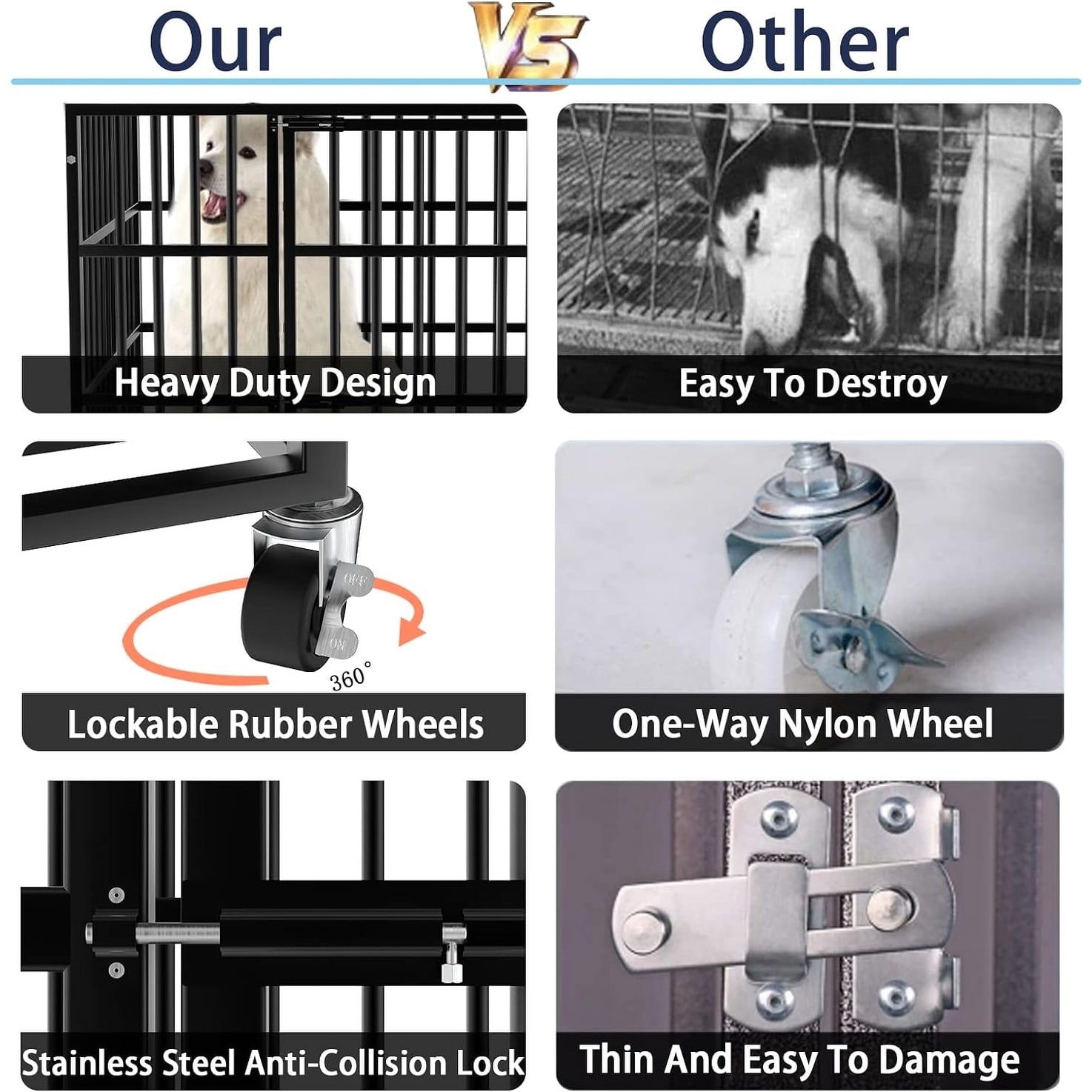- 🐶【Excellente cage pour chien robuste et économique】Cette cage pour chien est spécialement conçue pour les chiens de berger allemand, golden retriever, labrador et autres chiens de grande taille. Si vous rencontrez des problèmes avec votre cage pour chien au cours de l'année, vous pouvez toujours nous contacter et nous nous occuperons de votre adorable chien.