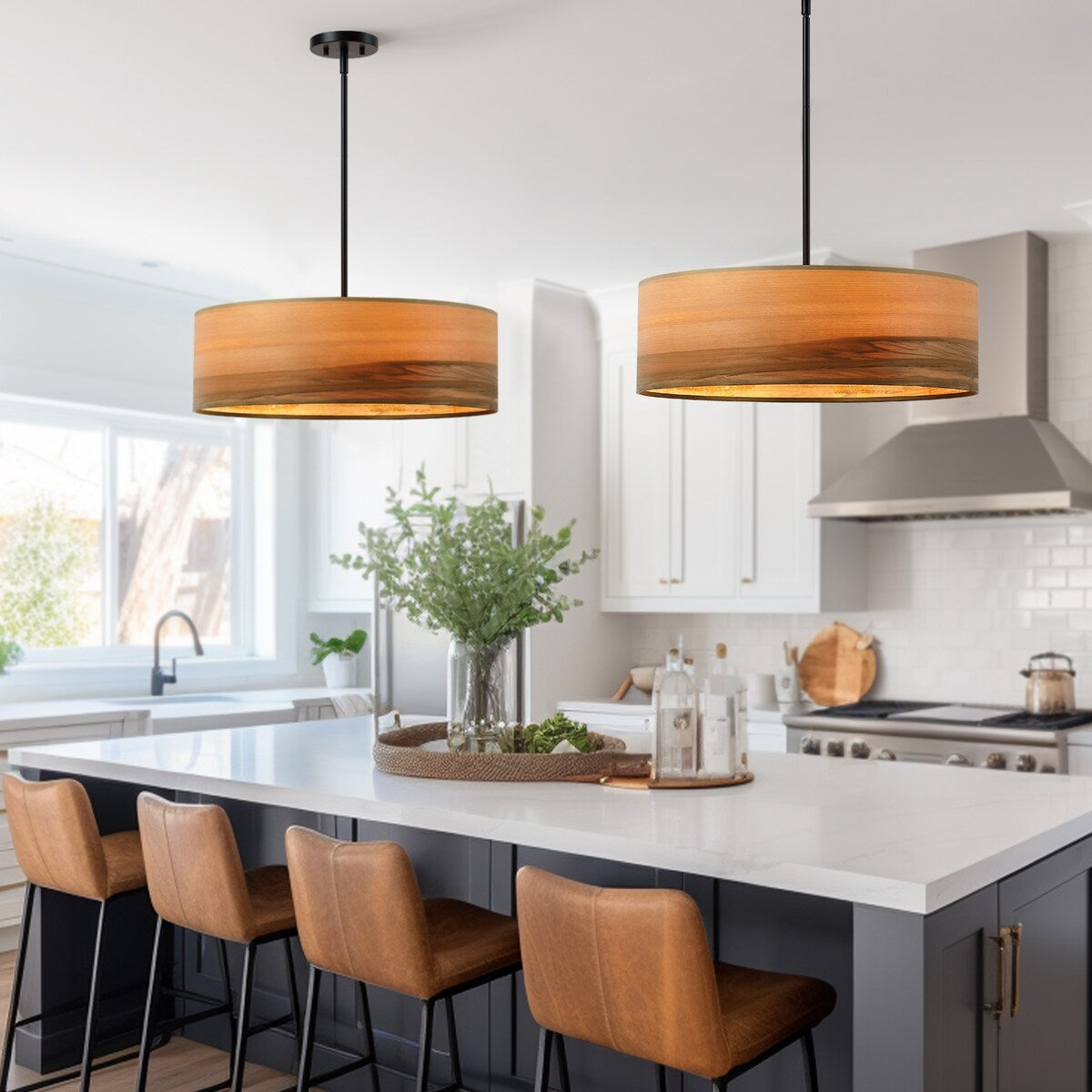 L'abat-jour de 56 cm de diamètre est fabriqué en vrai bois de pommier. Il s'intègre parfaitement à tous les styles de décoration intérieure, des plus classiques aux plus contemporains, en passant par les styles décontractés, éclectiques, rustiques, champêtres, vintage, etc., grâce à la beauté de son matériau naturel et à sa douce lumière filtrée lorsqu'il est allumé. C'est une pièce décorative et attrayante qui fera sensation dans un salon, une chambre à coucher, un hall d'entrée ou au-dessus d'un îlot de cuisine, d'une table à manger ou d'un bar de café.