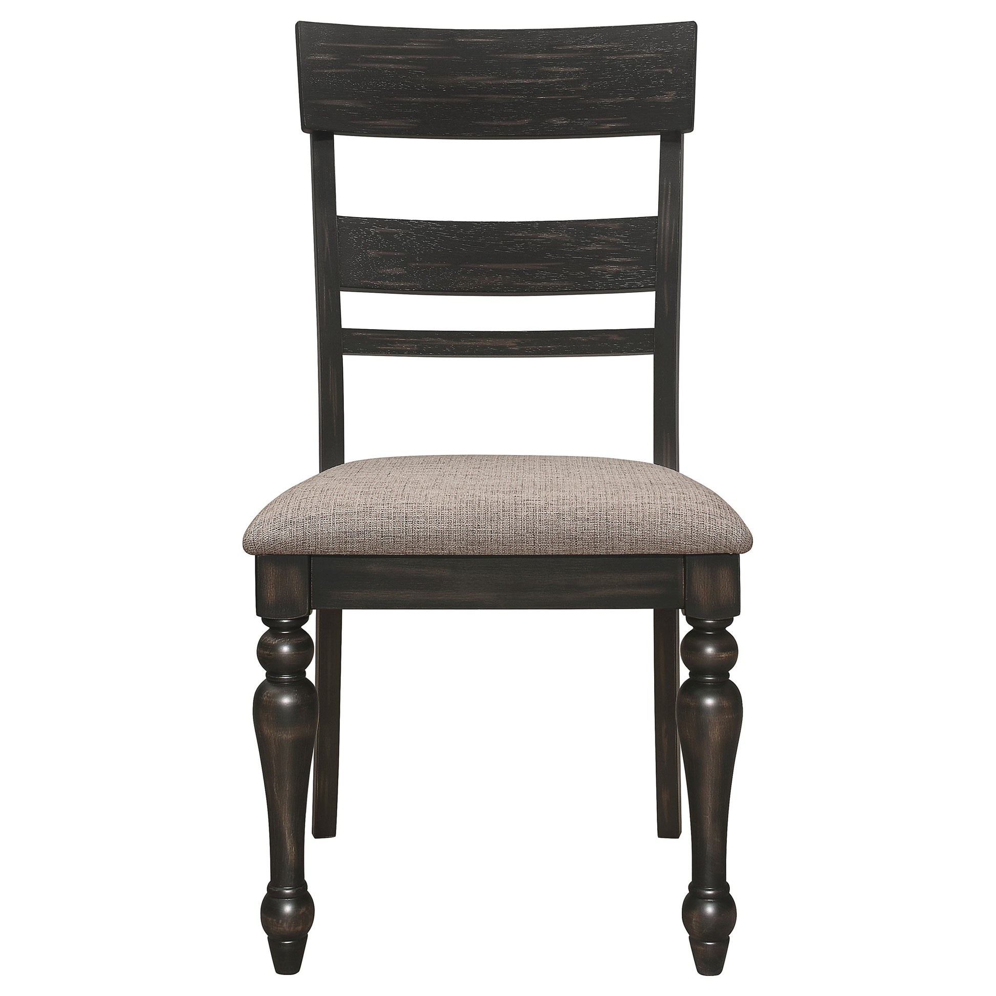 Un style traditionnel audacieux et rustique, rehaussé de touches modernes, apporte du style à votre salle à manger. Ce set de salle à manger cinq pièces met en valeur le meilleur d'une esthétique hybride alliant style farmhouse et style mid-century, avec une palette de couleurs et de finitions douce et polyvalente, et une construction en bois dur et produits dérivés du bois d'Asie. Une table rectangulaire associe des finitions contrastées : un plateau en bois brun brossé et un piètement et des pieds au fini sable anthracite glamour. Des lignes courbes et des pieds tournés ajoutent un charme irrésistible à la table, qui accueille des chaises à dossier en échelon brun. Une silhouette latérale à l'arcure douce avec des pieds avant tournés crée un look glamour, rehaussé d'un revêtement de siège en tissu brun pierre neutre et doux.