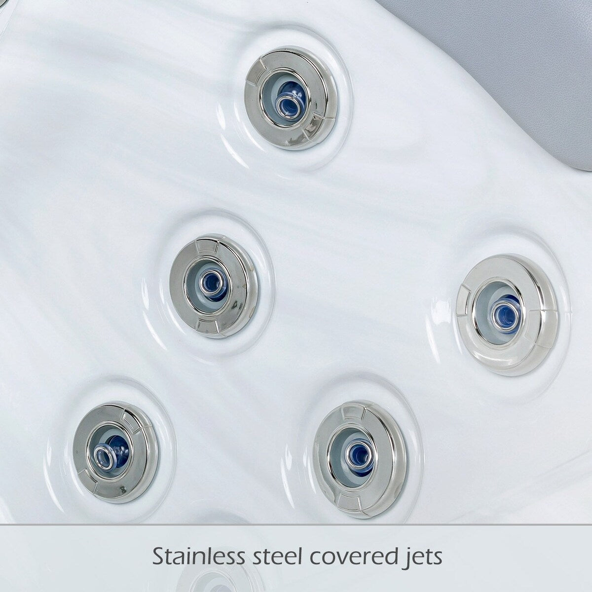 Bain à remous Buenospa Jersey 6 places, 46 jets, blanc glace, gris avec ozone et lumières LED.