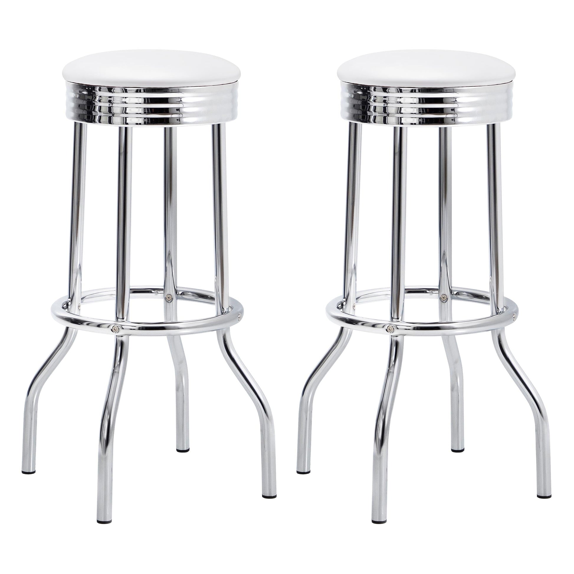 Apportez une touche rétro à votre bar ou à votre cuisine avec ce tabouret de bar pivotant, doté d'une base en chrome cannelé et d'un siège en simili cuir blanc rembourré. Hommage au design classique des restaurants, il allie un charme nostalgique à un confort et une durabilité modernes.