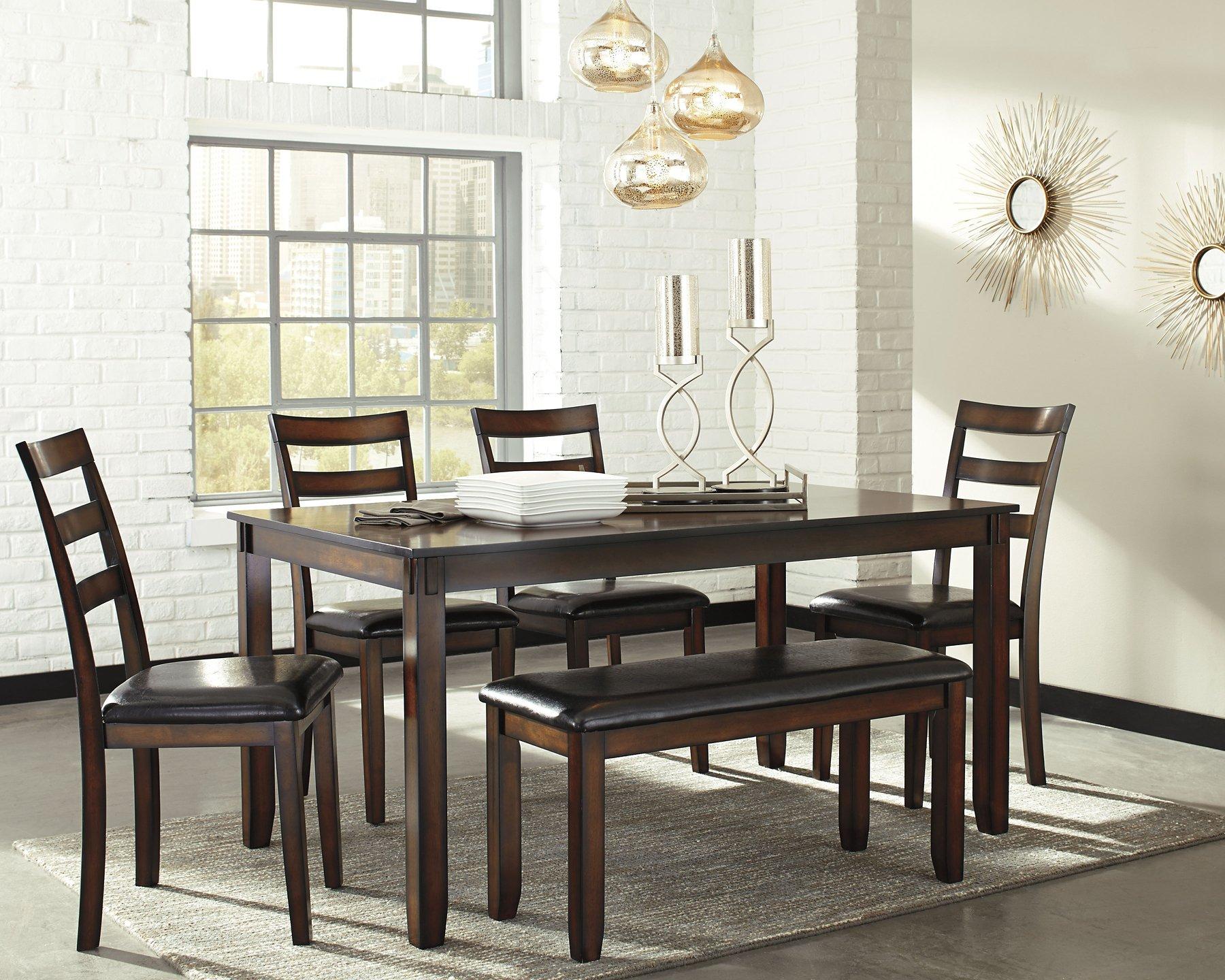 Table à manger et chaises Coviar avec banc (ensemble de 6)