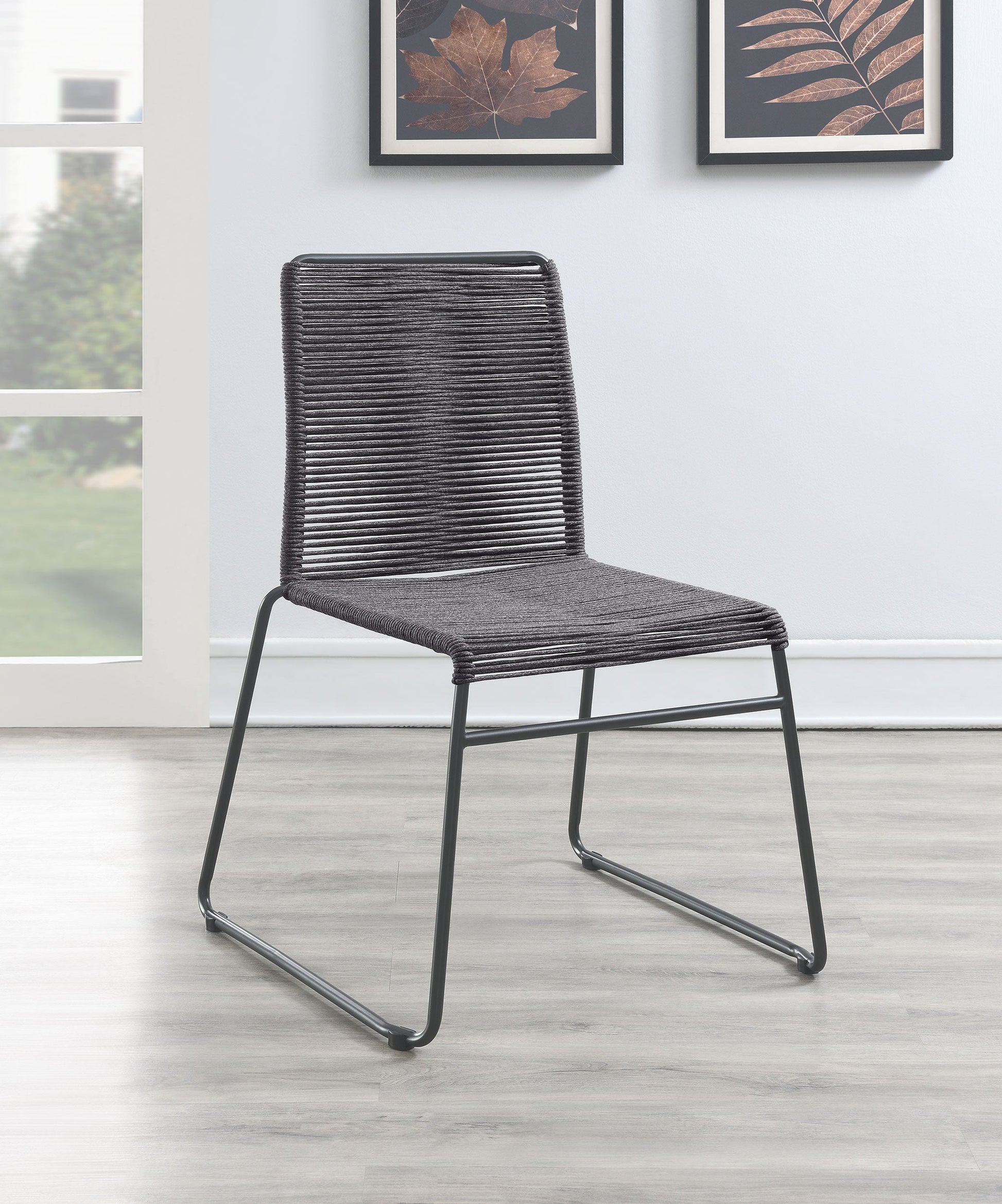 Ajoutez une touche de texture à votre espace avec ce fauteuil contemporain en corde tressée. Conçu avec une élégante structure en métal, une corde en homopolymère entrelace le dossier et l'assise, offrant un endroit confortable pour se reposer. Le cadre métallique est traité avec une finition thermolaquée, offrant une durabilité et une résistance accrues. Avec son assise fine et ses pieds inclinés, ces chaises peuvent être rangées et empilées jusqu'à l'arrivée de vos invités. Ou, mieux encore, placez-les au centre d'une table de salle à manger ou d'un bureau minimaliste et moderne.