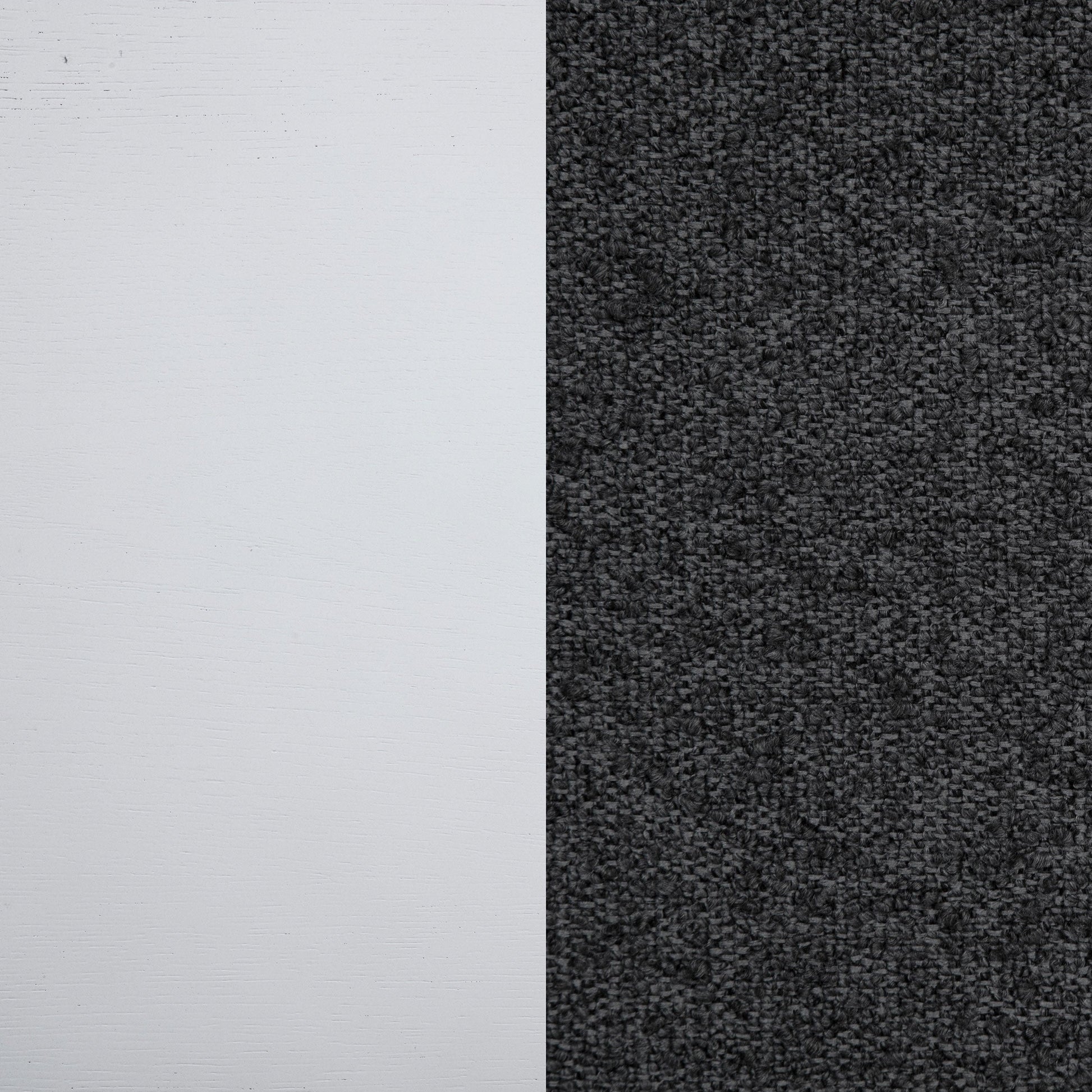 Le revêtement gris tridimensionnel crée un contraste et une profondeur saisissants pour ce lot de deux chaises de salle à manger modernes. Chacune possède une silhouette haute et raffinée, sans accoudoirs, pour créer une silhouette fluide et épurée. Les coussins sont rembourrés de mousse et recouverts d'un revêtement gris foncé. Une finition blanc perle ajoute un caractère net et clair, offrant un aspect qui s'intègre parfaitement dans une variété d'espaces et de styles de décoration. Les chaises sont dotées de pieds avant évasés et d'arêtes carrées qui accentuent un aspect net et précis.