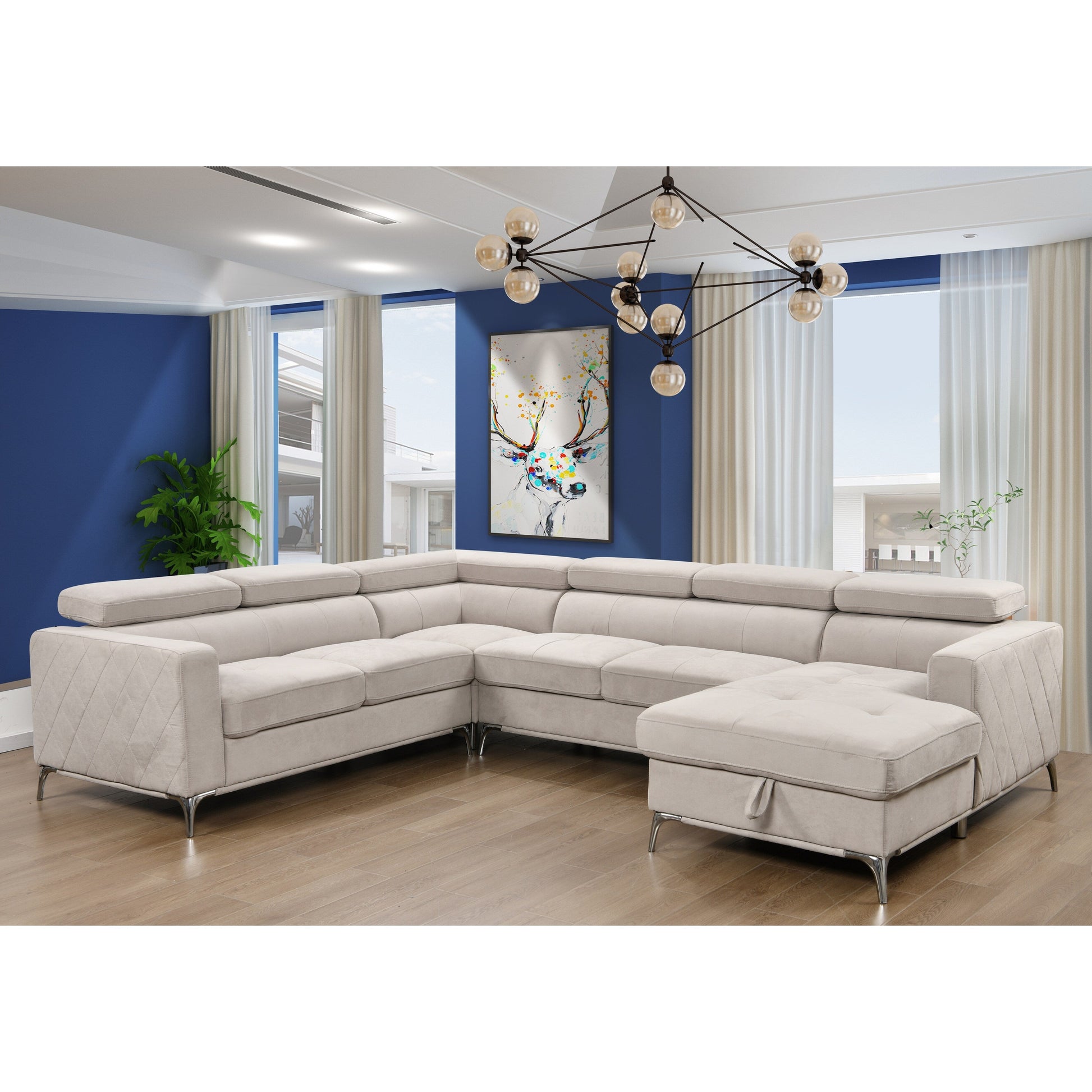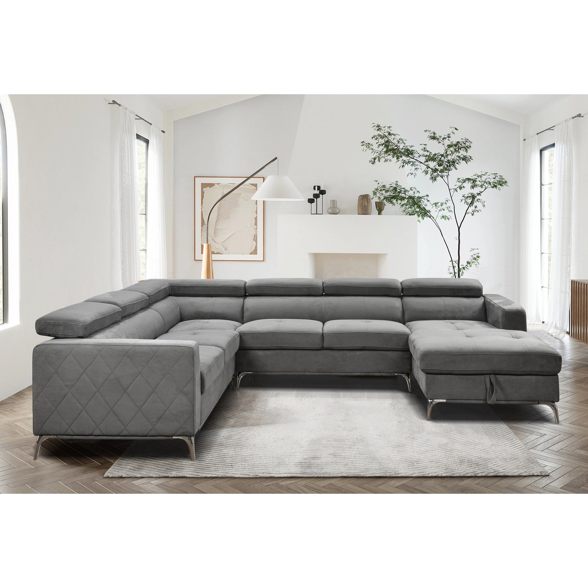 Roomfitters 122 Canapé Sectionnel Extra-Large avec Chaise Longue et Range-Ménage, Canapé Contemporain en Forme de U à 7 Places