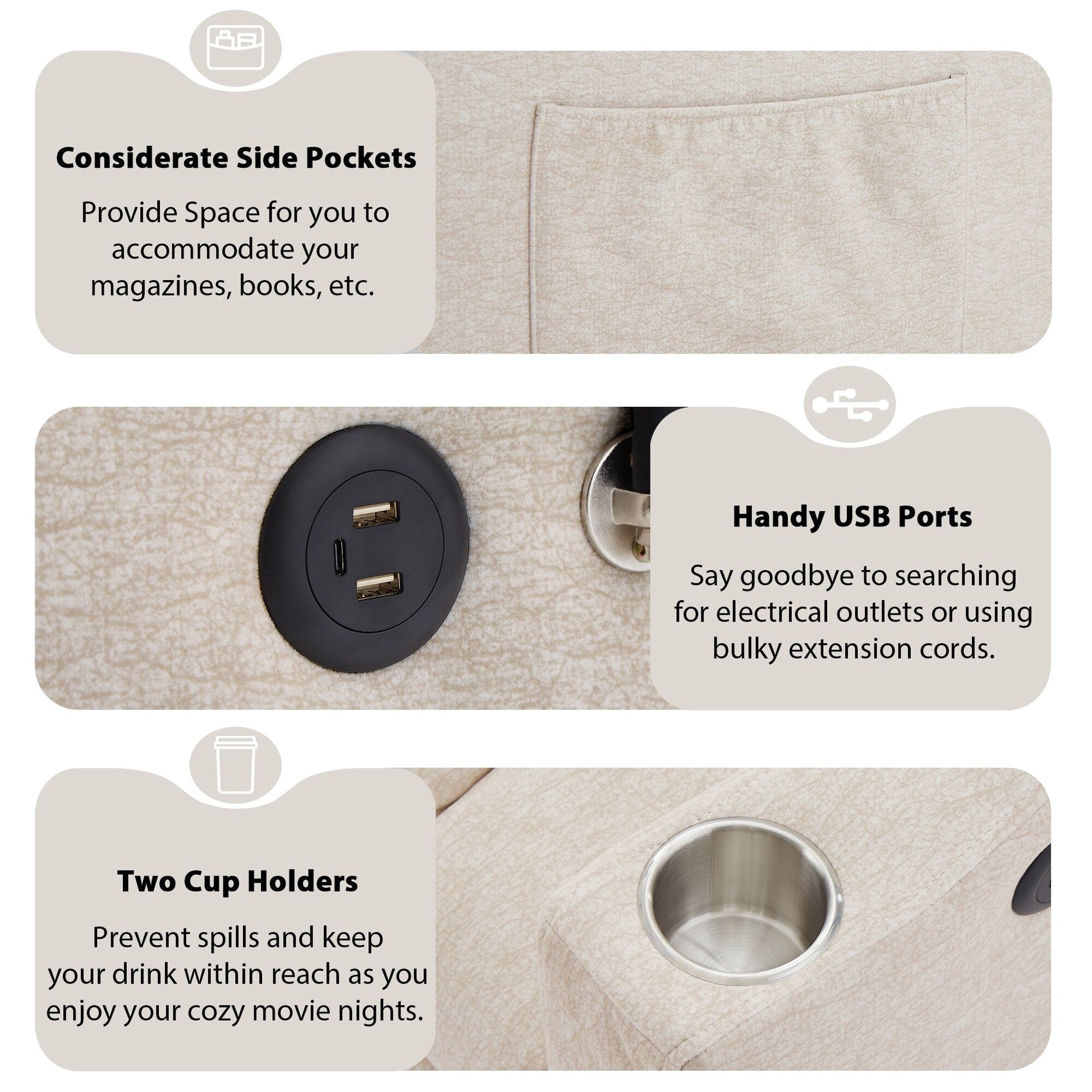 - Caractéristiques pratiques : Comprend 3 ports USB pour une recharge facile, 2 poches latérales pour le rangement et 2 porte-gobelets intégrés pour garder les boissons à portée de main sans les renverser.