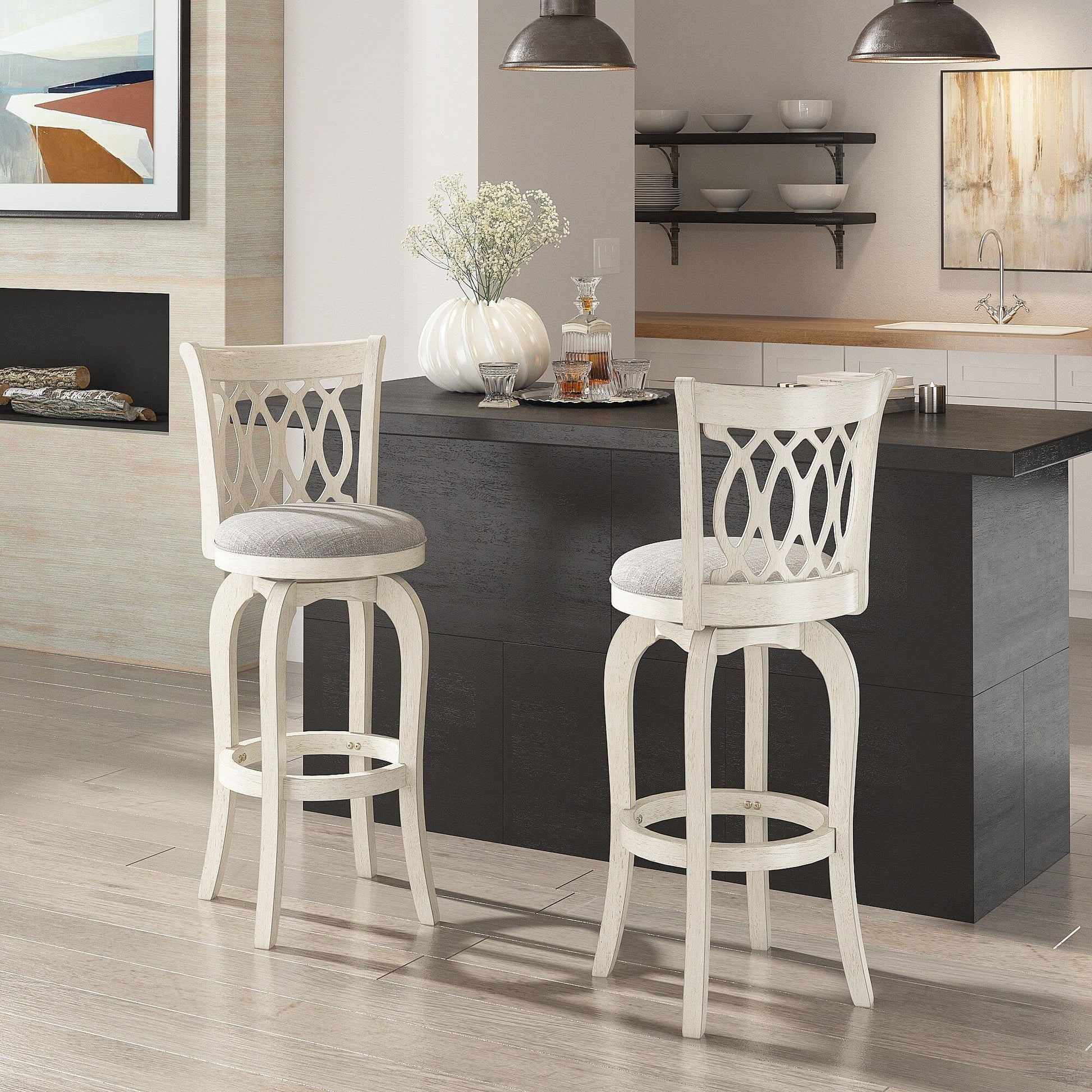 Fabriqué en caoutchouc durable, ce tabouret pivotant à dossier incurvé en lin présente un style classique et magnifique et offre un soutien confortable pour les repas quotidiens. Une riche finition bois complète le cadre de la chaise, tandis qu'un repose-pieds et un siège rembourré offrent un confort amélioré pour un usage quotidien. La fonction pivotante de ce tabouret offre une mobilité accrue et permet de converser facilement avec ses amis et sa famille pendant les repas. Le design solide du dossier incurvé ajoute un rembourrage et un soutien supplémentaires, vous permettant d'apprécier votre assise.