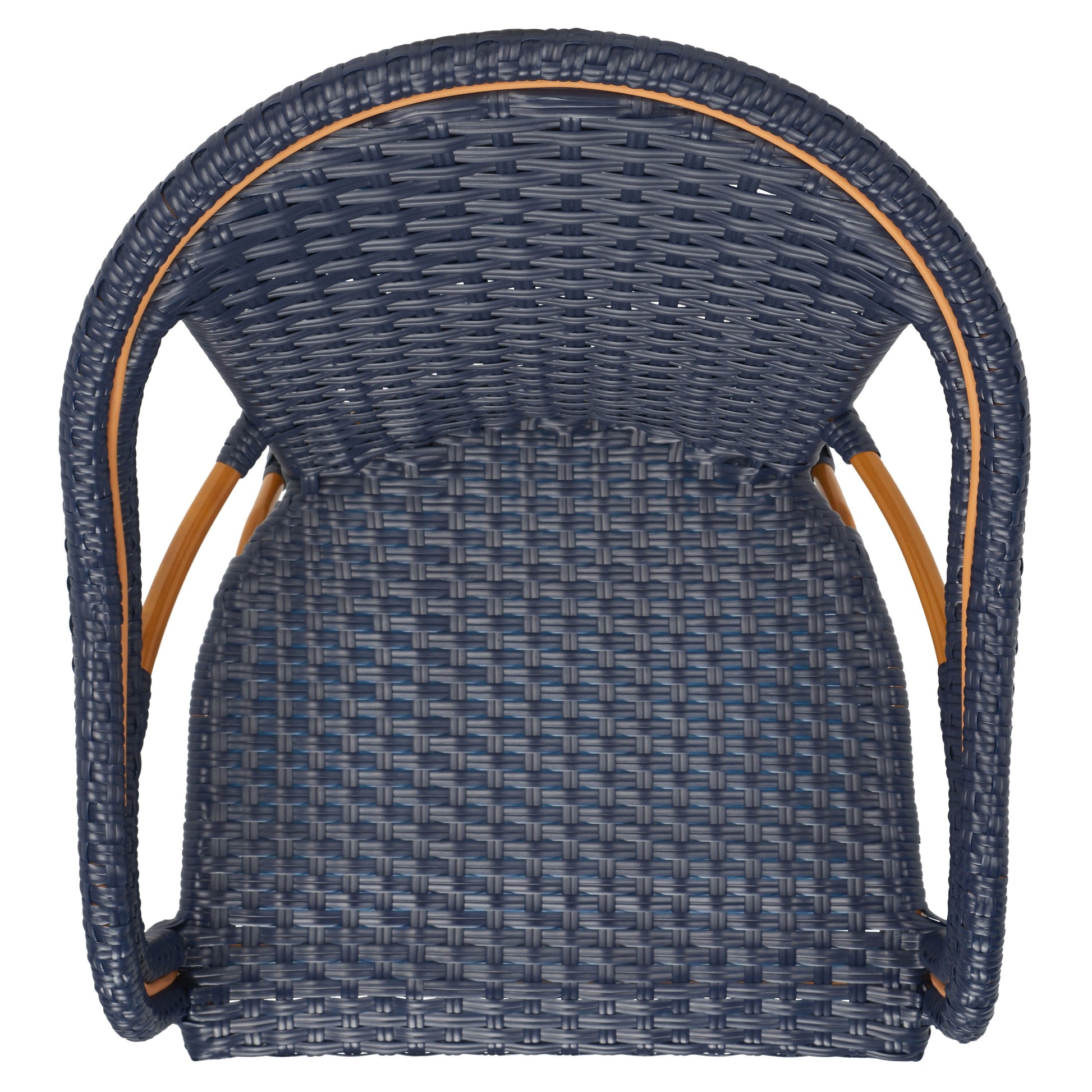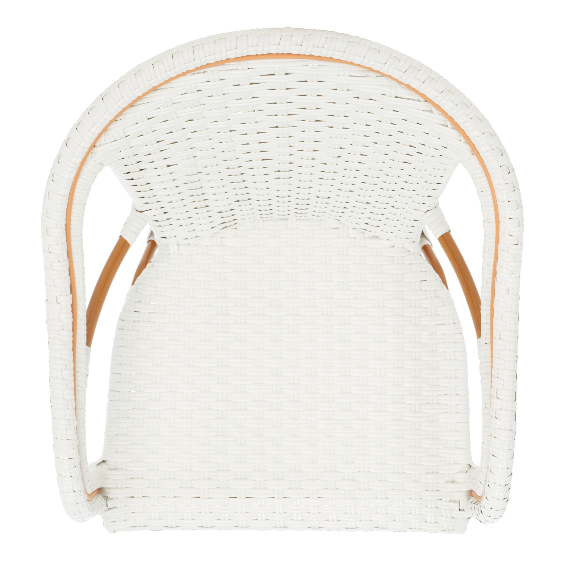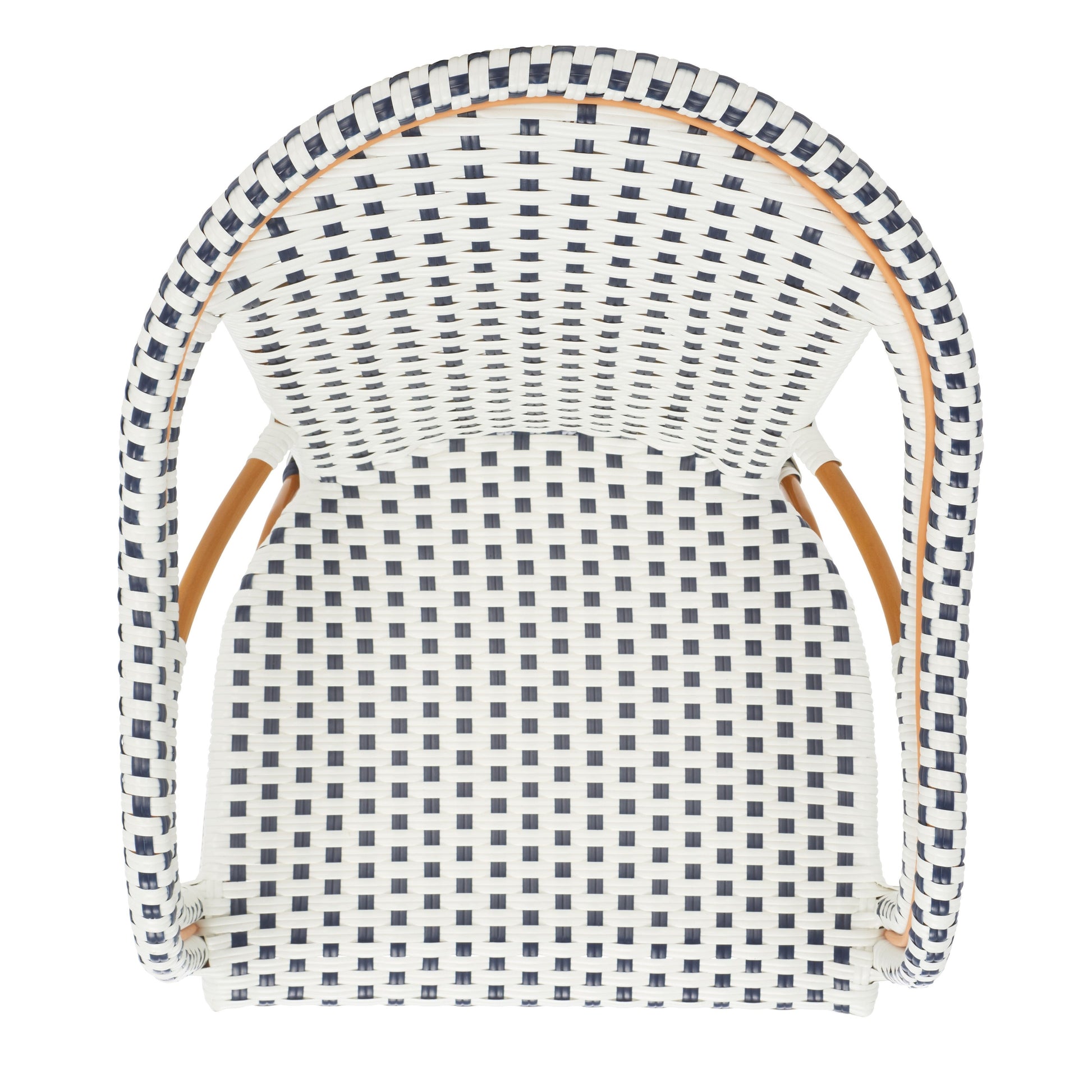 Complétez n'importe quel espace extérieur avec le charme et la chaleur ensoleillée de notre fauteuil. Il revisite la chaise de bistrot française traditionnelle avec une palette de couleurs. Ses contours tressés et ses accoudoirs enveloppants offrent un confort optimal. Avec son faux rotin élégamment enroulé autour d'une structure en aluminium, notre fauteuil capture une beauté texturale résistante au soleil, à la pluie et à la chaleur. Léger et résistant aux intempéries, notre fauteuil constitue un endroit pratique, élégant et confortable pour se détendre ou dîner sur votre patio ou votre terrasse.