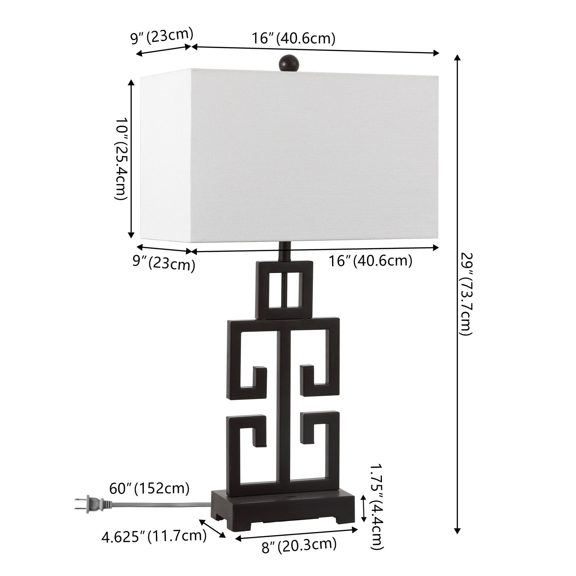 Extrêmement polyvalentes et adaptables à une myriade de styles décoratifs, ces deux lampes de table Key arborent le symbole grec emblématique de l'infini. Ce modèle est fabriqué en métal doré antique avec un abat-jour rectangulaire en coton texturé blanc.
