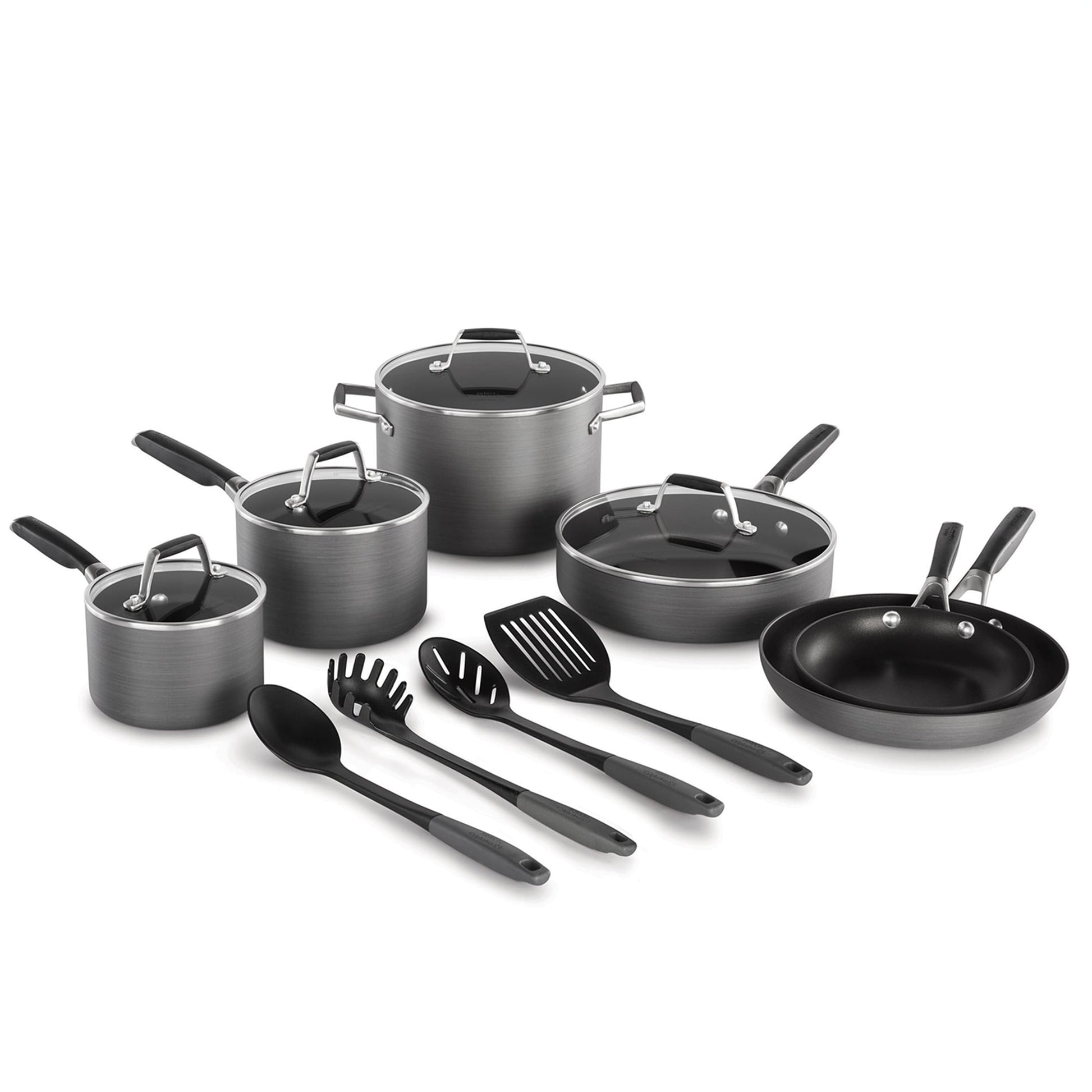 Select by Calphalon, ensemble de 14 pièces, ustensiles de cuisine antiadhésifs en aluminium anodisé dur.