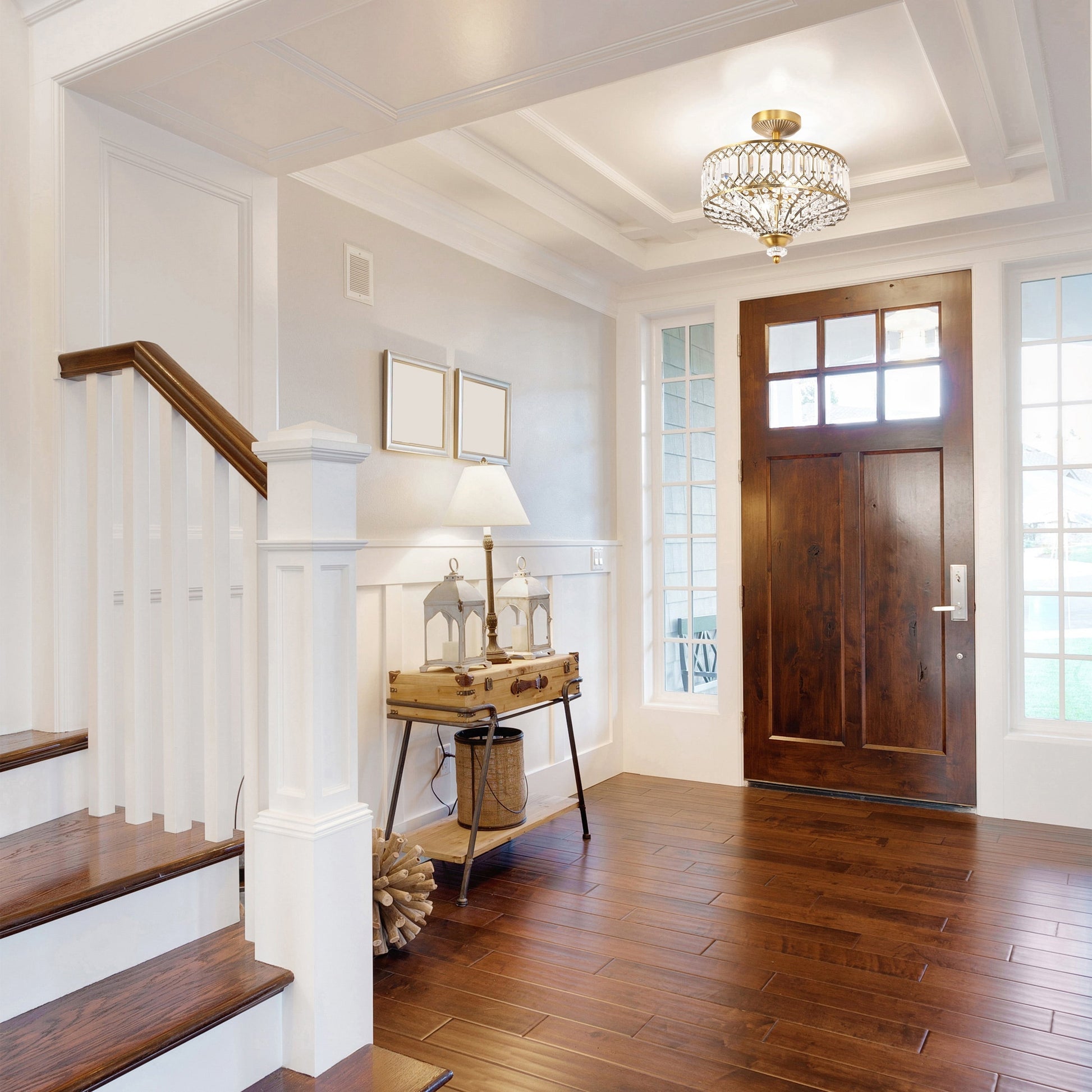 Rafraîchissez votre décoration intérieure avec ce luminaire semi-encastré exquis de Silver Orchid. Le luminaire semi-encastré en verre à plusieurs niveaux Furey en bronze/or vieilli possède plus de 350 éléments décoratifs en verre transparent et des accents supplémentaires en cristal K-9 qui rehaussent son style glamour. Le fini bronze vieilli ou doré et le design classique font de ce luminaire un ajout sophistiqué à votre maison.