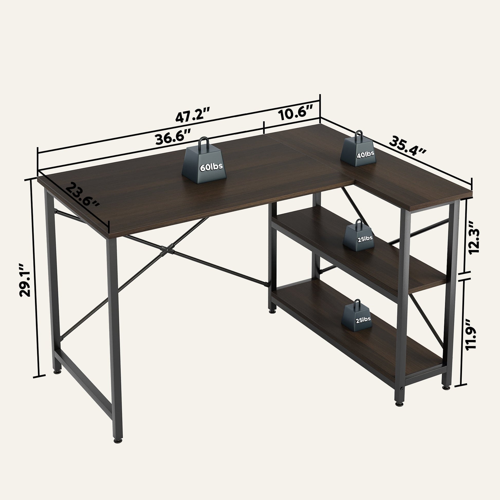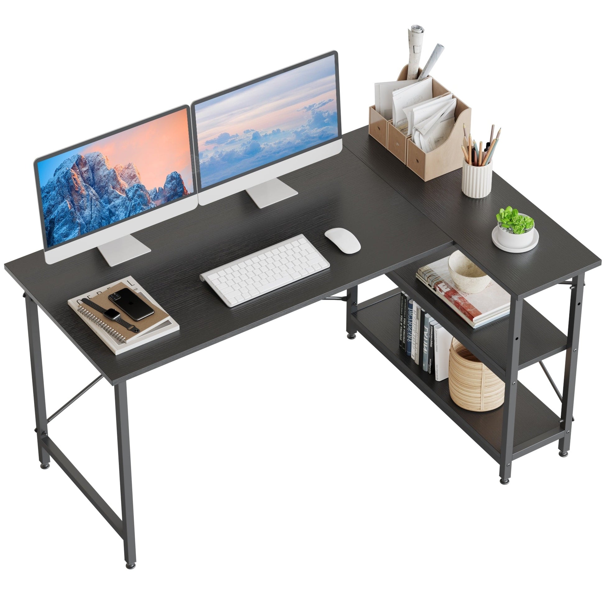 Bureau en forme de L avec étagères de rangement, bureau d'ordinateur d'angle.
