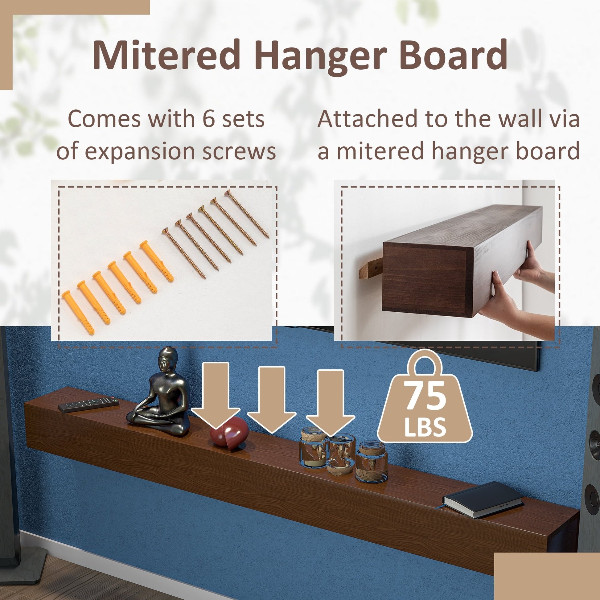 - LÉGER ET ROBUSTE - Nous utilisons une structure creuse pour que notre manteau de cheminée reste relativement léger et facile à accrocher ; Mesurant 152 x 20 x 15 cm, l'étagère flottante offre un espace ample pour exposer vos livres, récompenses, photos et autres trésors ; Elle peut supporter jusqu'à 34 kg.