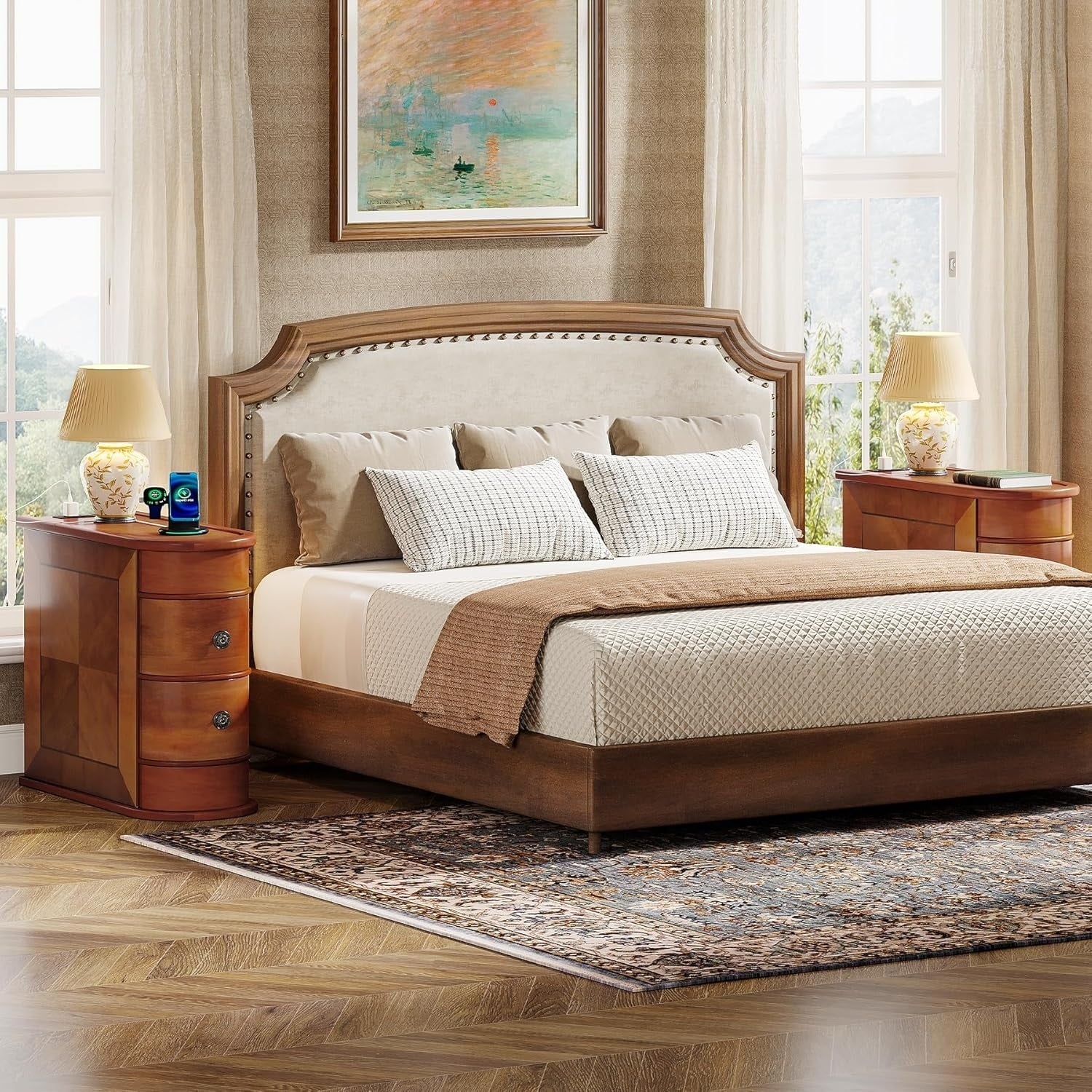 - Entièrement fini avec un délicat veinage de bois de noyer (y compris le dos du meuble)