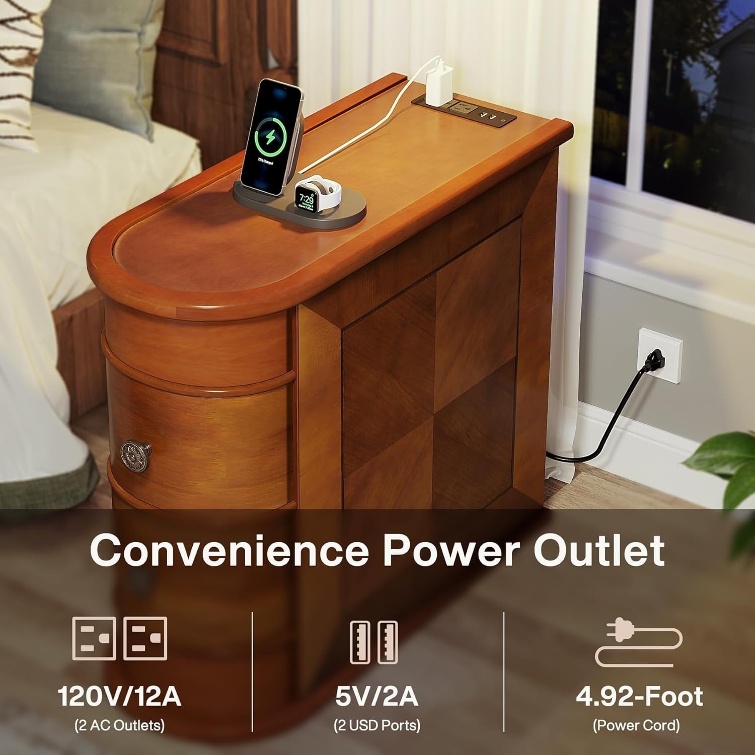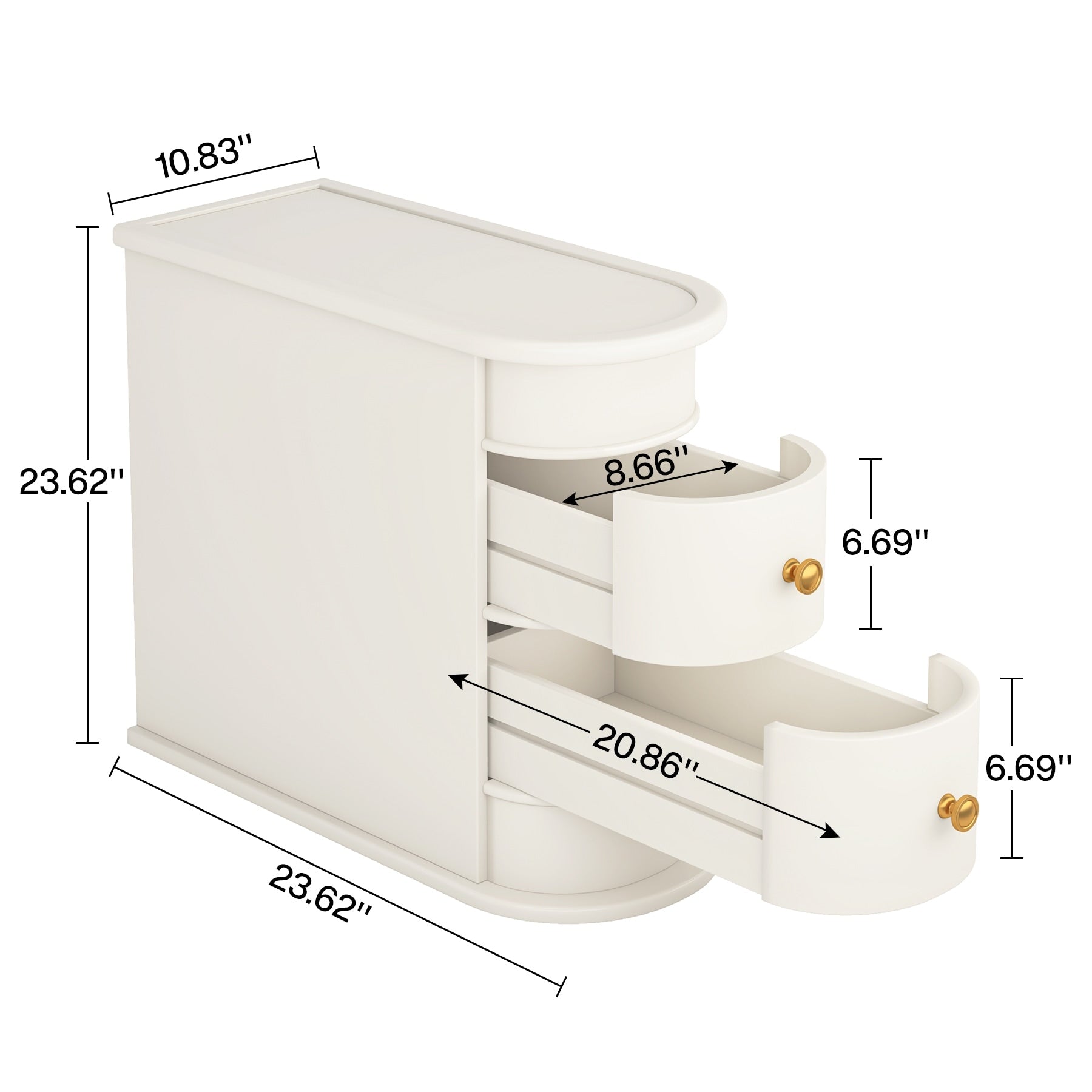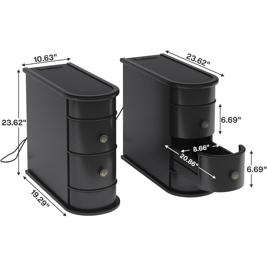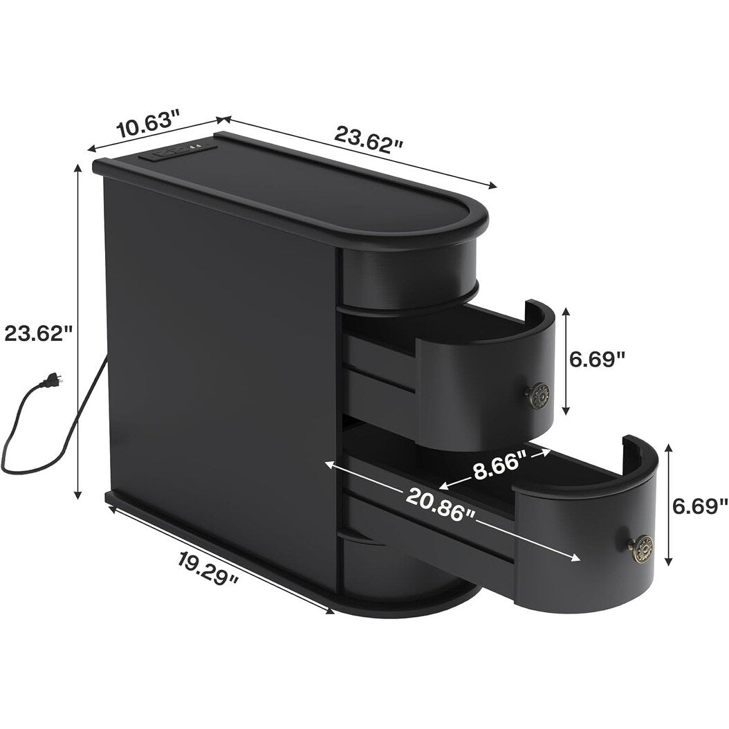 Table d'appoint en bois massif, table de chevet étroite à deux tiroirs, modèle Slim