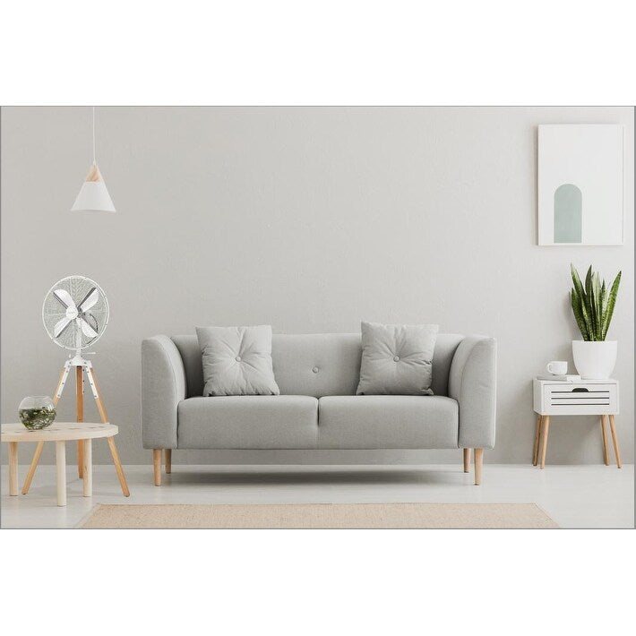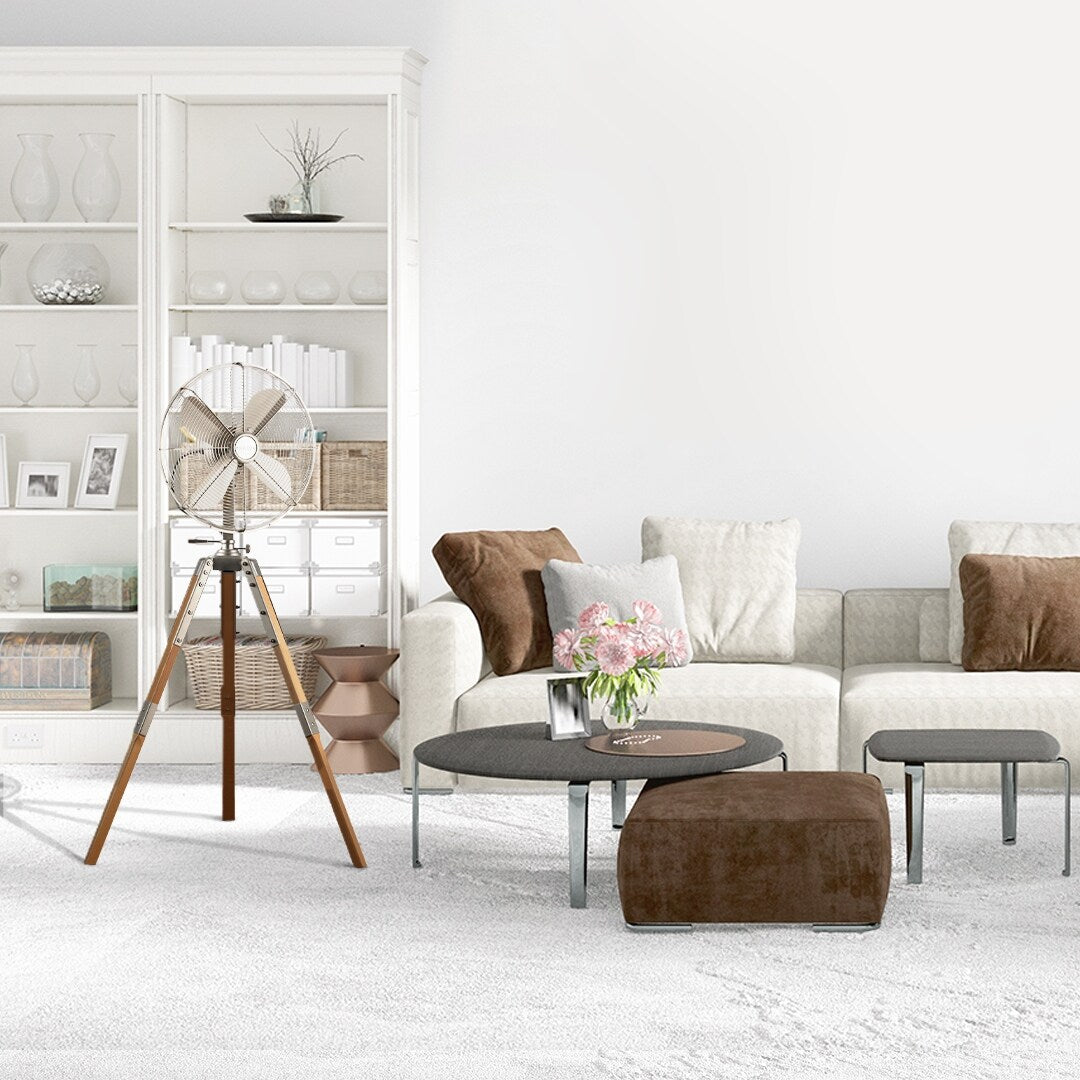 Inspiré d'un trépied de caméra, ce ventilateur sur pied à pieds de trépied est un ventilateur au design industriel détaillé avec un puissant mouvement d'air. Le trépied est de haute qualité et d'un artisanat soigné et se démarquera certainement, ajoutant un style artistique et inspirant à n'importe quel espace. Le trépied est réglable en hauteur lors du montage – un processus facile. Le ventilateur possède un bouton au-dessus du moteur pour une option de mouvement oscillant et d'angle d'inclinaison.
